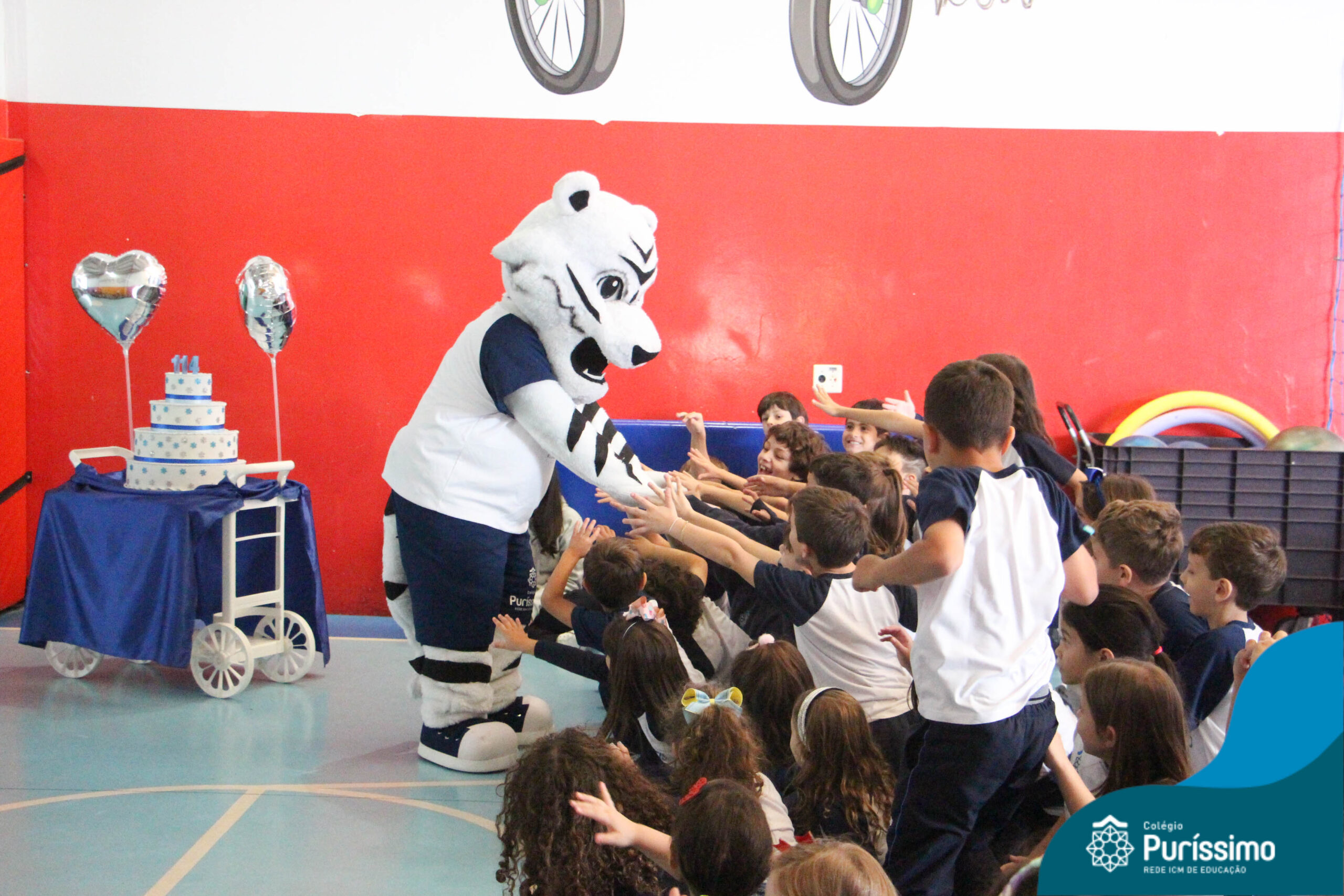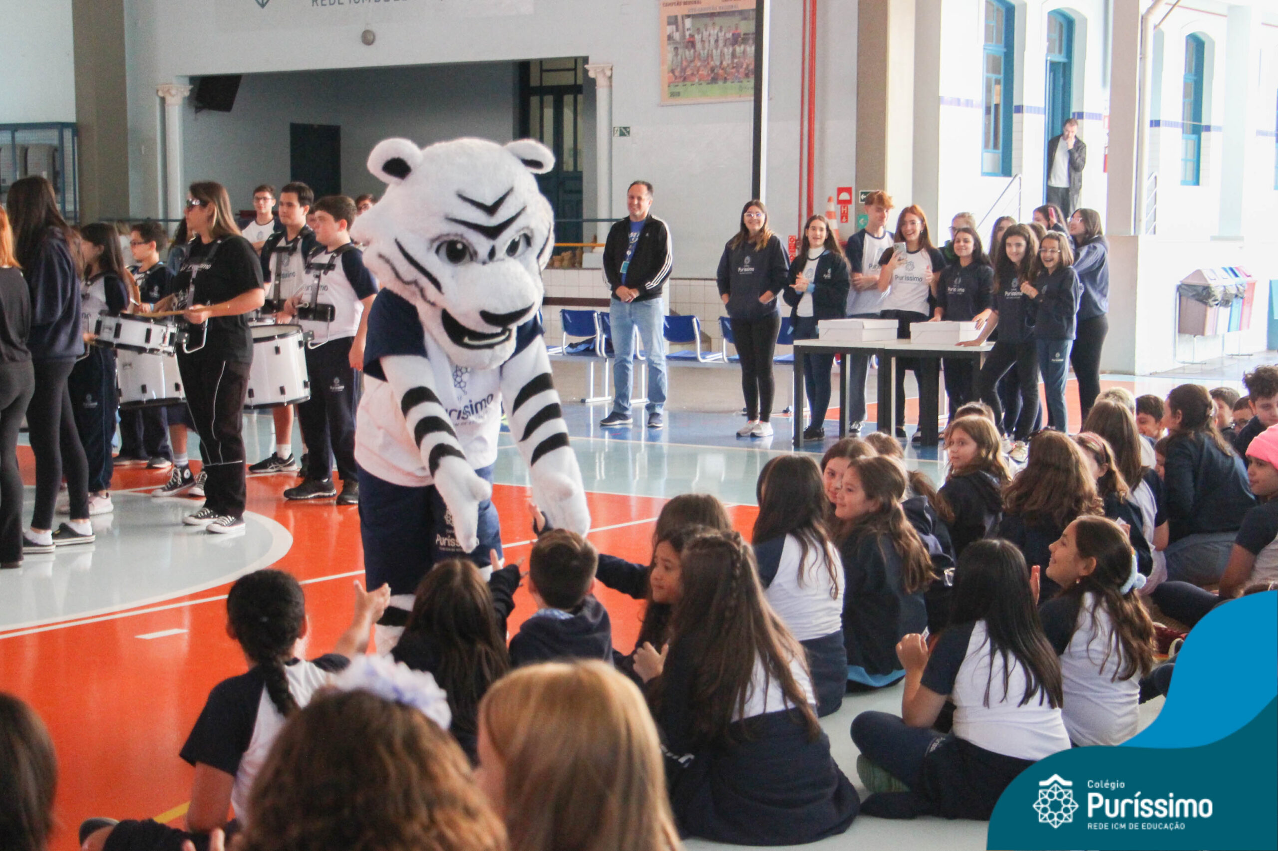 Hoje, a Fanfarra Escolar, juntamente com o nosso mascote Tigríssimo, celebraram os 114 anos de Puri performando a clássica música “Parabéns pra você”.