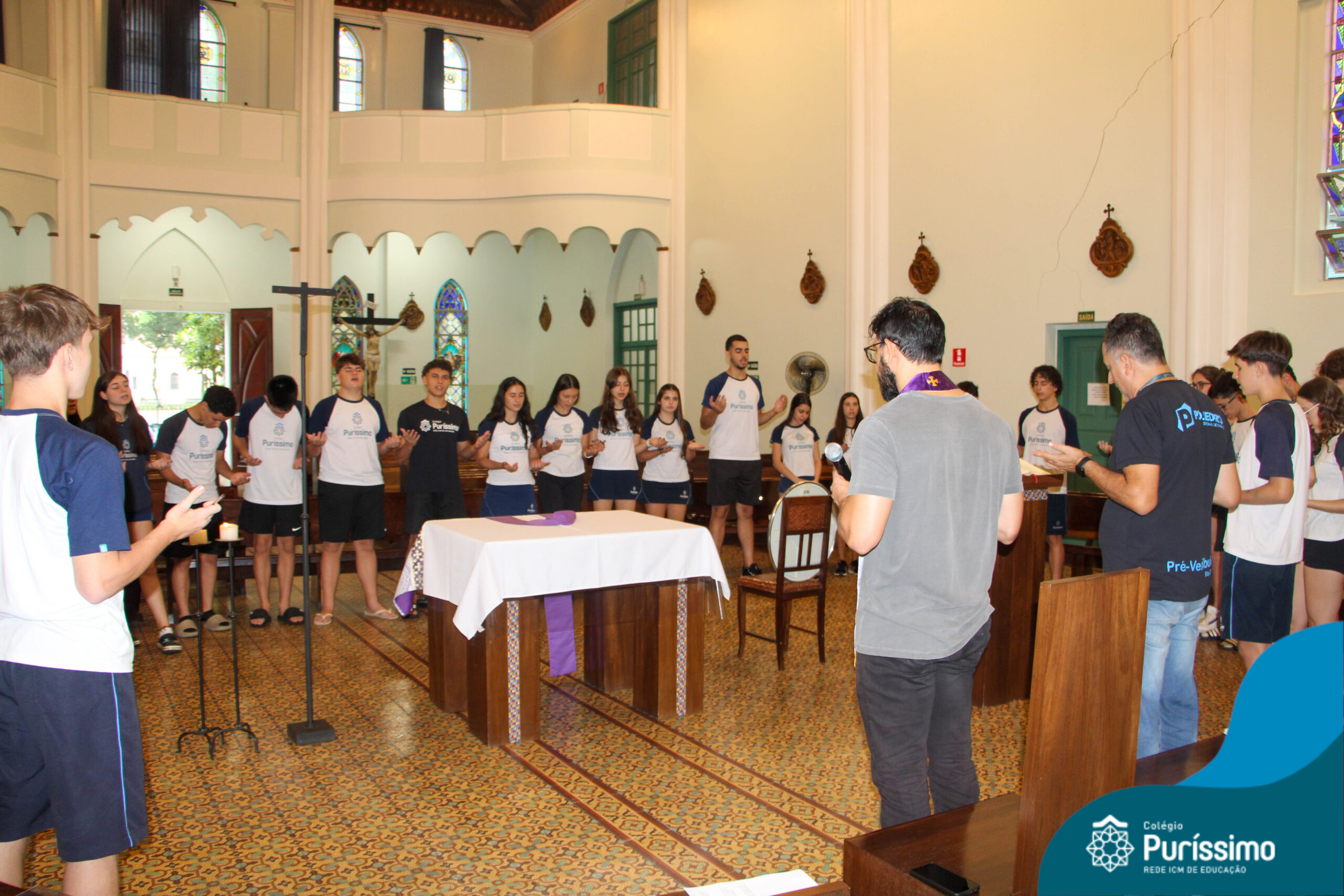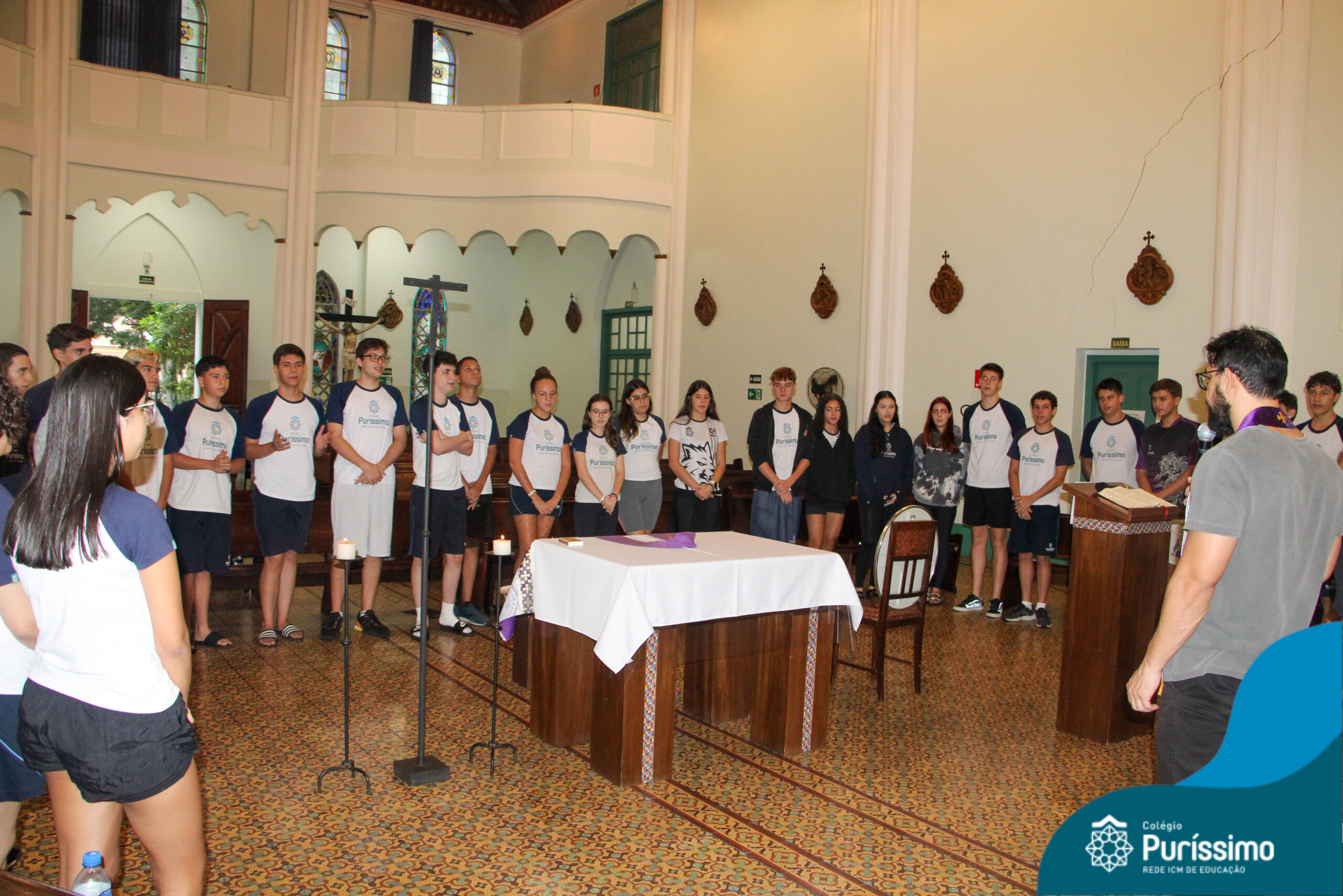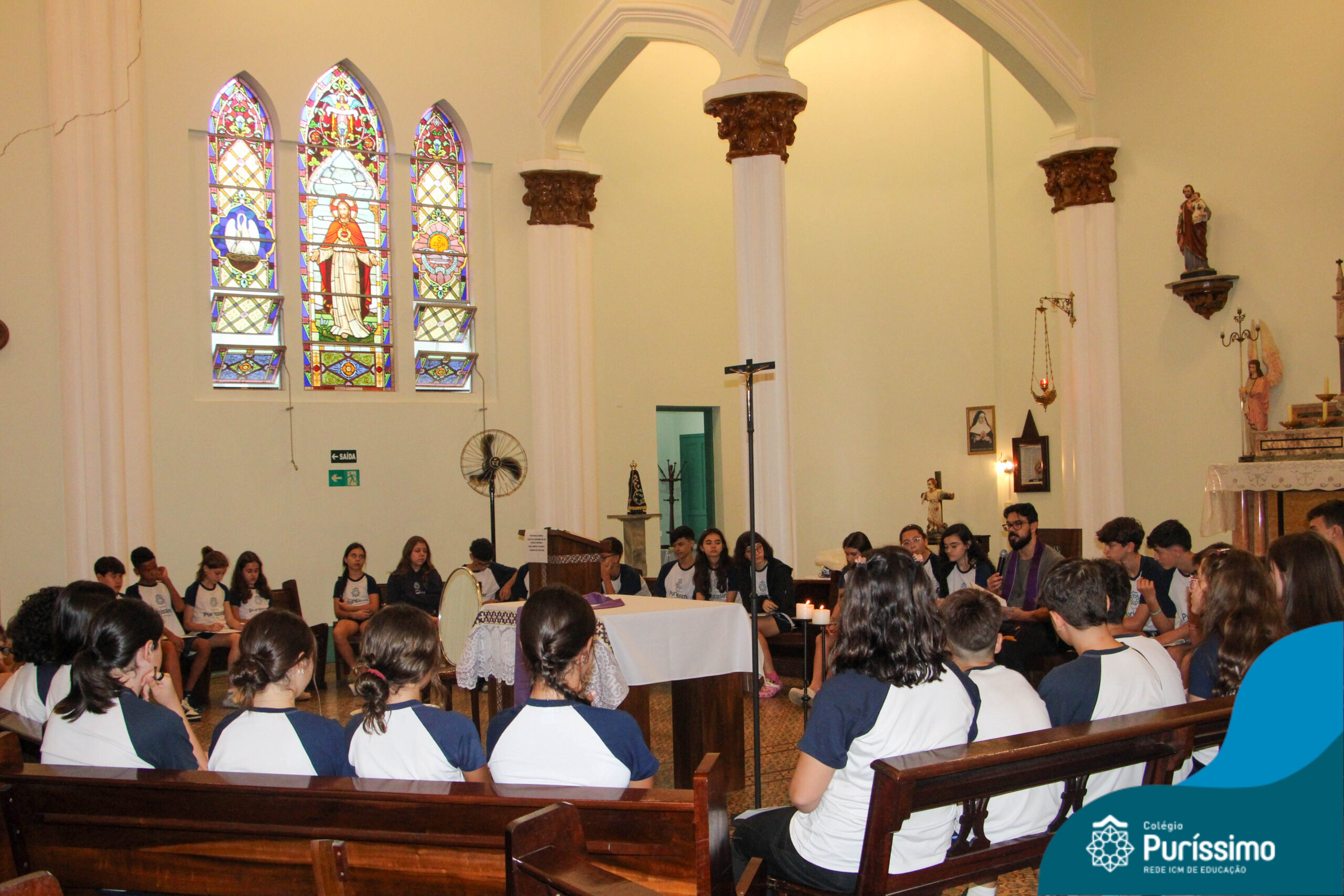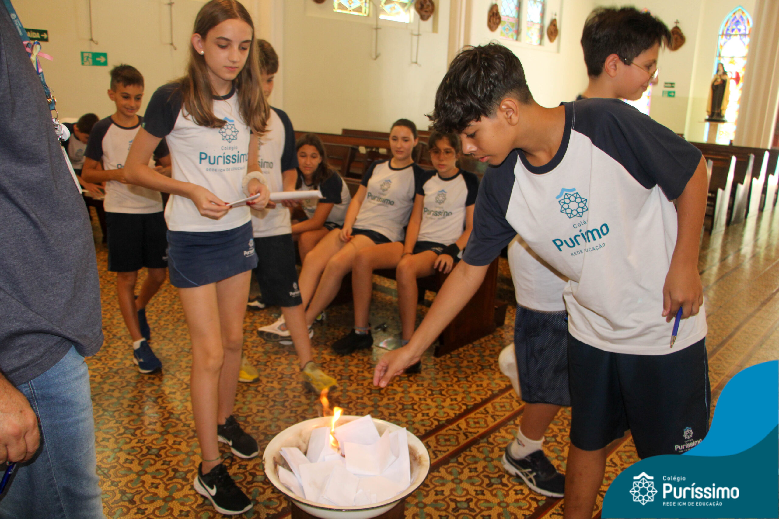 Reunidos na capela do Colégio, os estudantes foram convidados a pensarem e refletirem sobre sua conduta, tendo como referência o texto de 1º Coríntios 13. Na sequência, como que se estivessem se olhando no espelho, cada um teve a oportunidade de pensar naquilo que necessita mudar, isto é, deixar de ser trevas para ser luz.