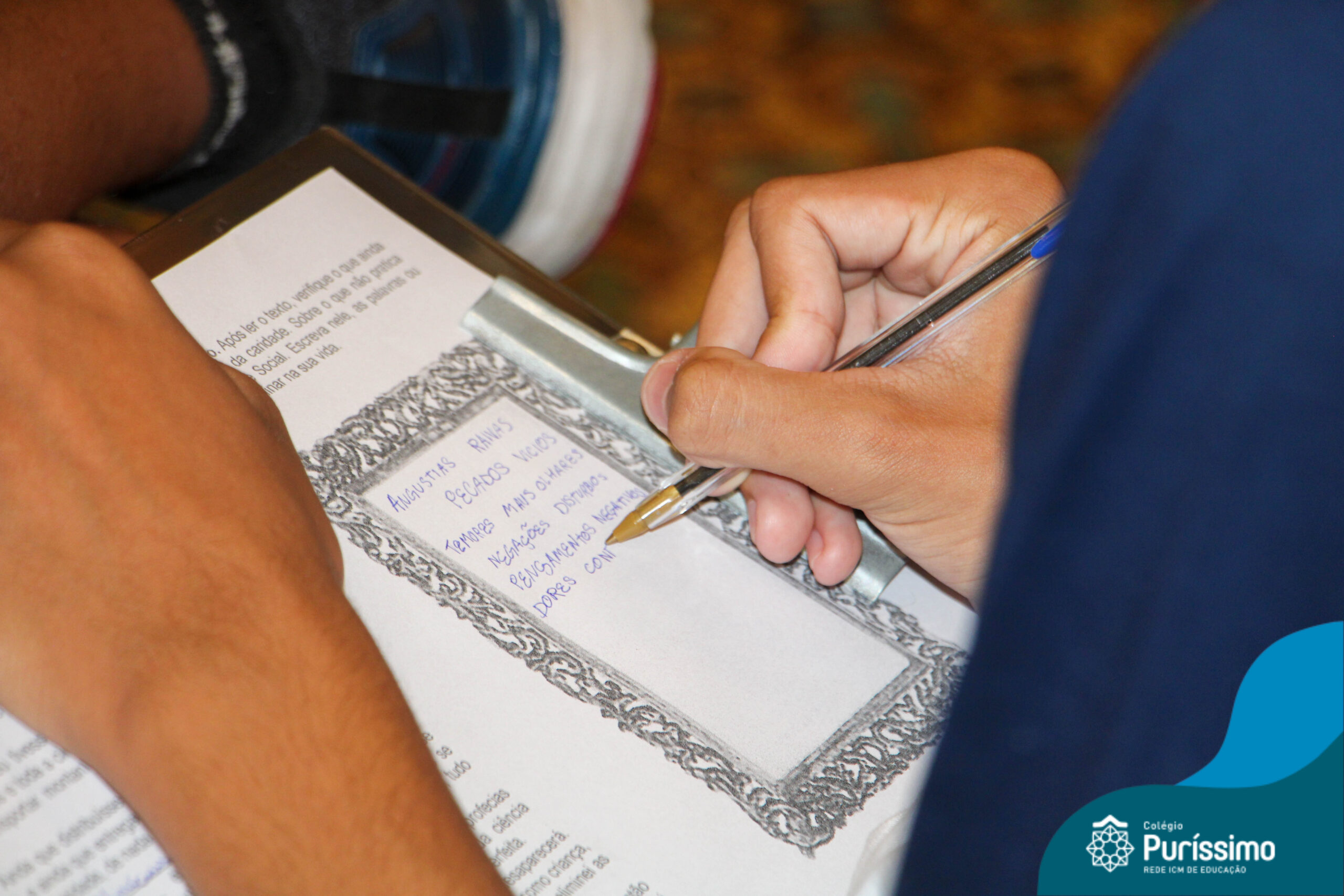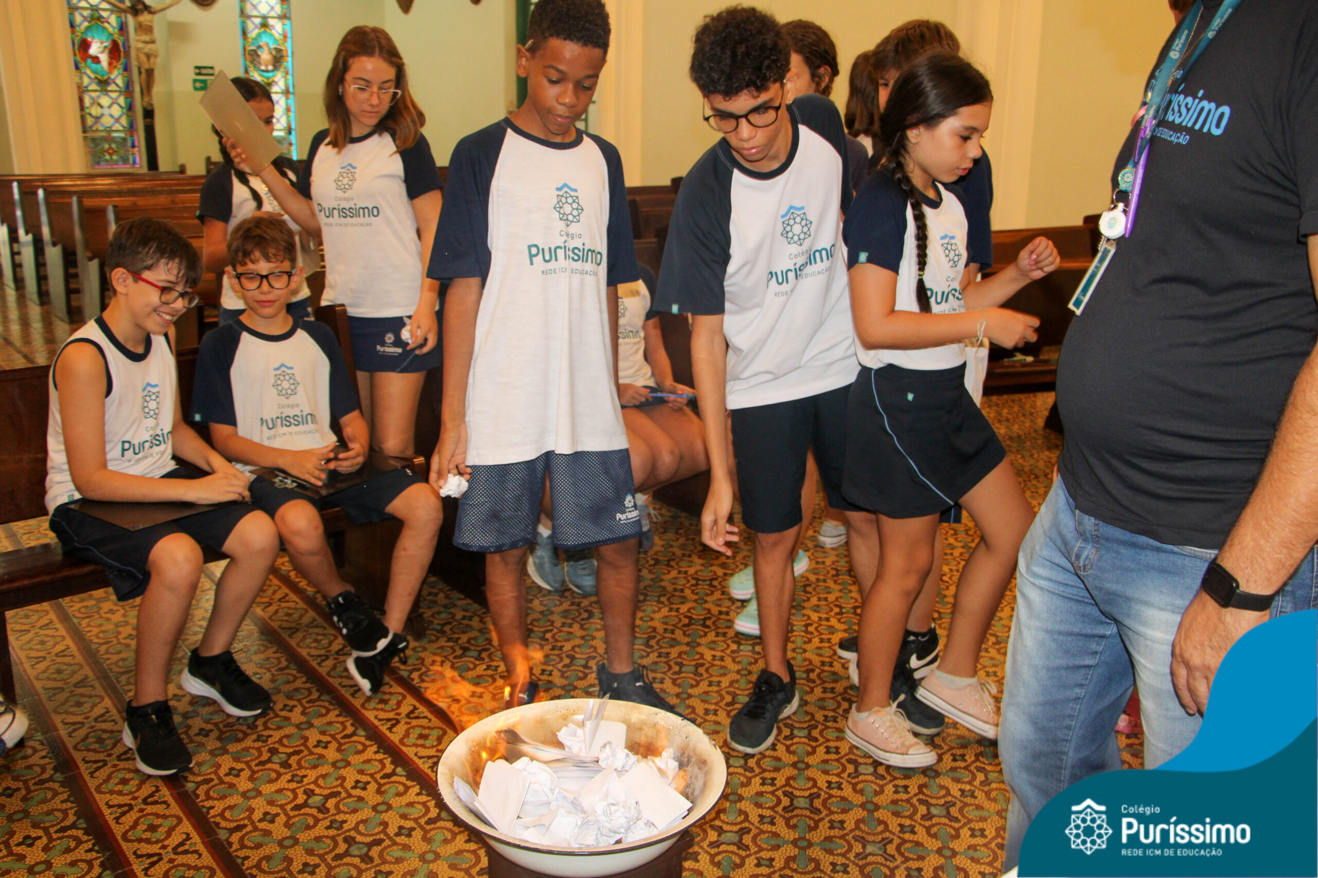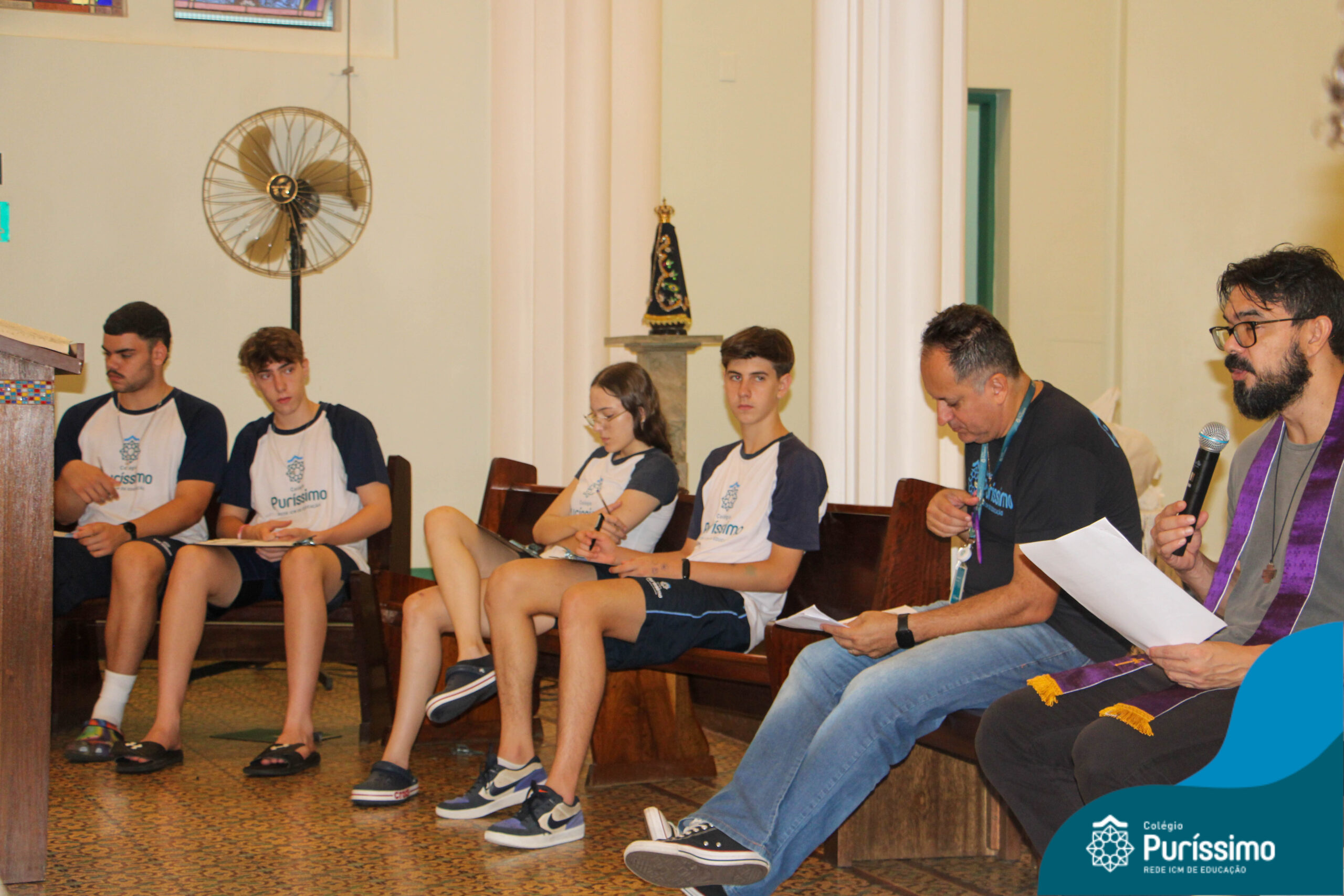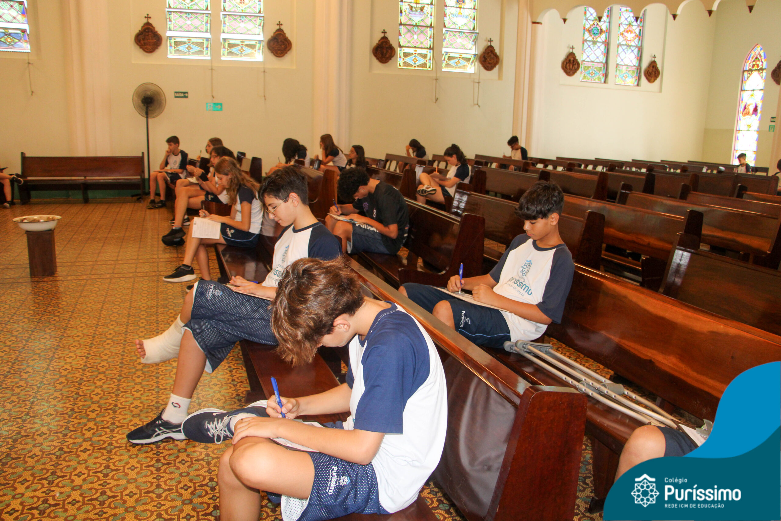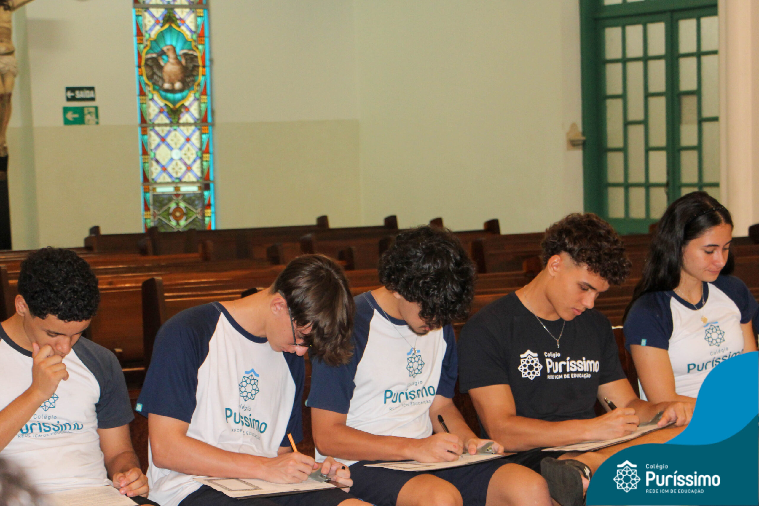 Reunidos na capela do Colégio, os estudantes foram convidados a pensarem e refletirem sobre sua conduta, tendo como referência o texto de 1º Coríntios 13. Na sequência, como que se estivessem se olhando no espelho, cada um teve a oportunidade de pensar naquilo que necessita mudar, isto é, deixar de ser trevas para ser luz.
