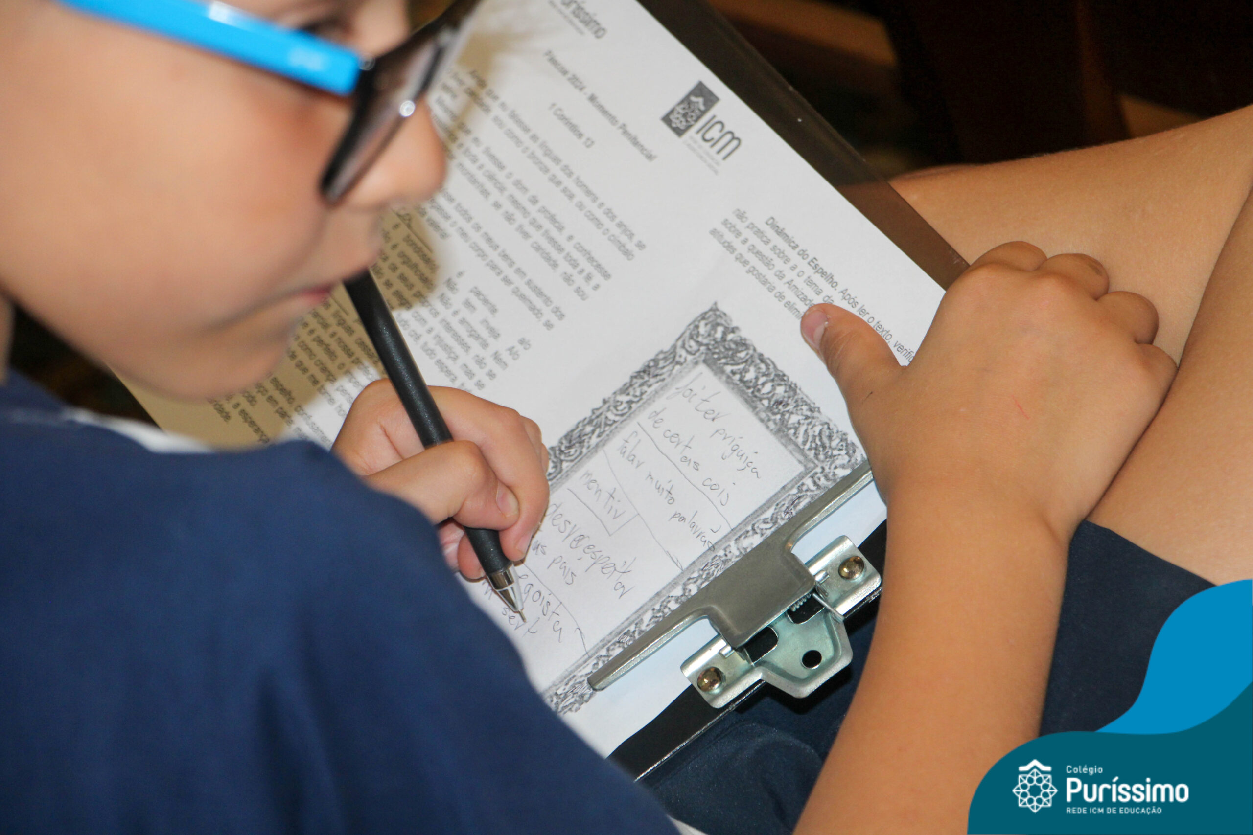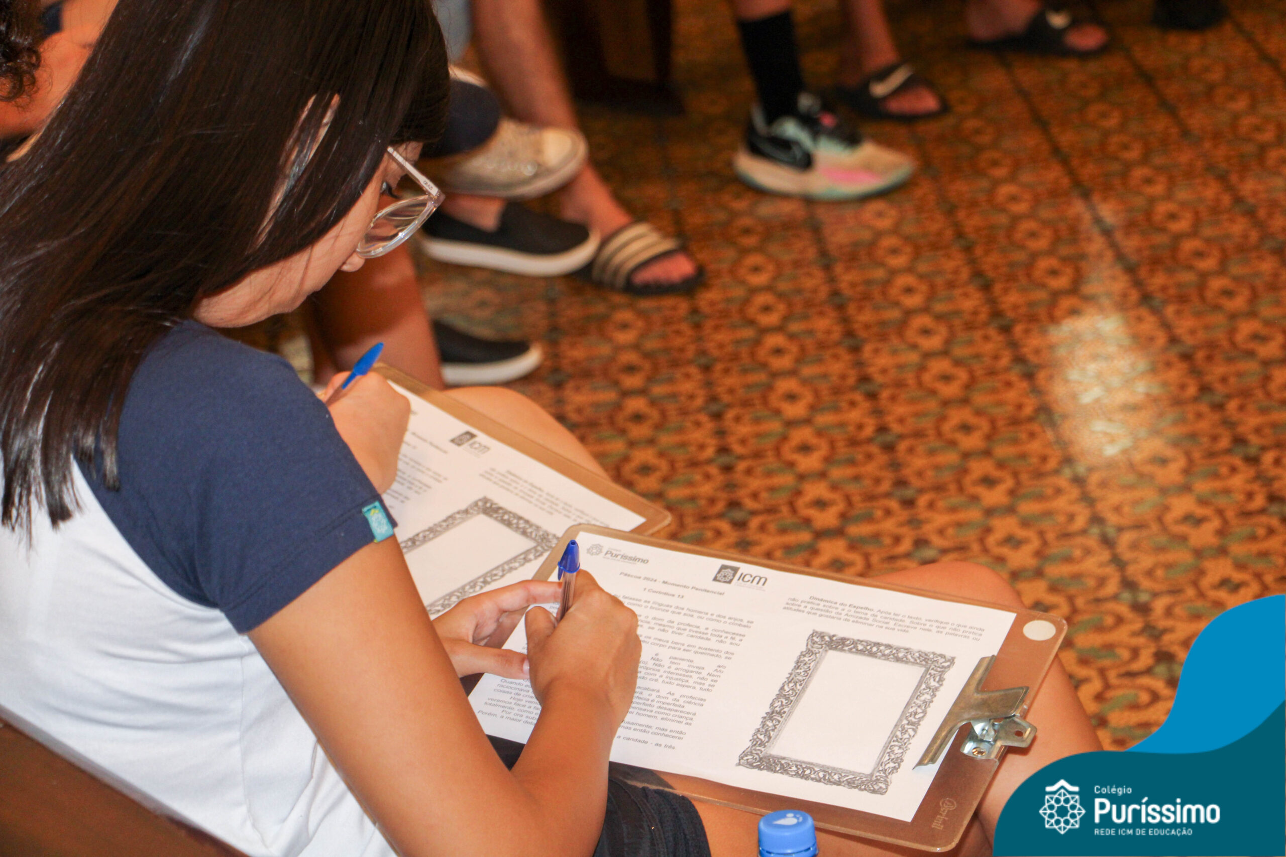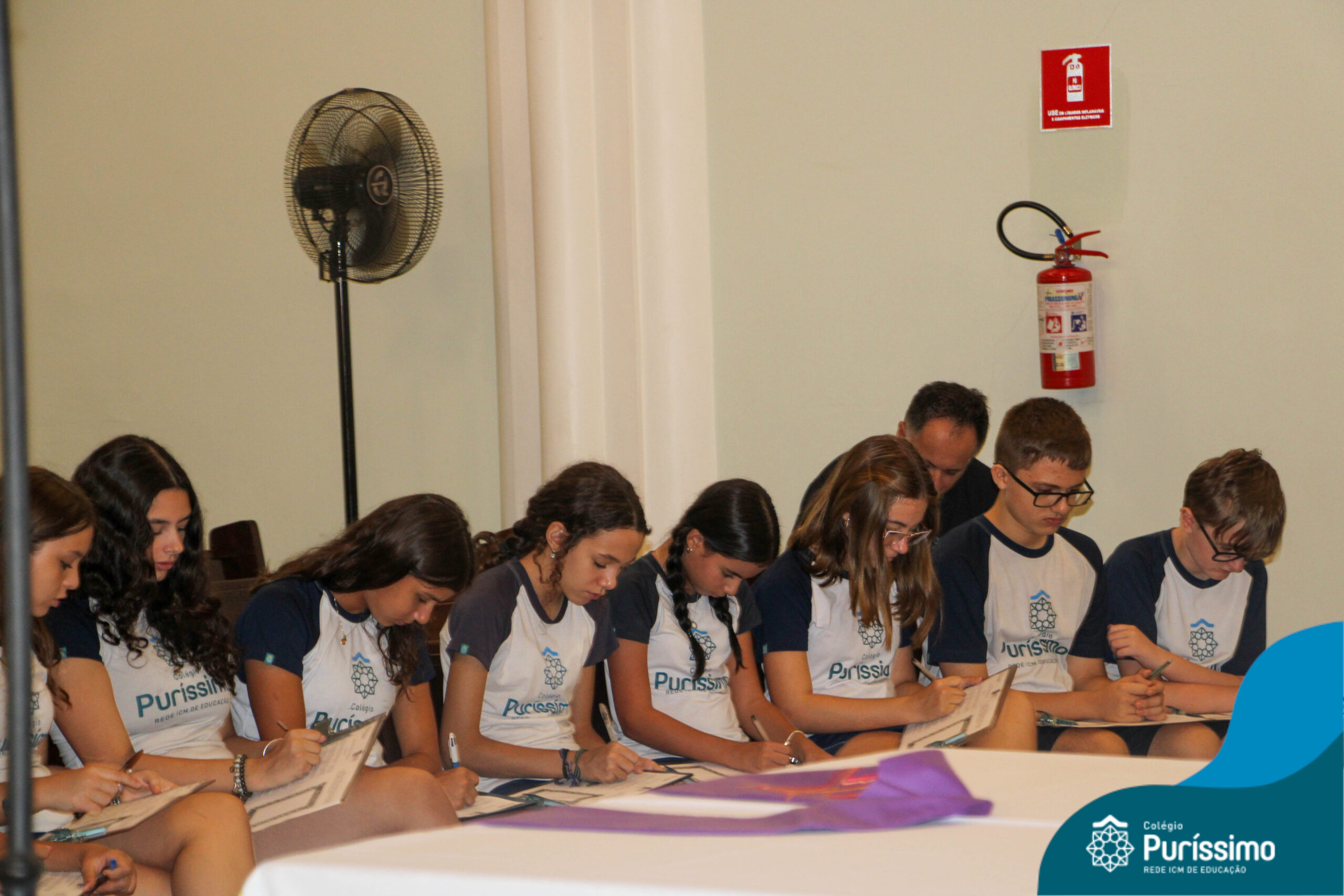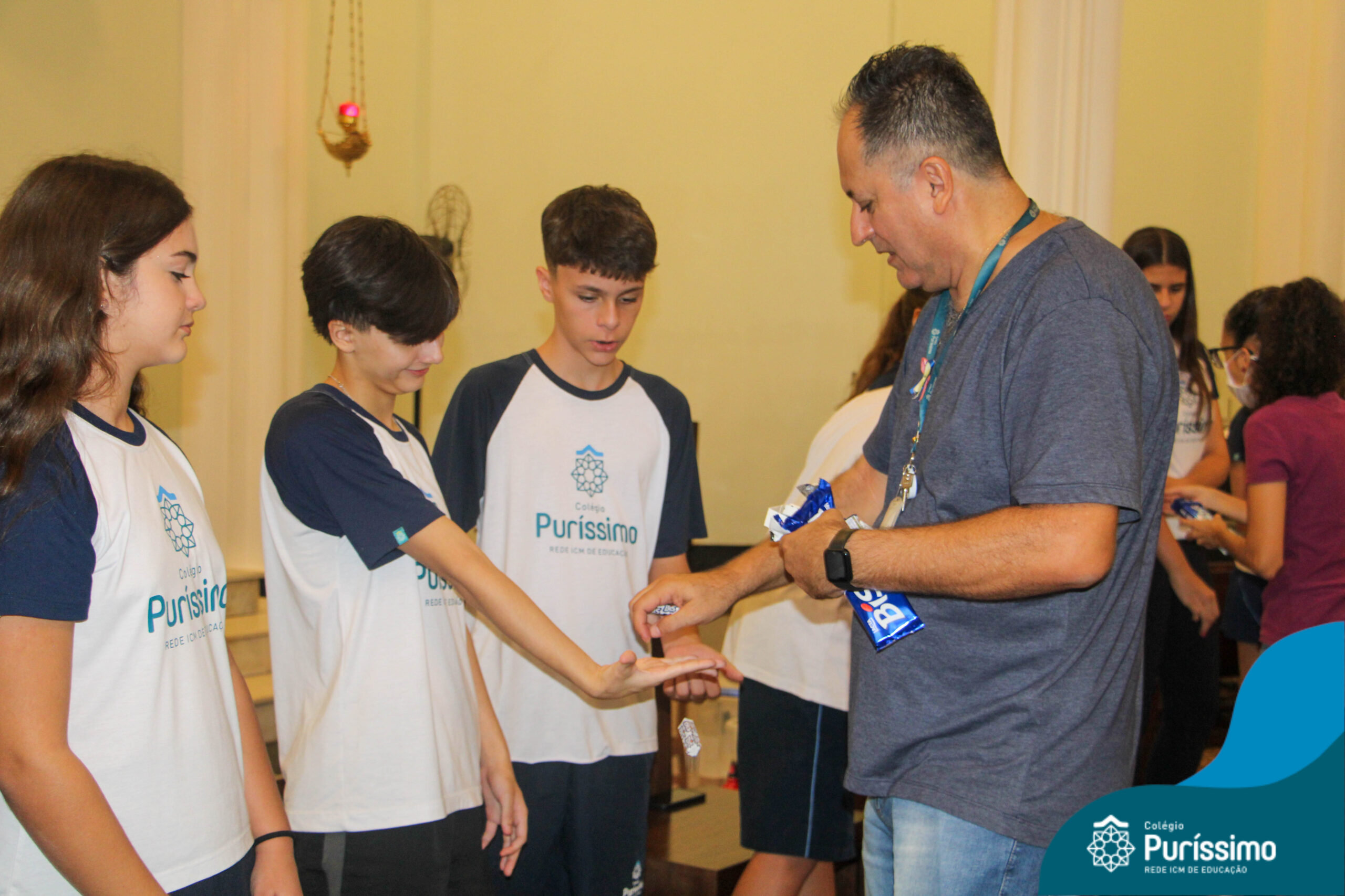 Reunidos na capela do Colégio, os estudantes foram convidados a pensarem e refletirem sobre sua conduta, tendo como referência o texto de 1º Coríntios 13. Na sequência, como que se estivessem se olhando no espelho, cada um teve a oportunidade de pensar naquilo que necessita mudar, isto é, deixar de ser trevas para ser luz.