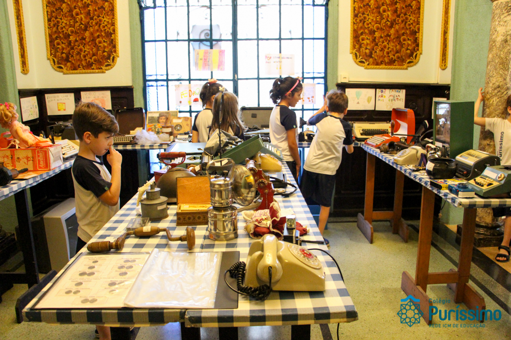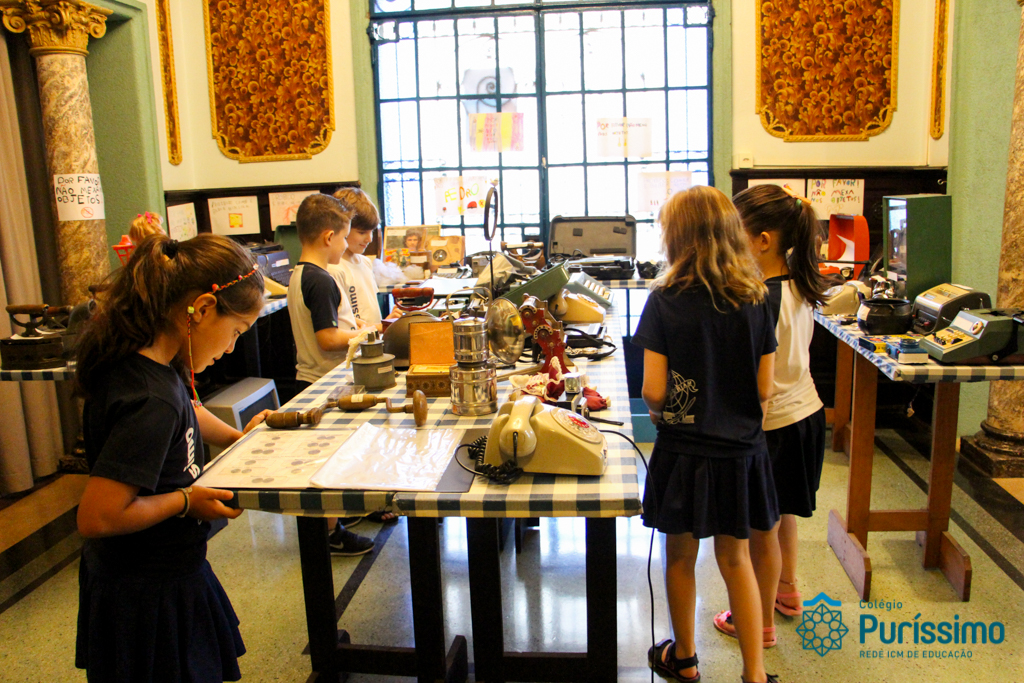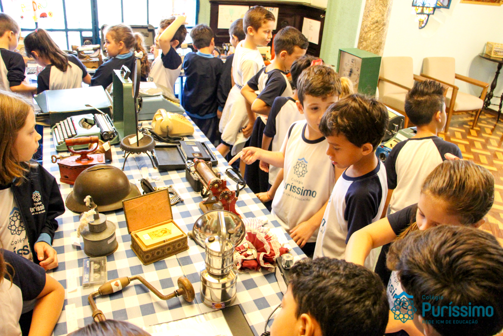 Durante o primeiro trimestre, os alunos dos 2º anos, trabalharam sobre o projeto “Tempo”, aprendendo a identificar sua passagem em nossas vidas. Para encerrar o projeto, montaram no mês de abril um Museu com os objetos antigos pertencentes aos seus familiares.