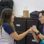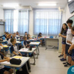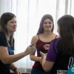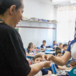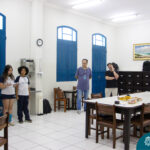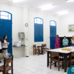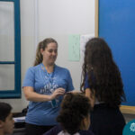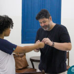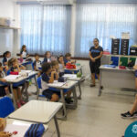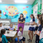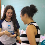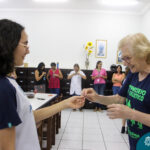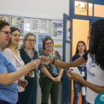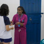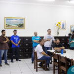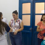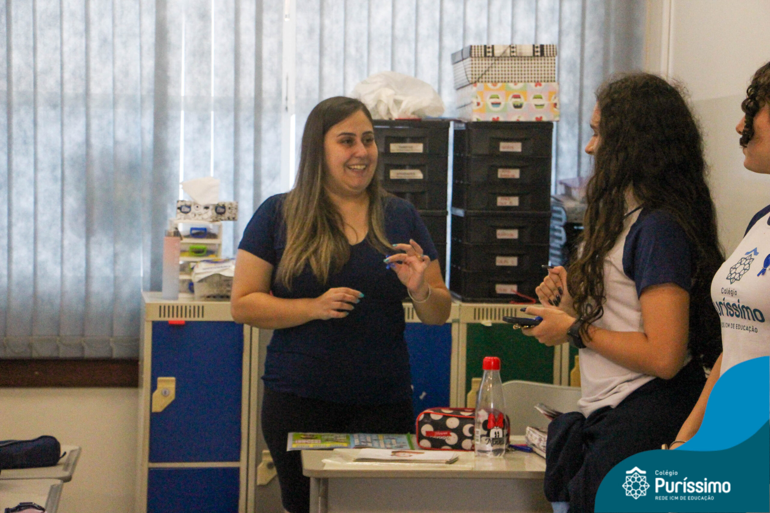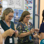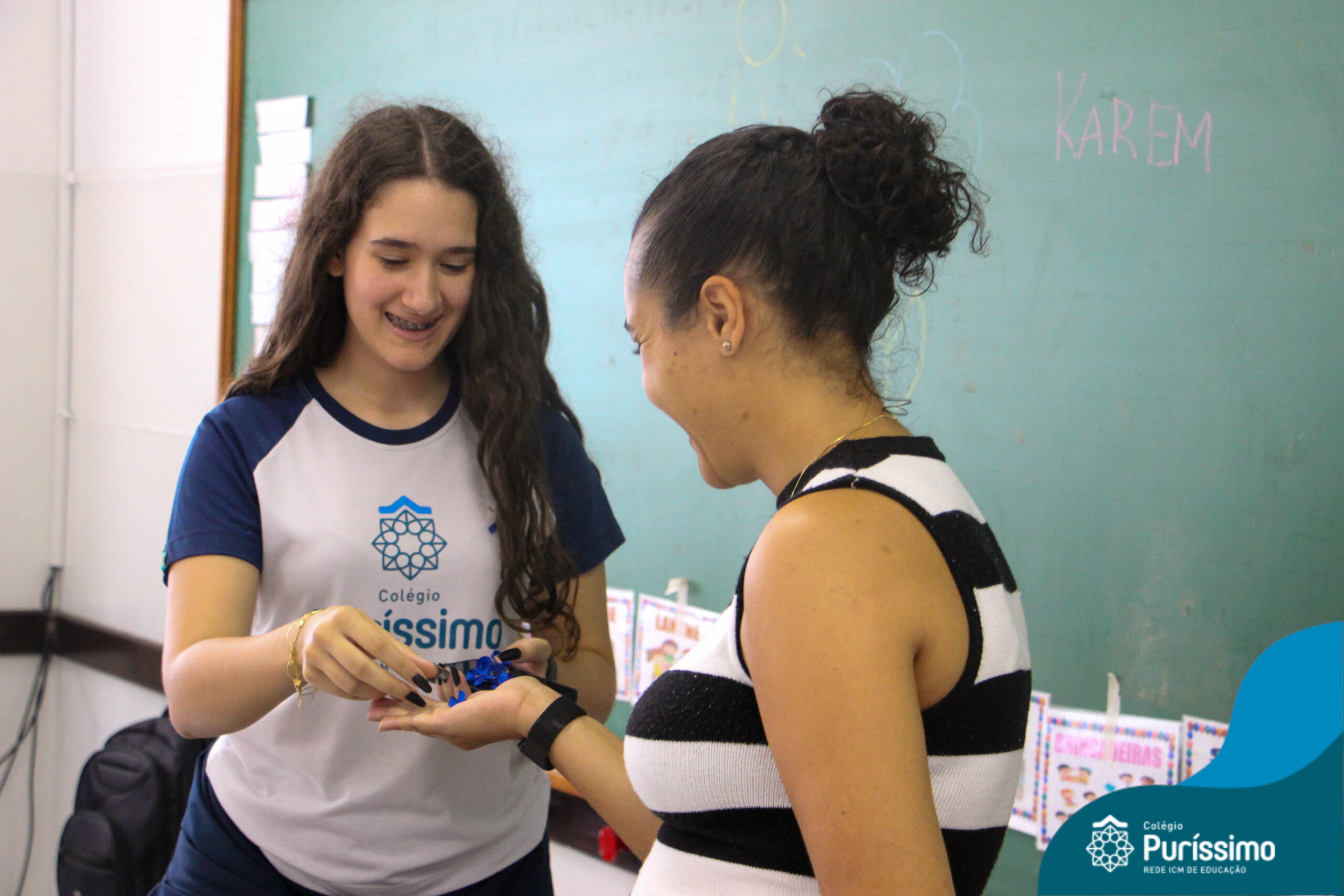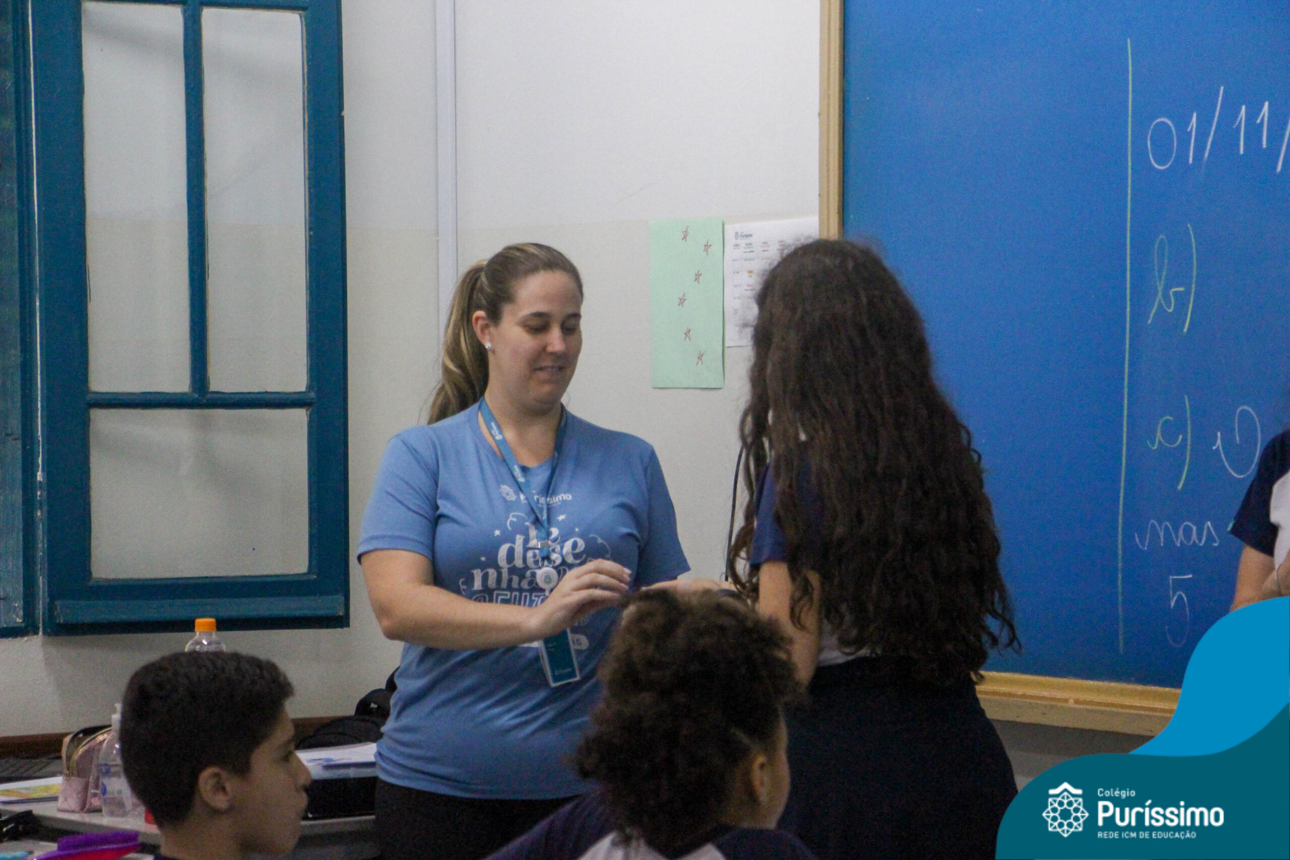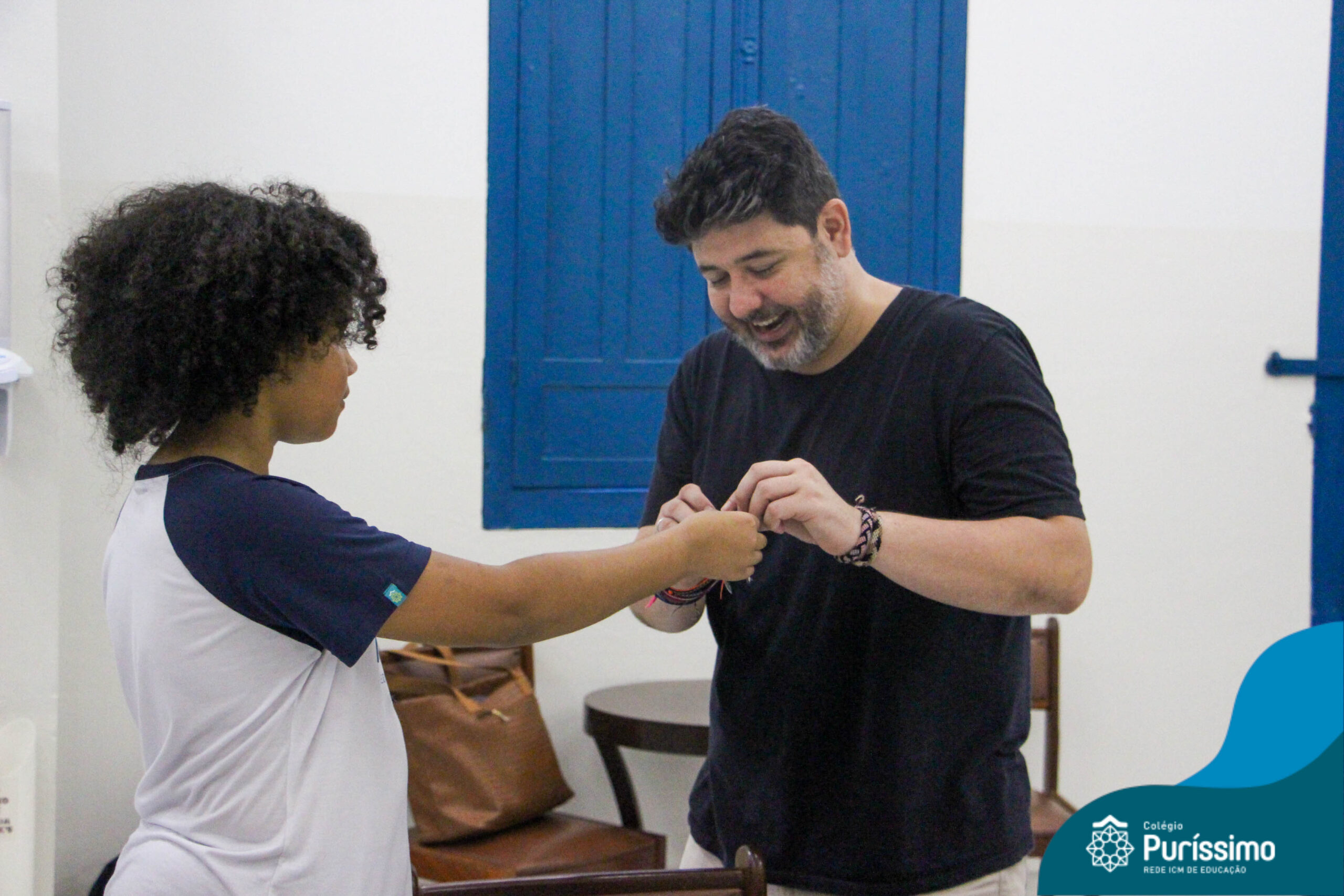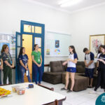 Ao final, entregaram para cada professor e colaborador um laço azul, para que a campanha deste mês seja sempre lembrada.