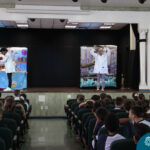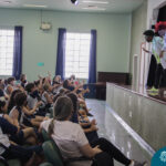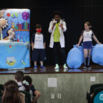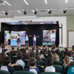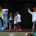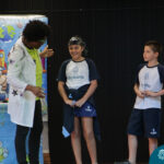 Os alunos do 3º aos 5º anos do EF Anos Iniciais, da manhã e tarde, tiveram a oportunidade de assistir a peça “Por um futuro sustentável”, a qual conta a história de dois cientistas do futuro que voltam ao passado para alertar a população sobre os problemas que serão causados pelo consumo excessivo de recursos naturais no presente.