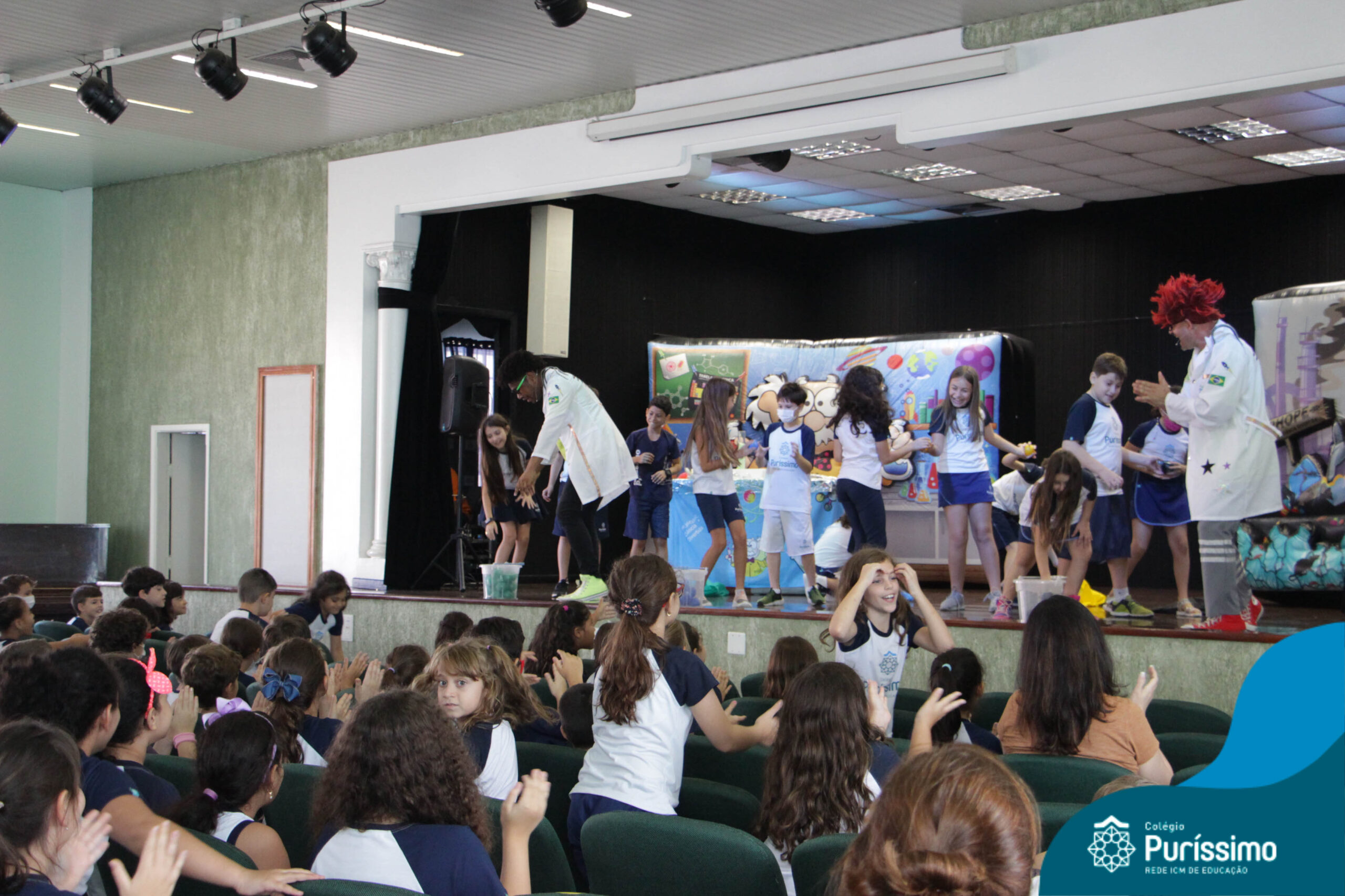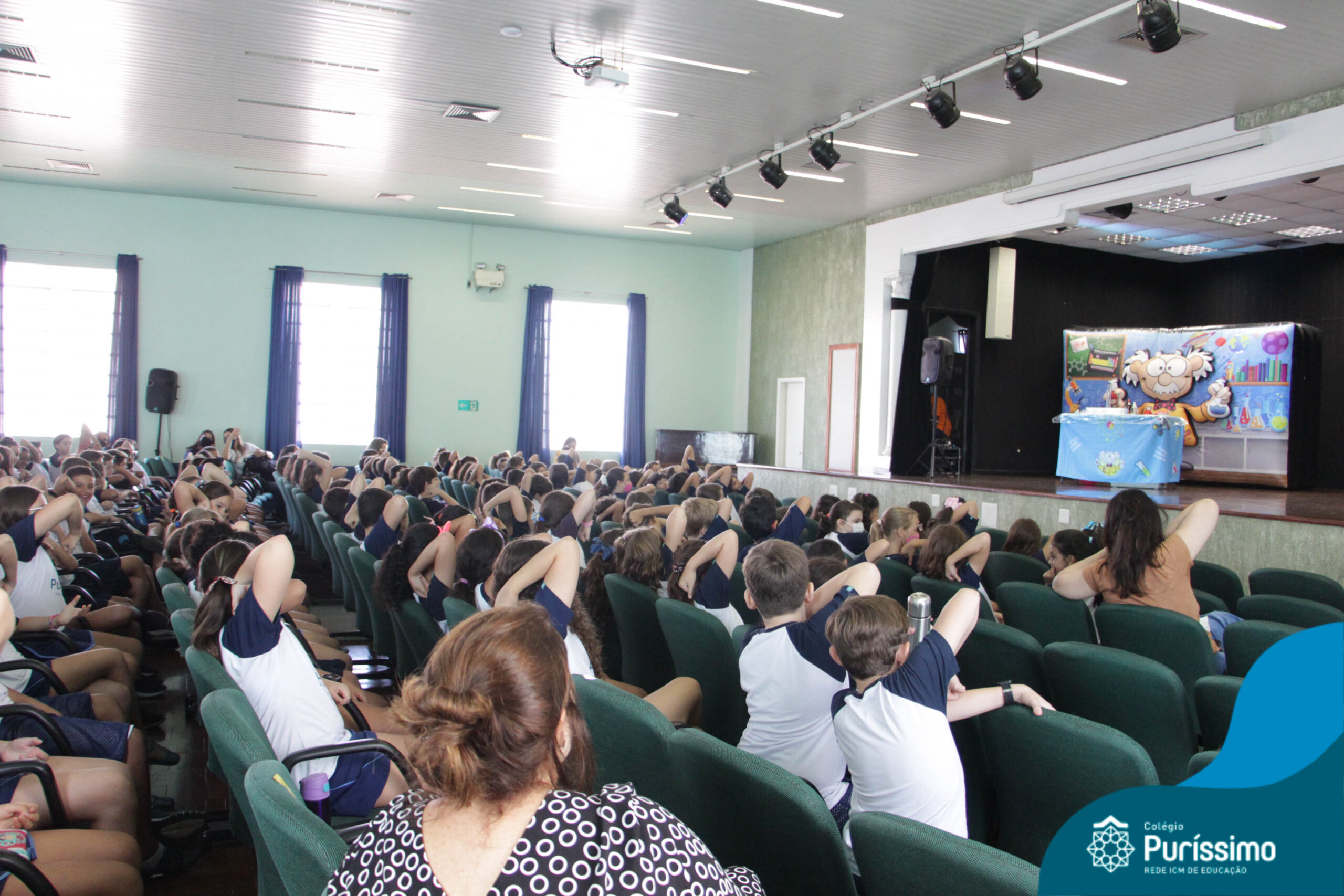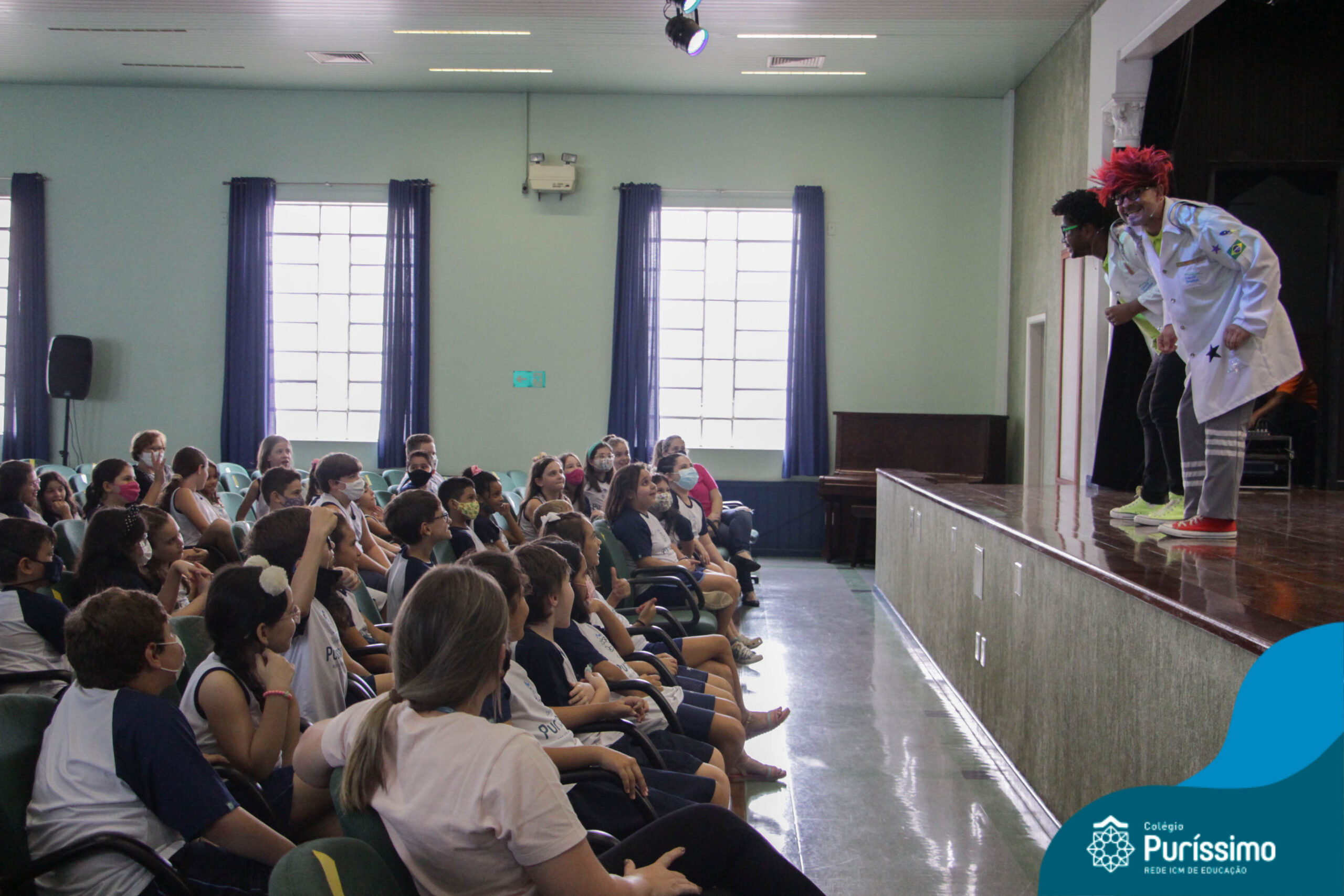 Nessa segunda-feira, 04 de abril, o Colégio Puríssimo recebeu o projeto Diverte Teatro Viajante.