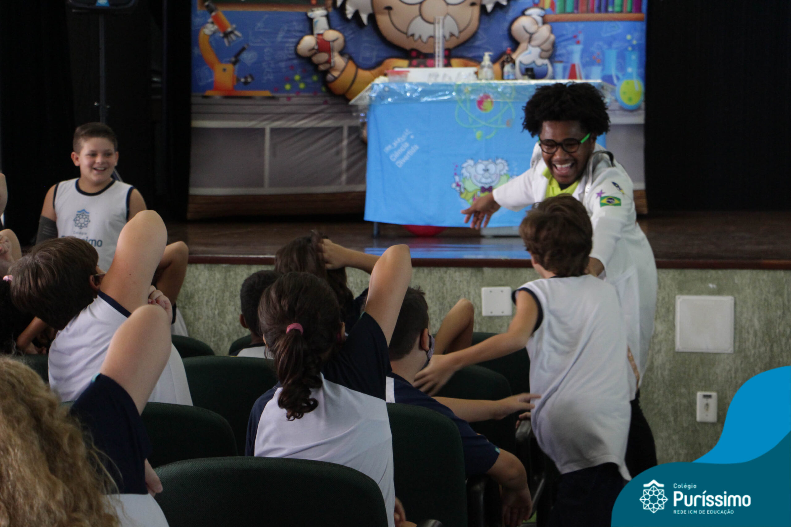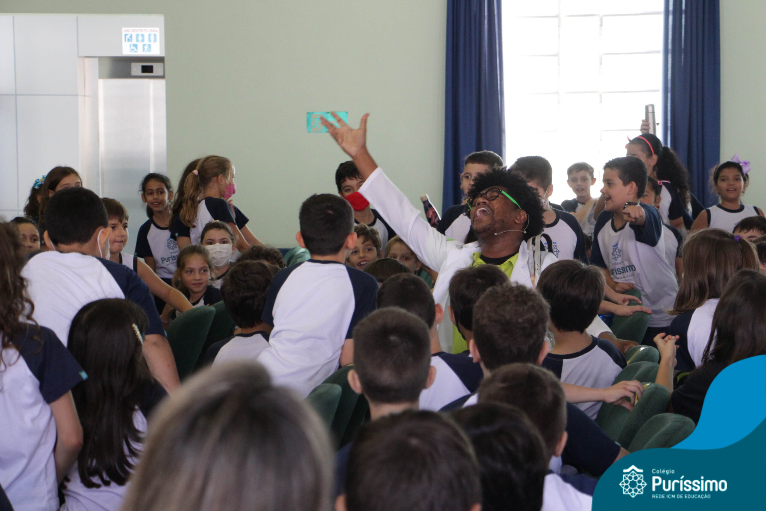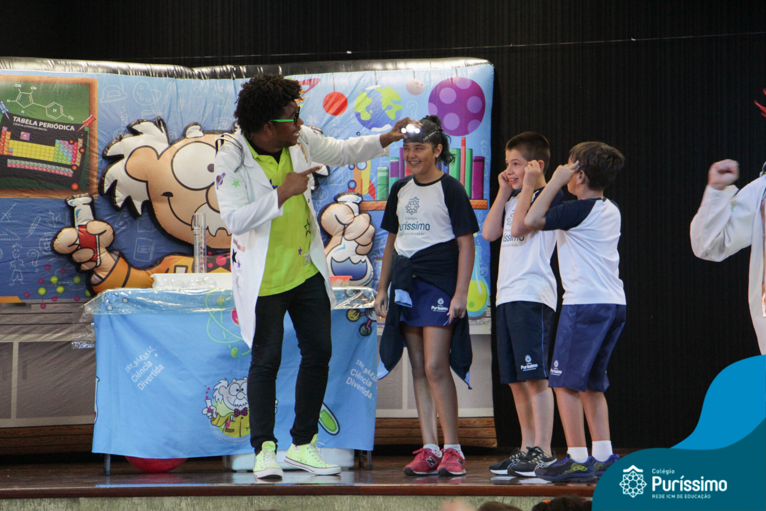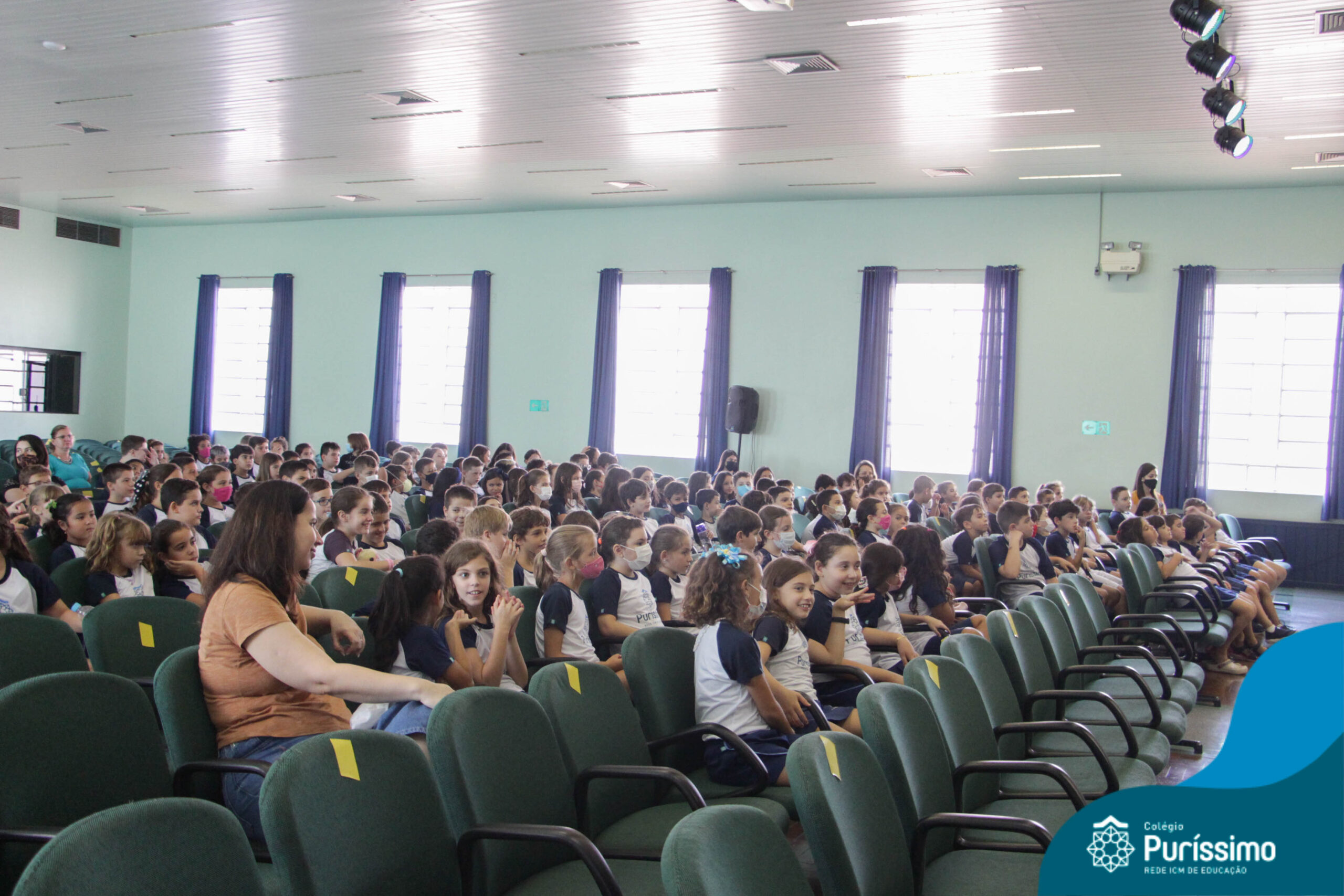 Nessa segunda-feira, 04 de abril, o Colégio Puríssimo recebeu o projeto Diverte Teatro Viajante.
