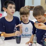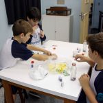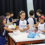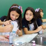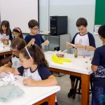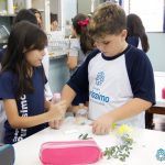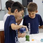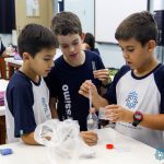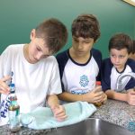Os alunos dos 4ºs anos tiveram um dia de alquimista no laboratório de ciências do Colégio! A partir de um trecho do livro de leitura do trimestre, “Viagem ao centro da Terra”, de Júlio Verne, os alunos puderam criar “poções”, nomeadas com criptogramas, que também foram elaborados por eles. As crianças realizaram diversas misturas, o que possibilitou que elas conhecessem também as propriedades de cada ingrediente. Com essa atividade, eles puderam integrar matemática (quando pensam em quantidades), ciências e português. Após toda brincadeira, finalizarão a atividade com significativas produções de textos!