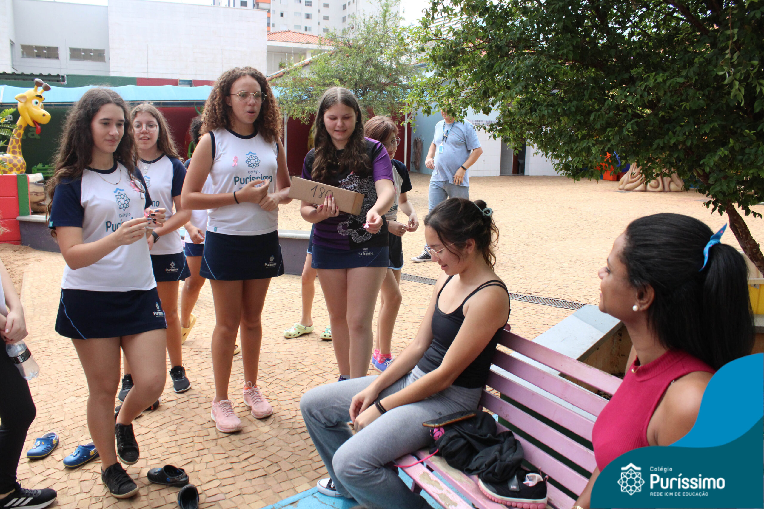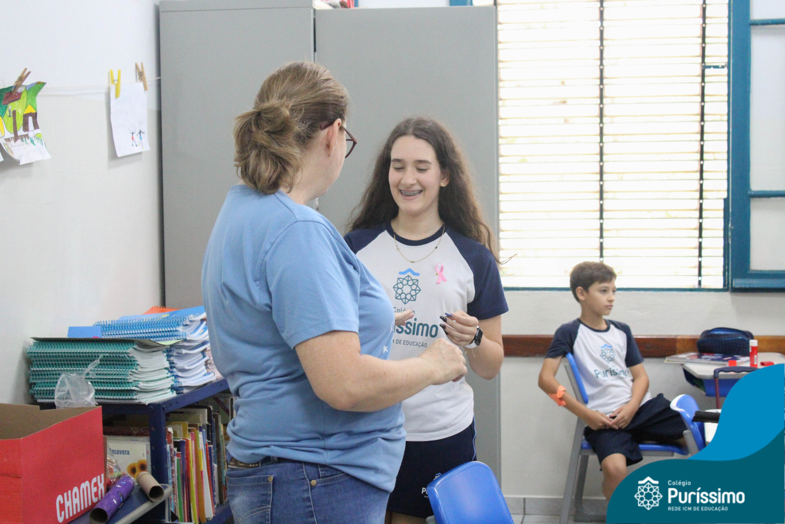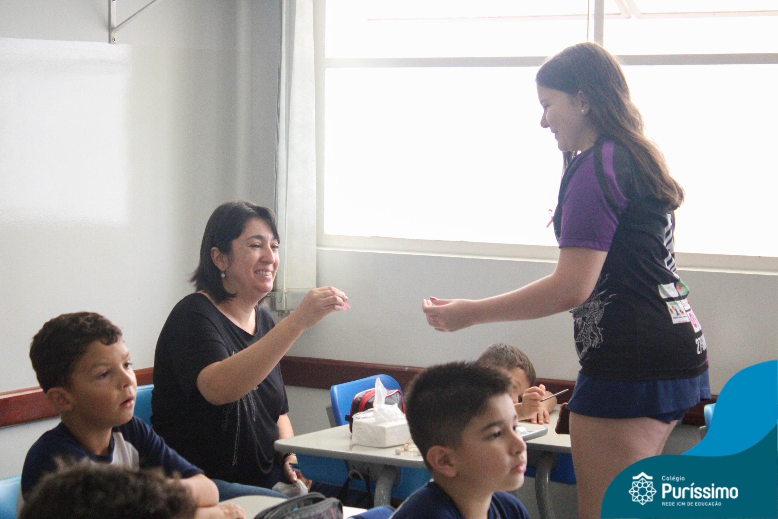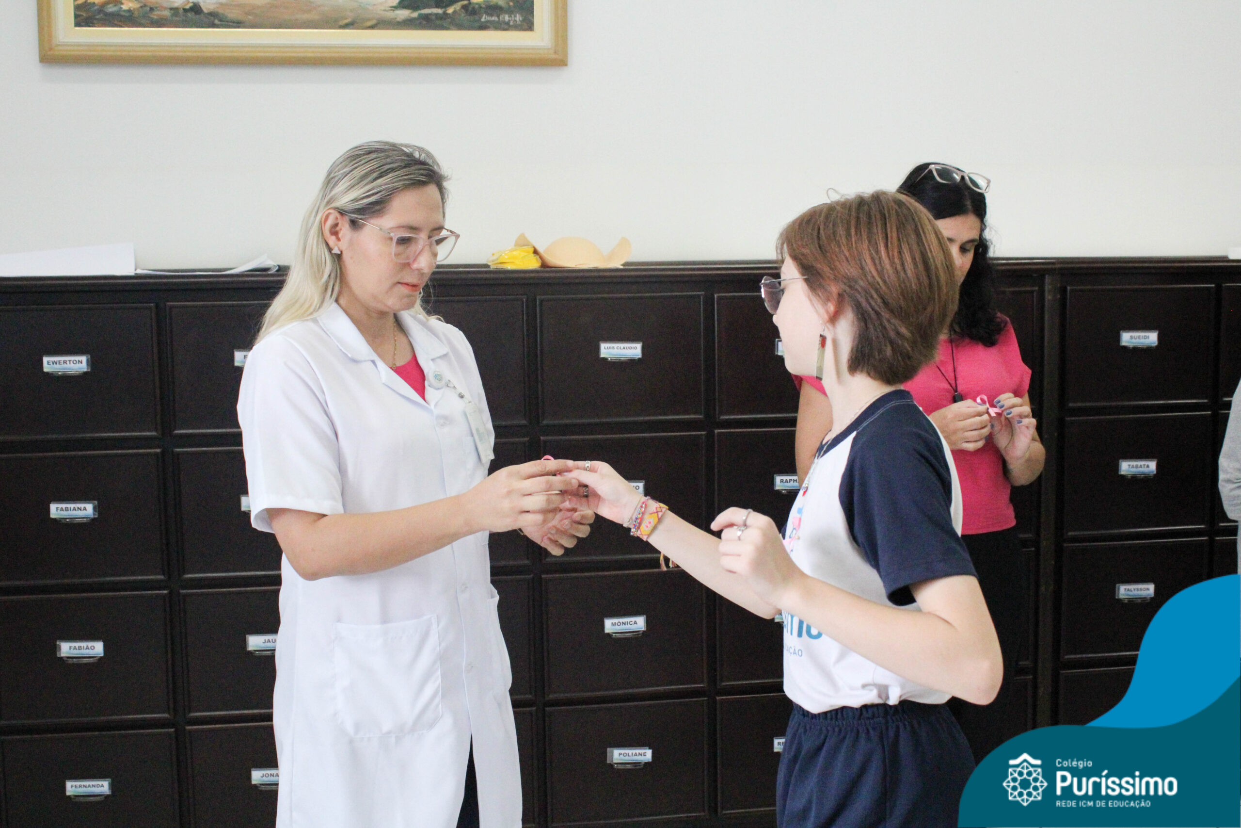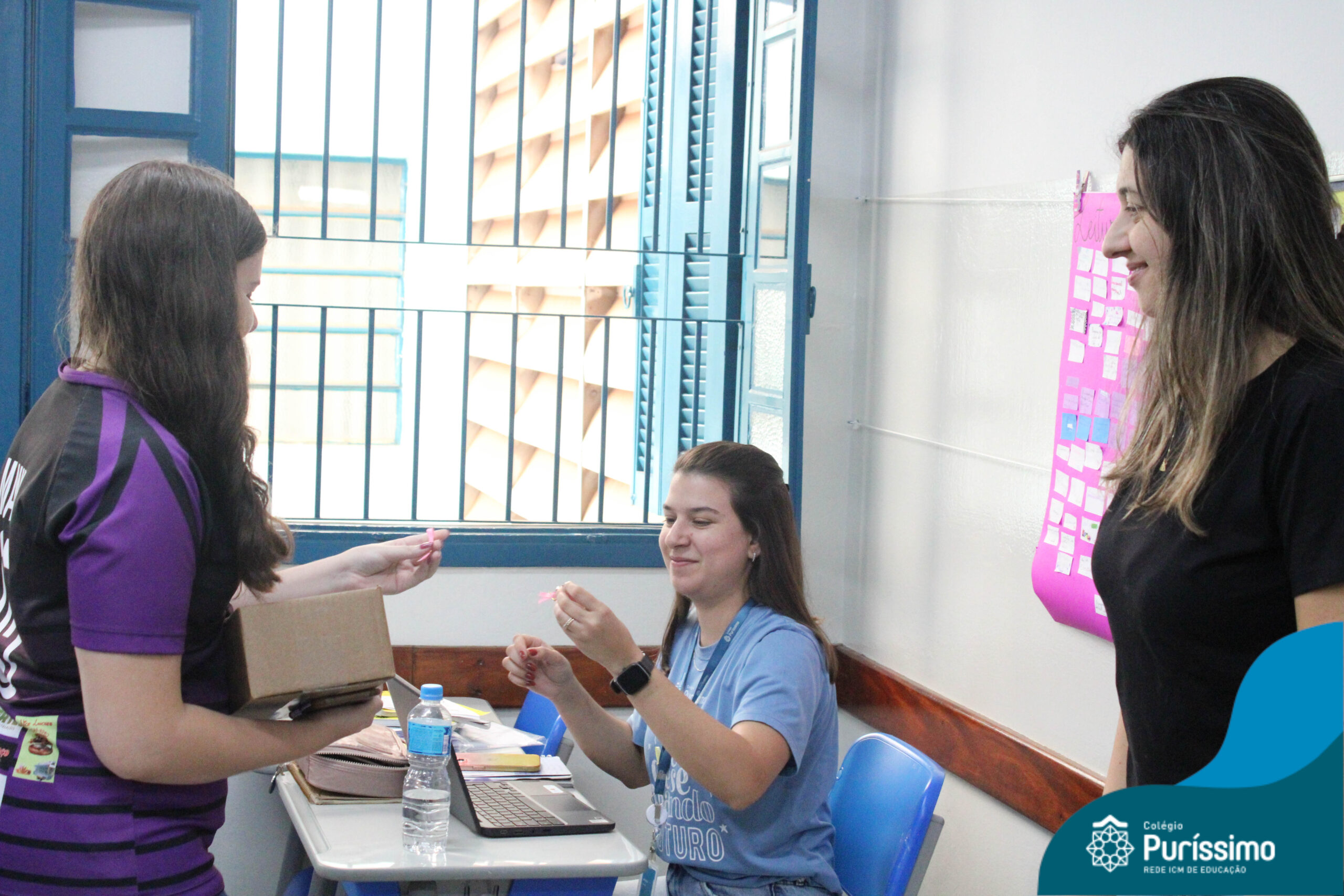 Dentro do cronograma de macro ação da Rede ICM, os alunos da Pastoral Escolar fizeram a entrega do laço rosa para professores e colaboradores do Puri.