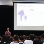 Os alunos do Jardim II ao 3º ano do Ensino Médio, assistiram ao longo do dia de hoje a palestra do Diretor de Suporte da McAfee, José Matias Neto. Com o mesmo tema da noite anterior, a conversa dessa vez foi voltada aos alunos e o que eles devem fazer para se prevenir na internet, quais os cuidados, ameaças, proteção, bullying e cibercrime.