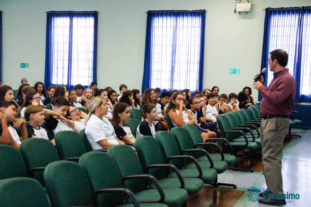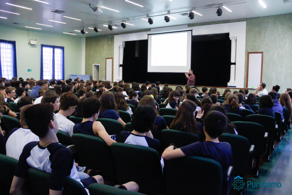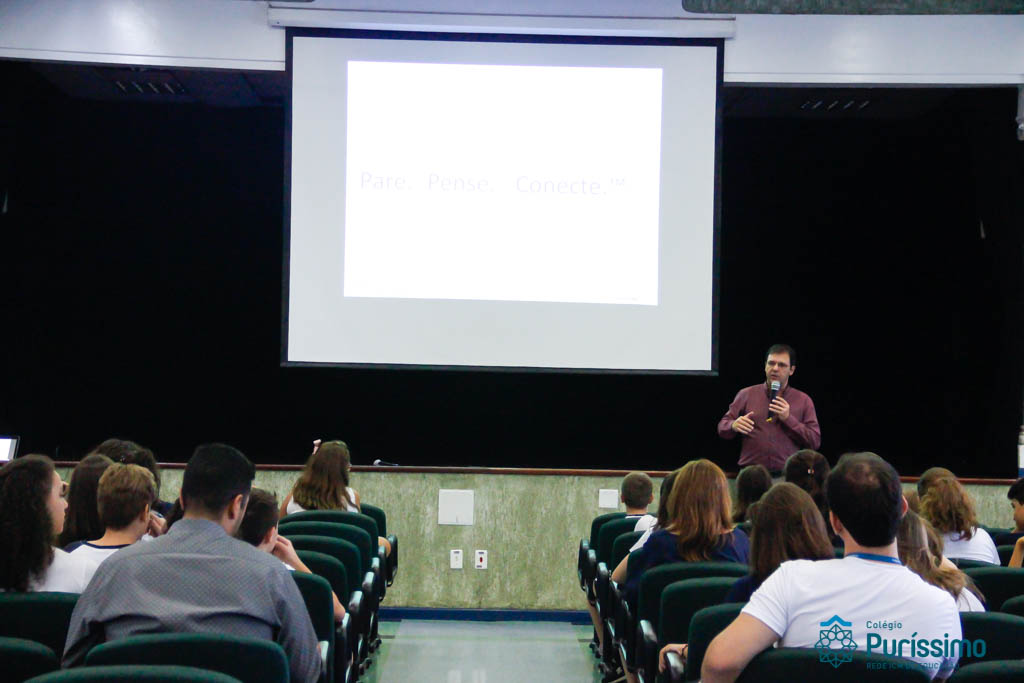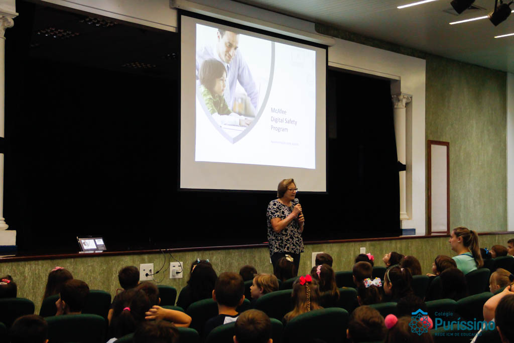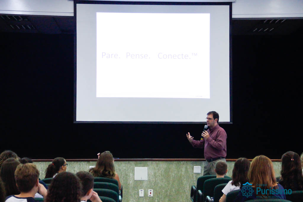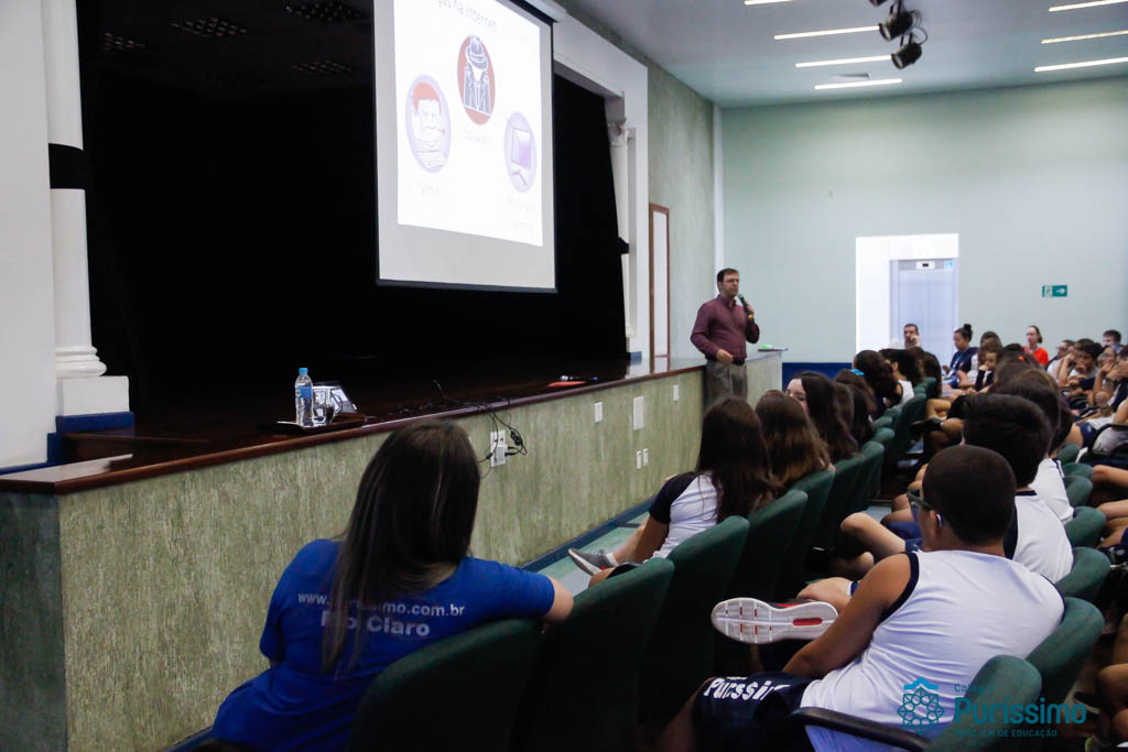 Os alunos do Jardim II ao 3º ano do Ensino Médio, assistiram ao longo do dia de hoje a palestra do Diretor de Suporte da McAfee, José Matias Neto. Com o mesmo tema da noite anterior, a conversa dessa vez foi voltada aos alunos e o que eles devem fazer para se prevenir na internet, quais os cuidados, ameaças, proteção, bullying e cibercrime.