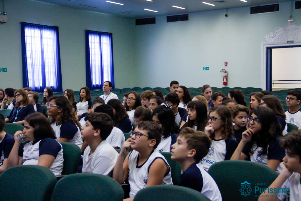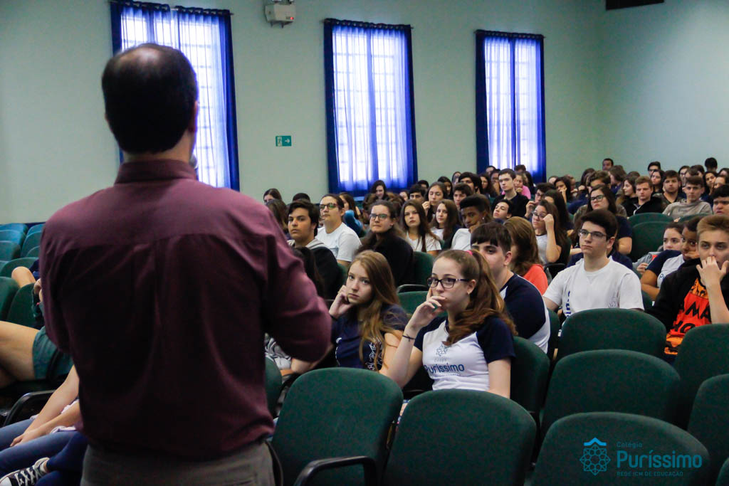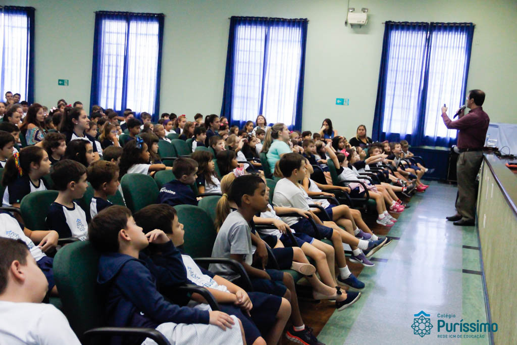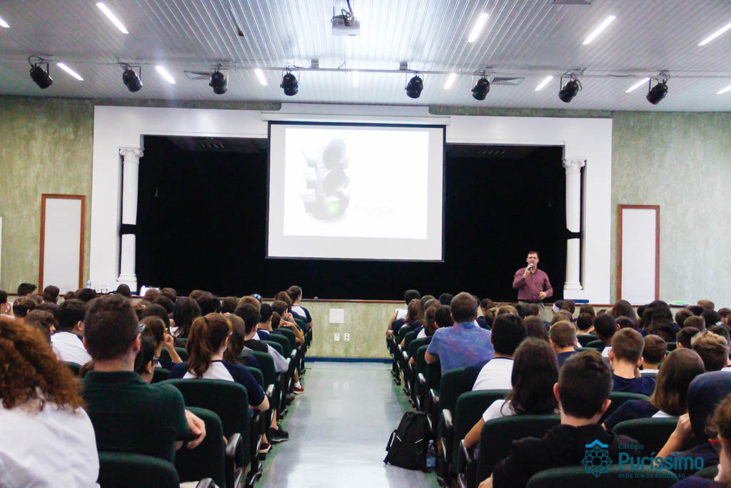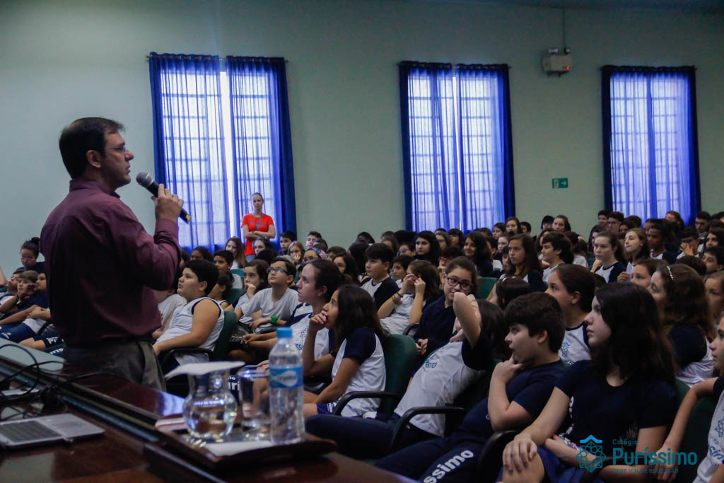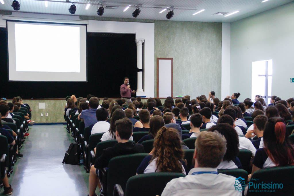 Os alunos do Jardim II ao 3º ano do Ensino Médio, assistiram ao longo do dia de hoje a palestra do Diretor de Suporte da McAfee, José Matias Neto. Com o mesmo tema da noite anterior, a conversa dessa vez foi voltada aos alunos e o que eles devem fazer para se prevenir na internet, quais os cuidados, ameaças, proteção, bullying e cibercrime.