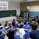 O bate-papo exclusivo foi brindado com muita informação, utensílios indígenas e um momento riquíssimo de interação. Durante a palestra Aryane explicou e mostrou imagens sobre as culturas que serão alvo da apresentação de palco dos terceiros anos no próximo dia 23, sobre as tribos Guaranis, Ticunas, Macixis e kaingang.