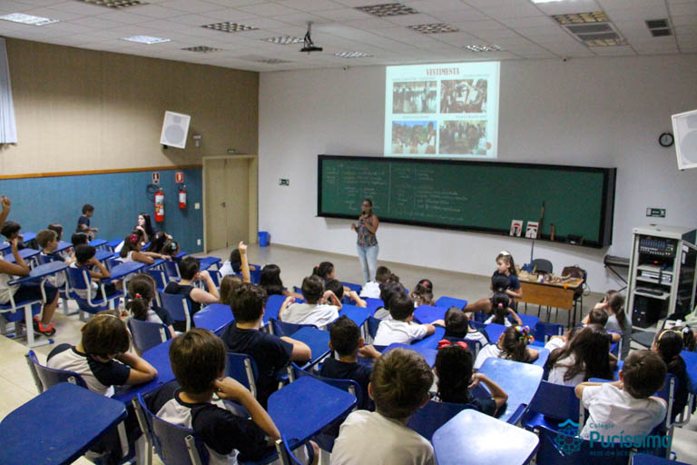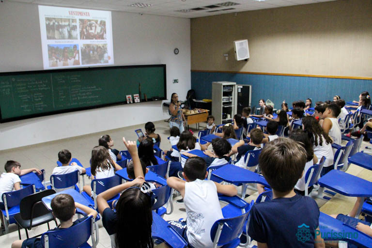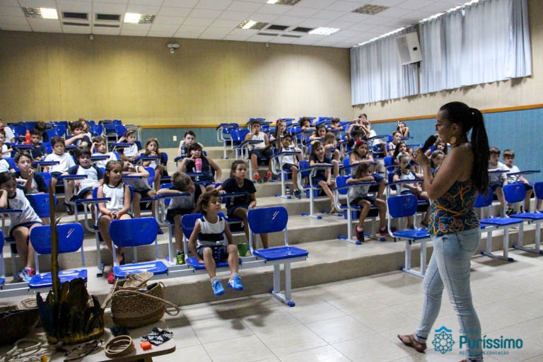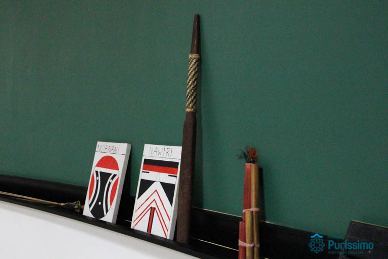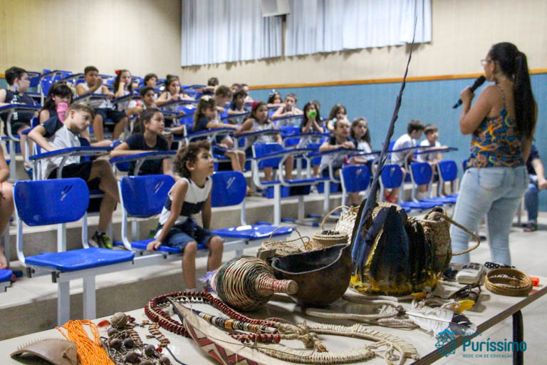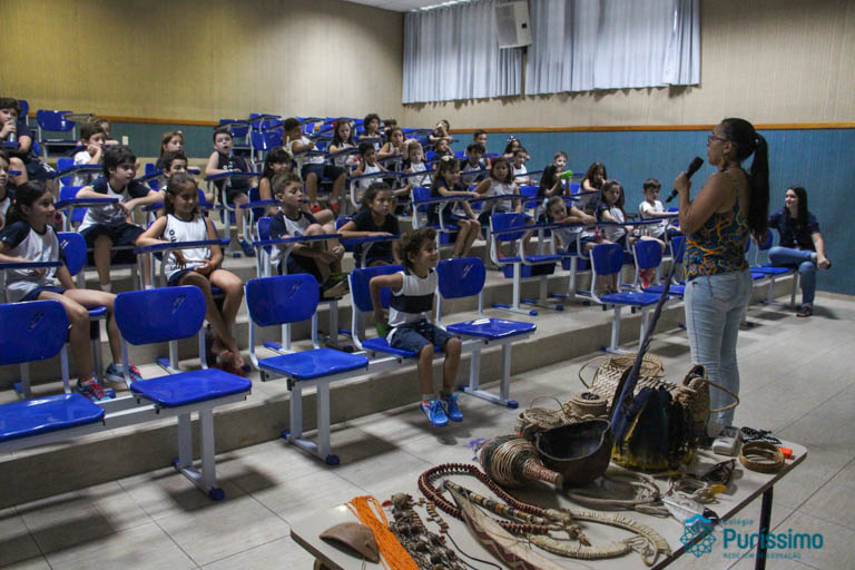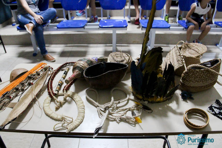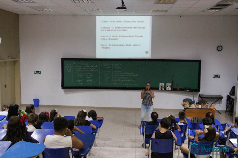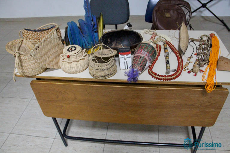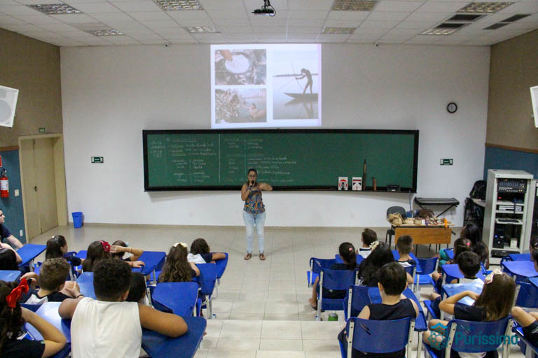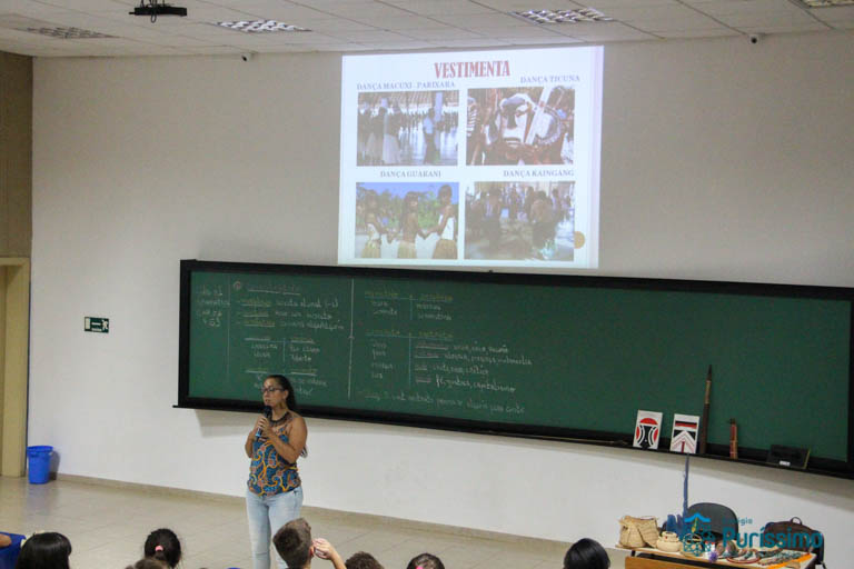 O bate-papo exclusivo foi brindado com muita informação, utensílios indígenas e um momento riquíssimo de interação. Durante a palestra Aryane explicou e mostrou imagens sobre as culturas que serão alvo da apresentação de palco dos terceiros anos no próximo dia 23, sobre as tribos Guaranis, Ticunas, Macixis e kaingang.