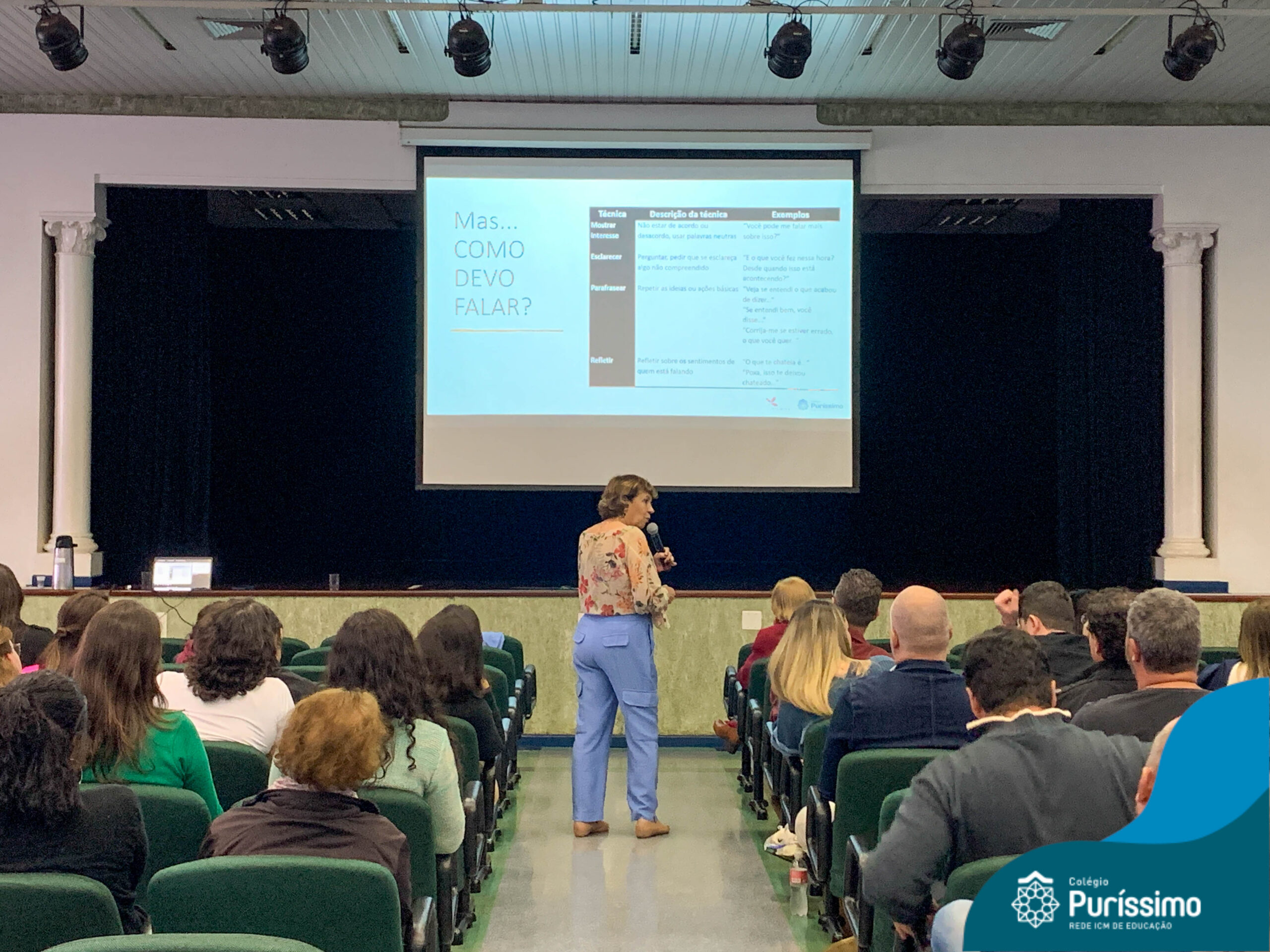 Nossos professores tiveram a oportunidade de participar de duas palestras incríveis: “As chamadas competências socioemocionais na escola. E o professor com isso?”, ministrada por Rodrigo Teixeira Conceição, professor, palestrante e editor de artigos, e “Comunicação não violenta”, realizada por Sandra Regina Rezende Garcia, vice-presidente do Instituto ELA – Educadoras do Brasil e diretora pedagógica e de soluções pedagógicas da Mind Lab do Brasil.