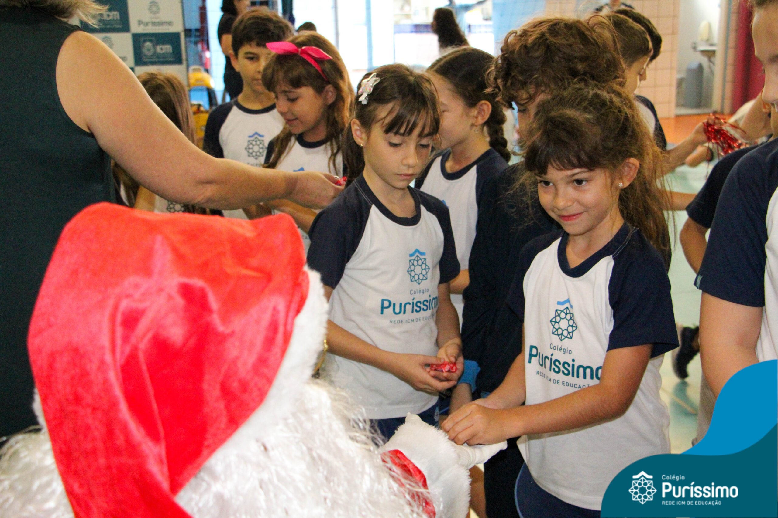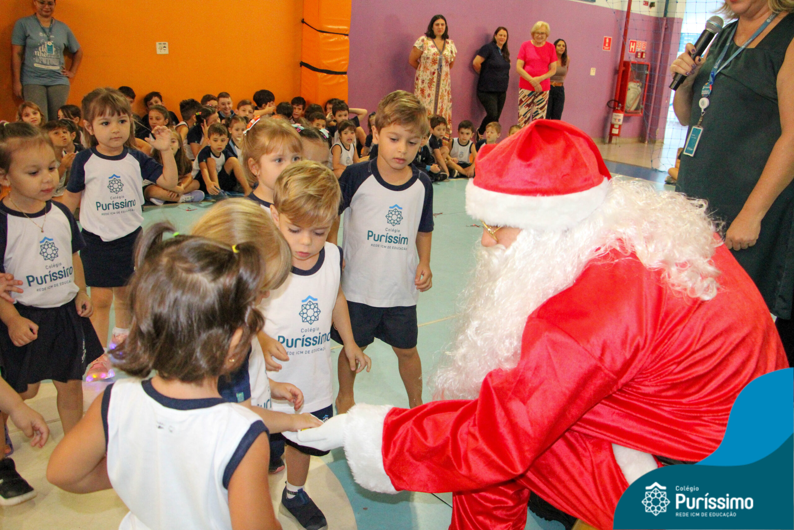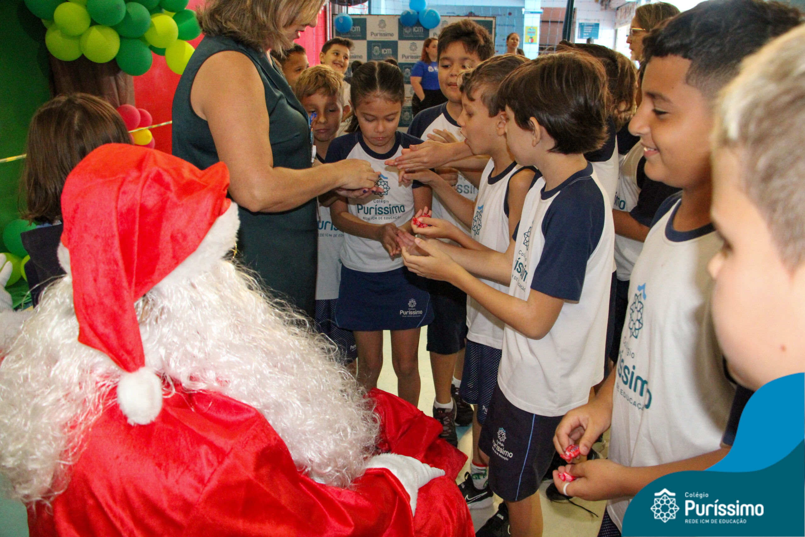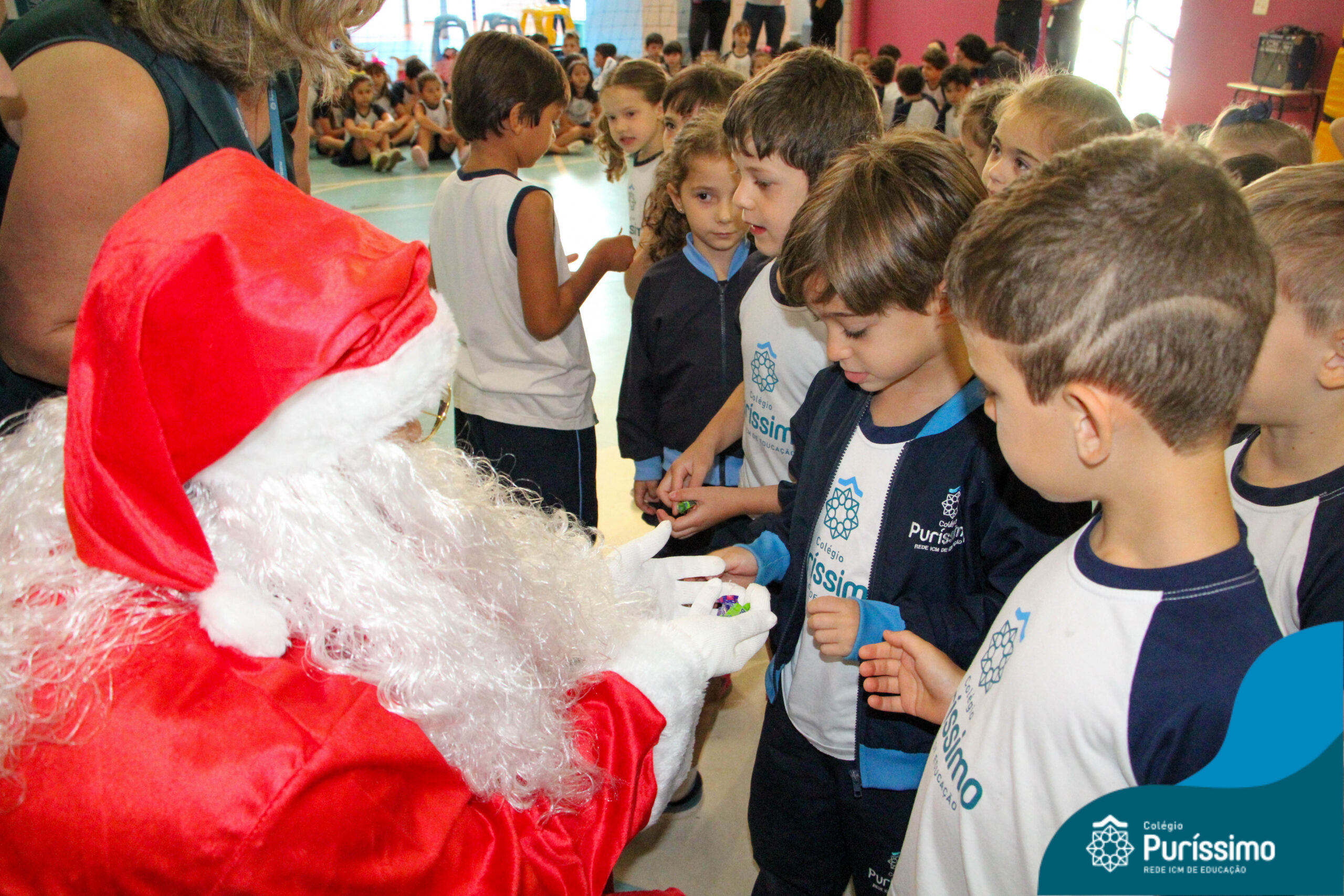 Ontem, os estudantes do Maternal ao 3º ano tiveram uma visita especial: o Papai Noel!