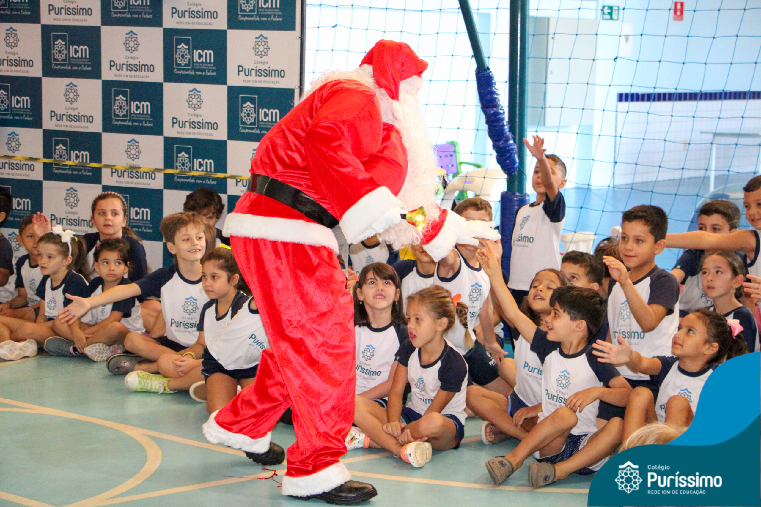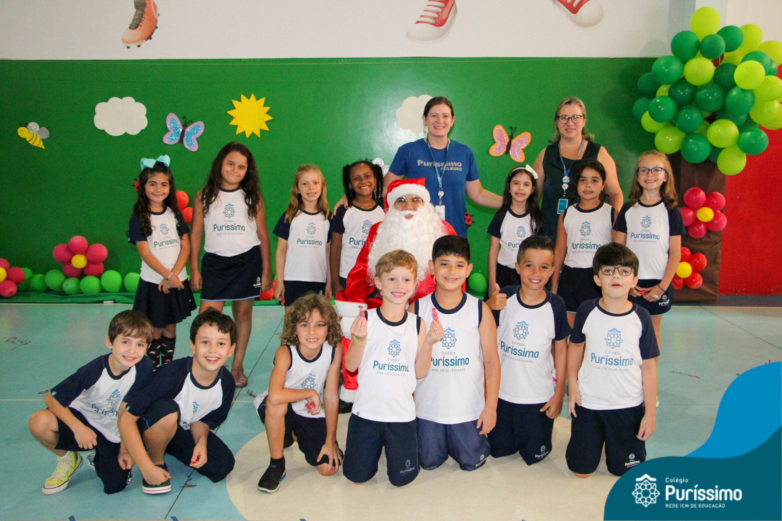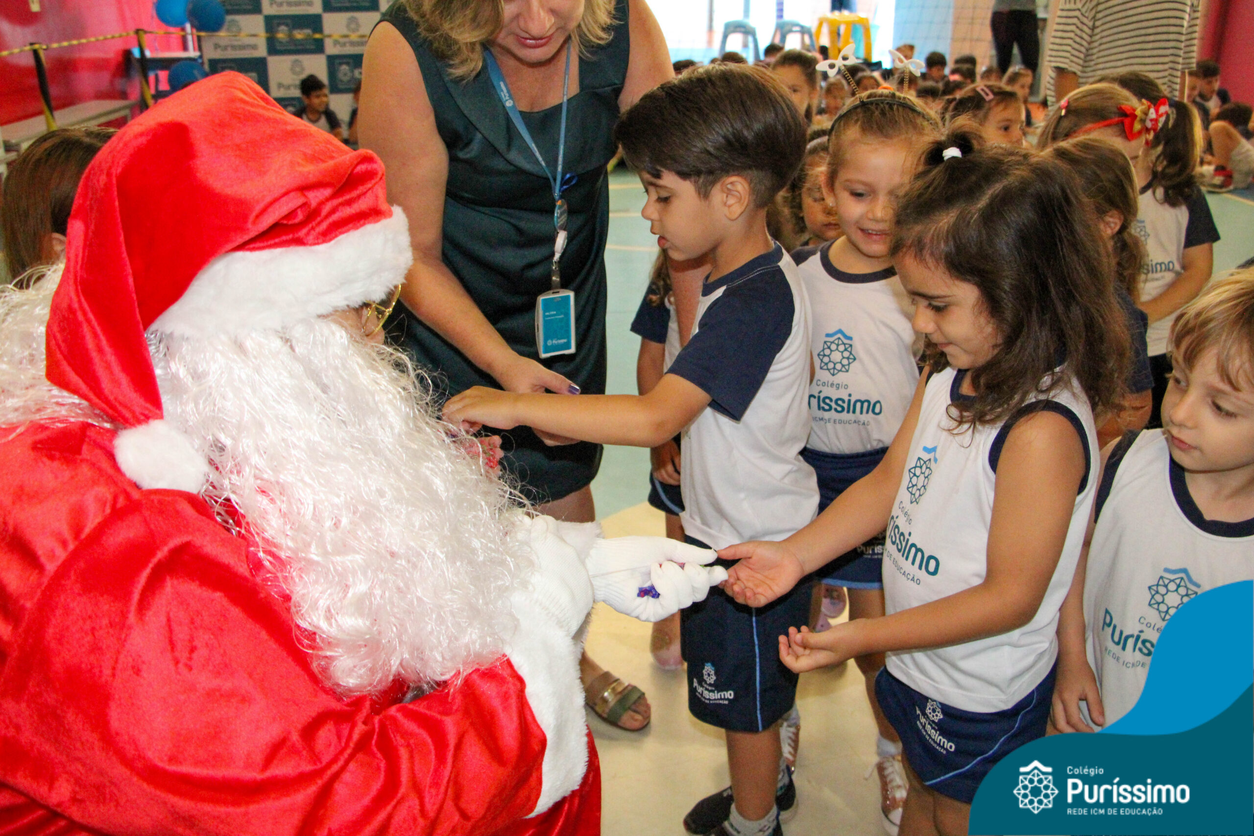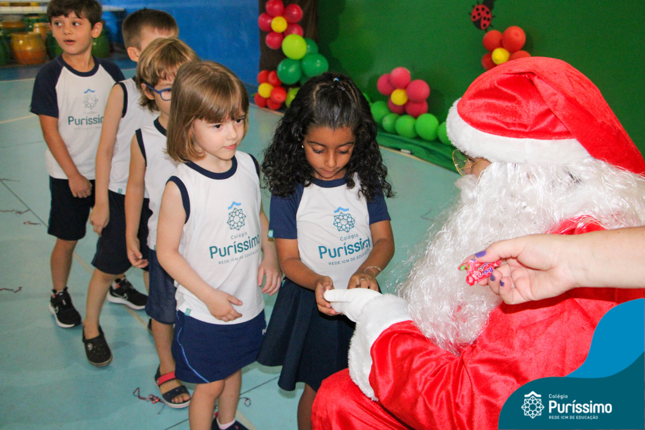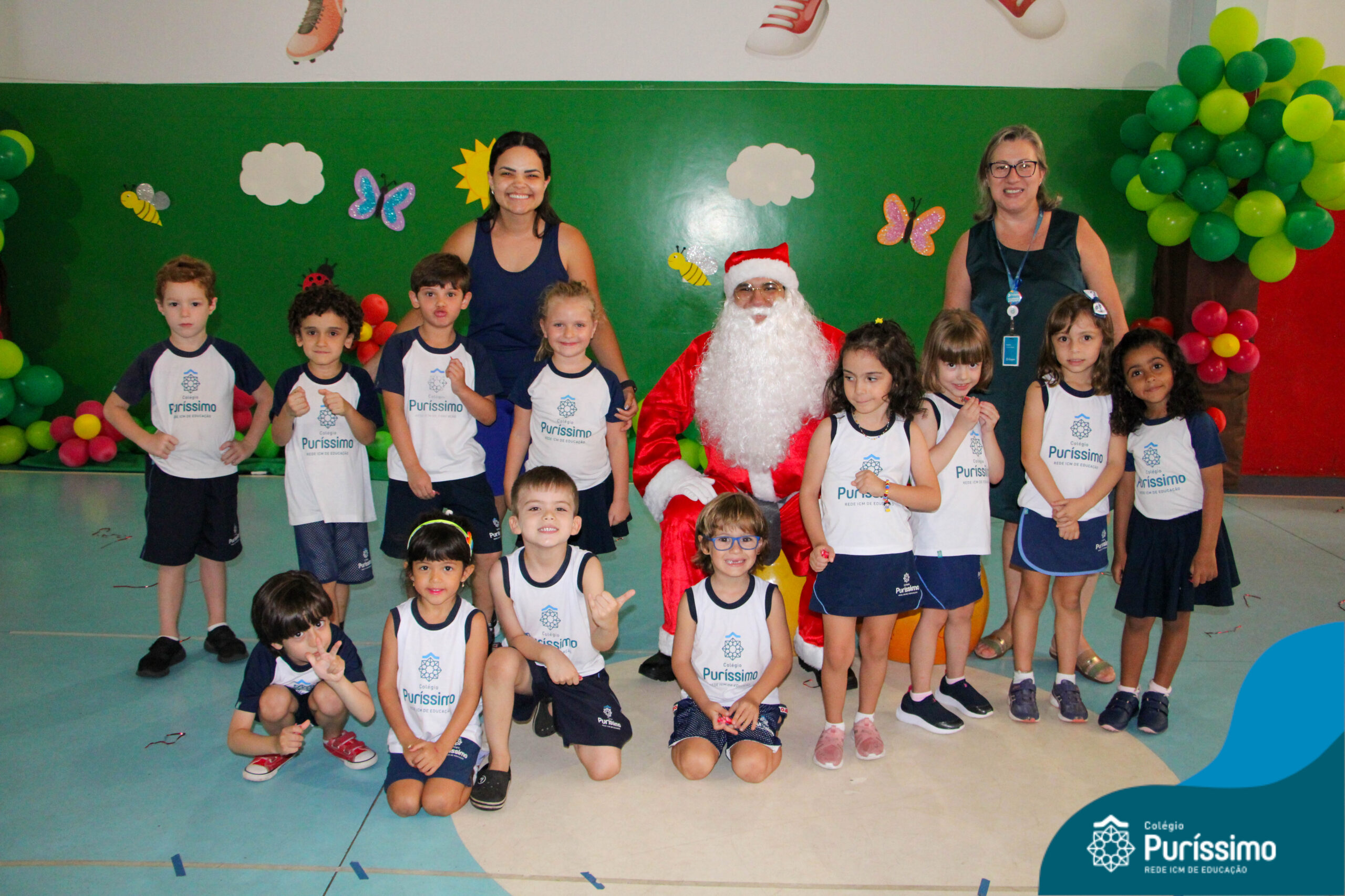 Ontem, os estudantes do Maternal ao 3º ano tiveram uma visita especial: o Papai Noel!