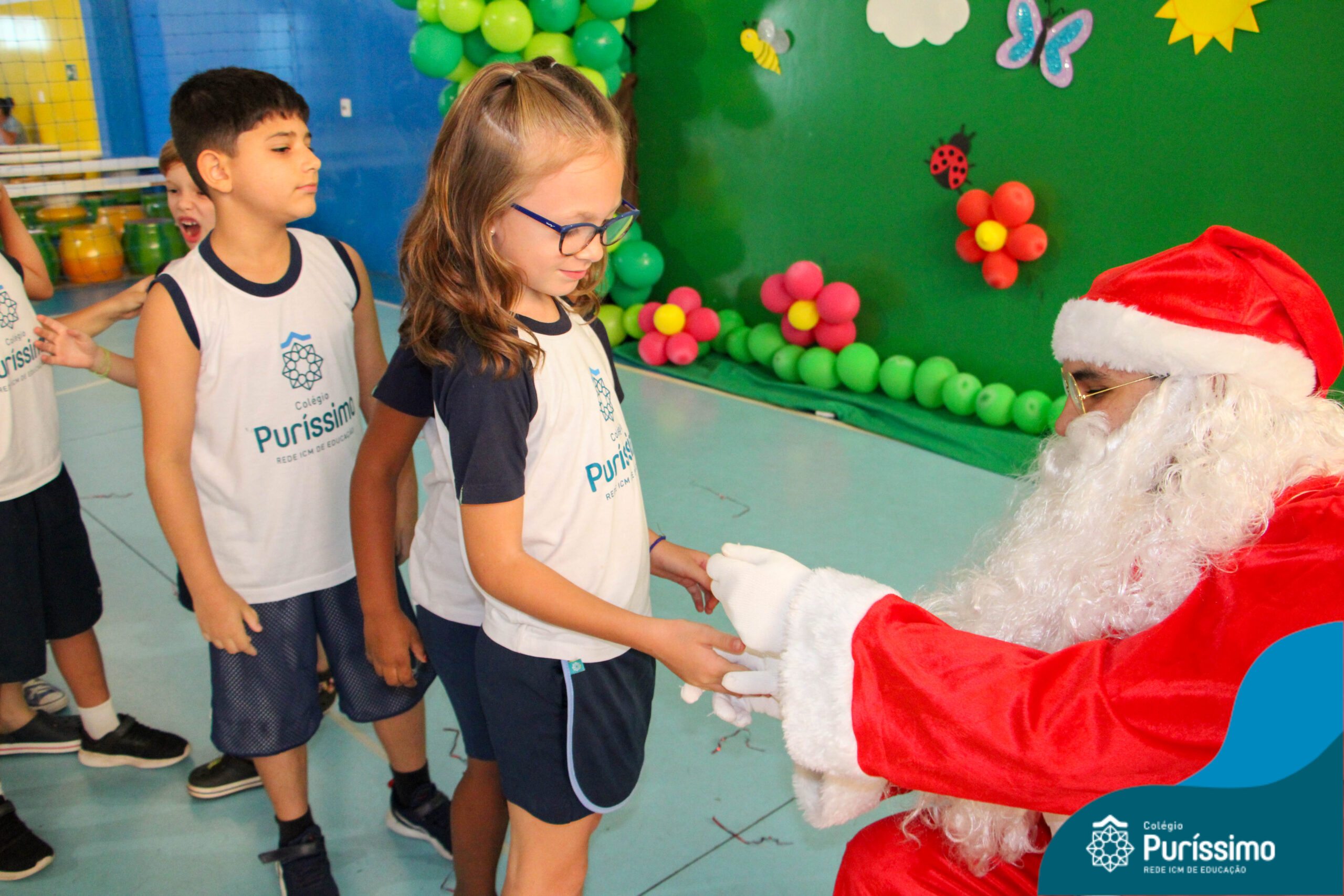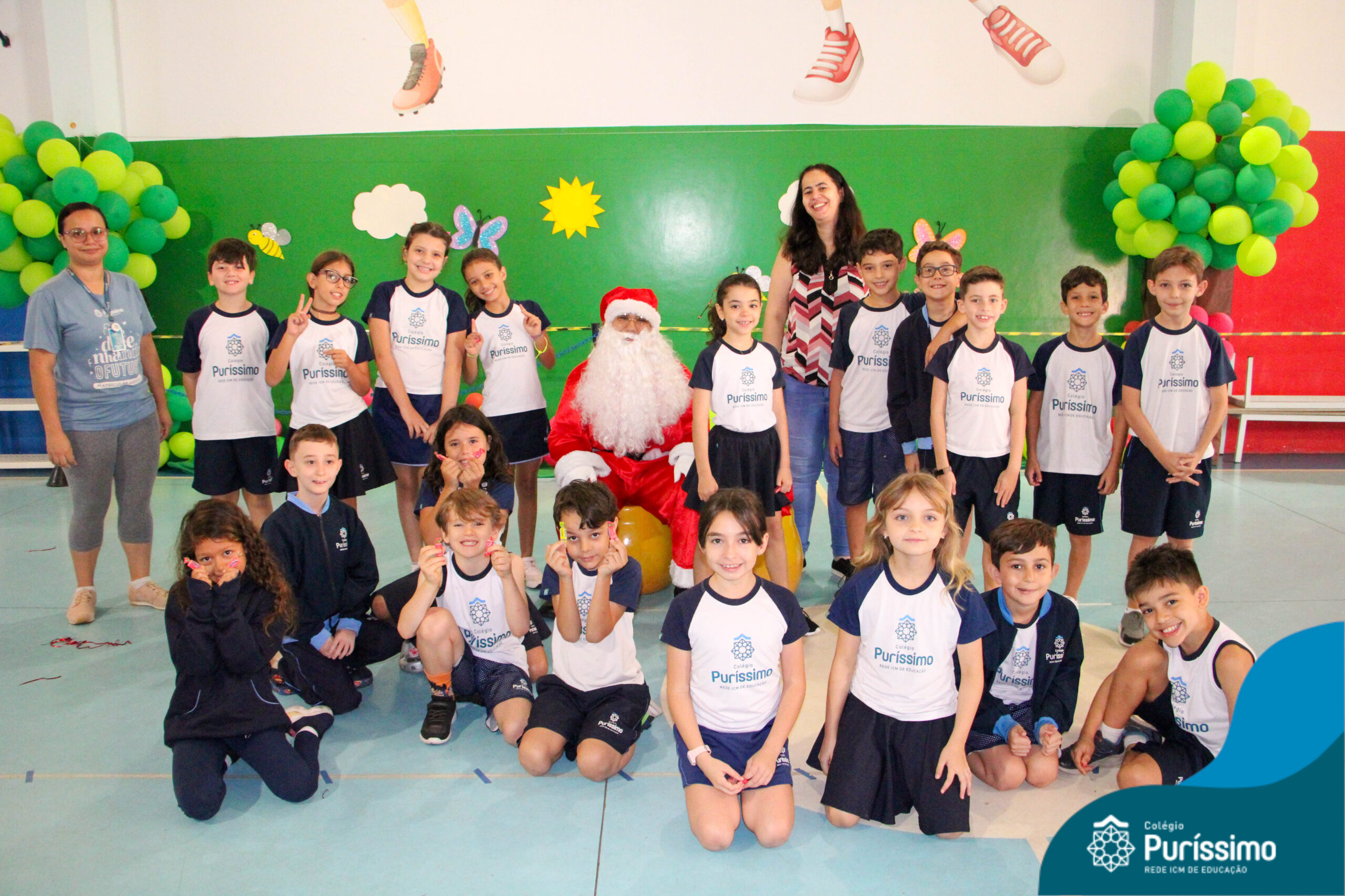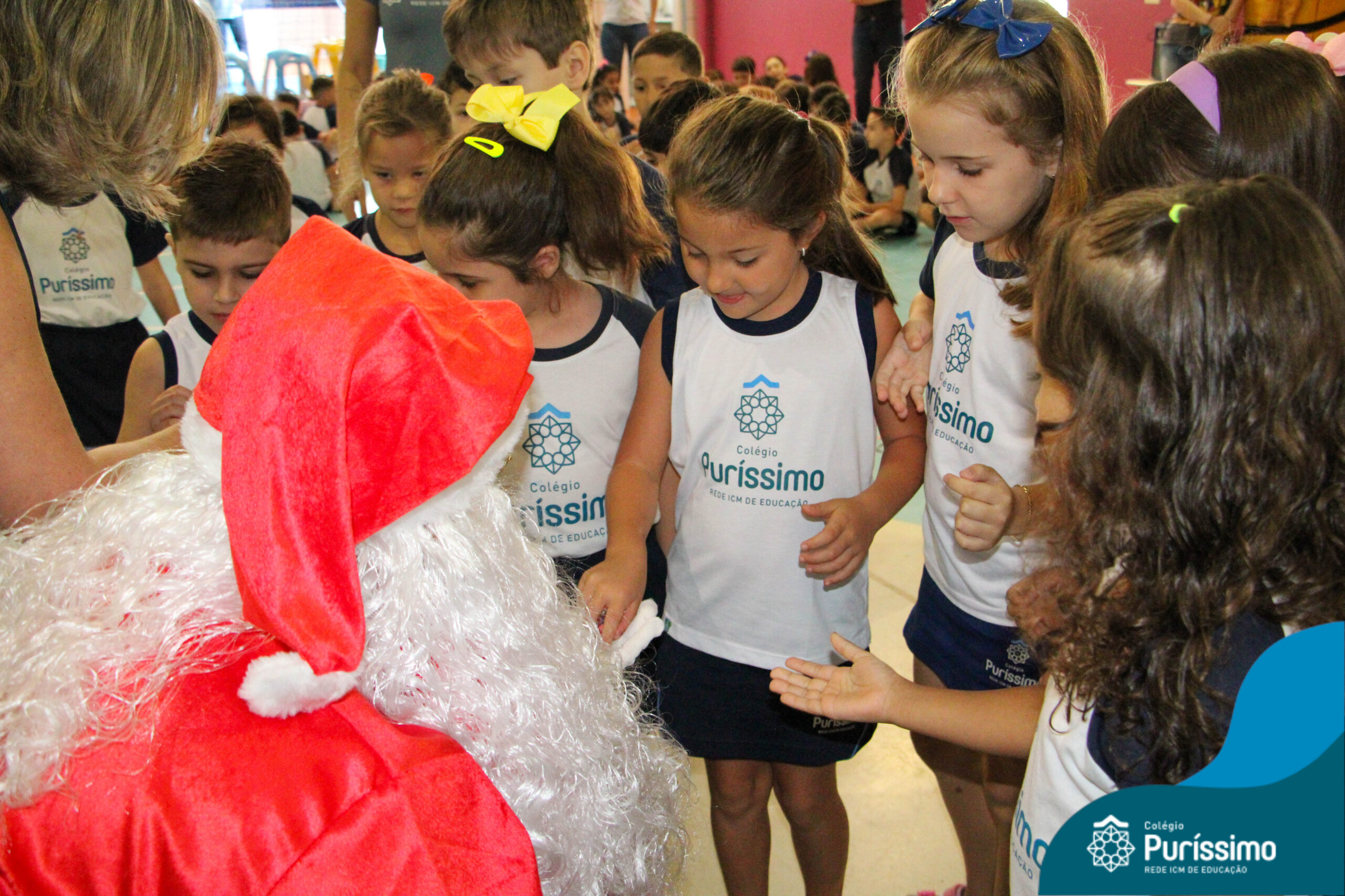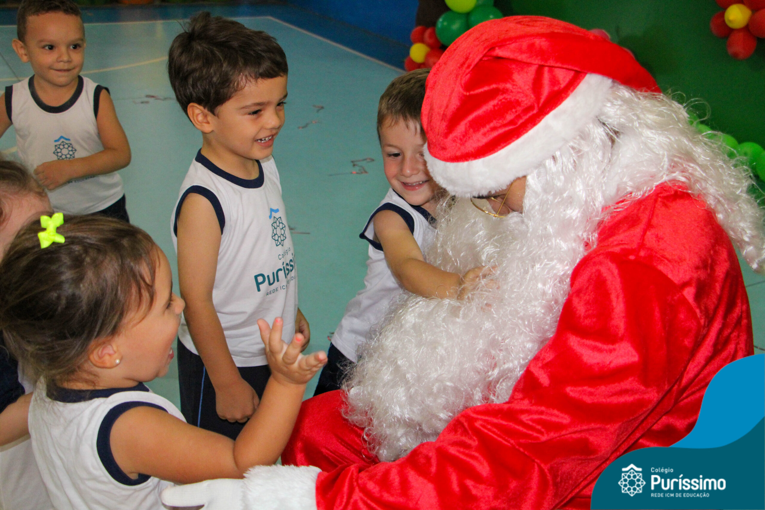 Ontem, os estudantes do Maternal ao 3º ano tiveram uma visita especial: o Papai Noel!