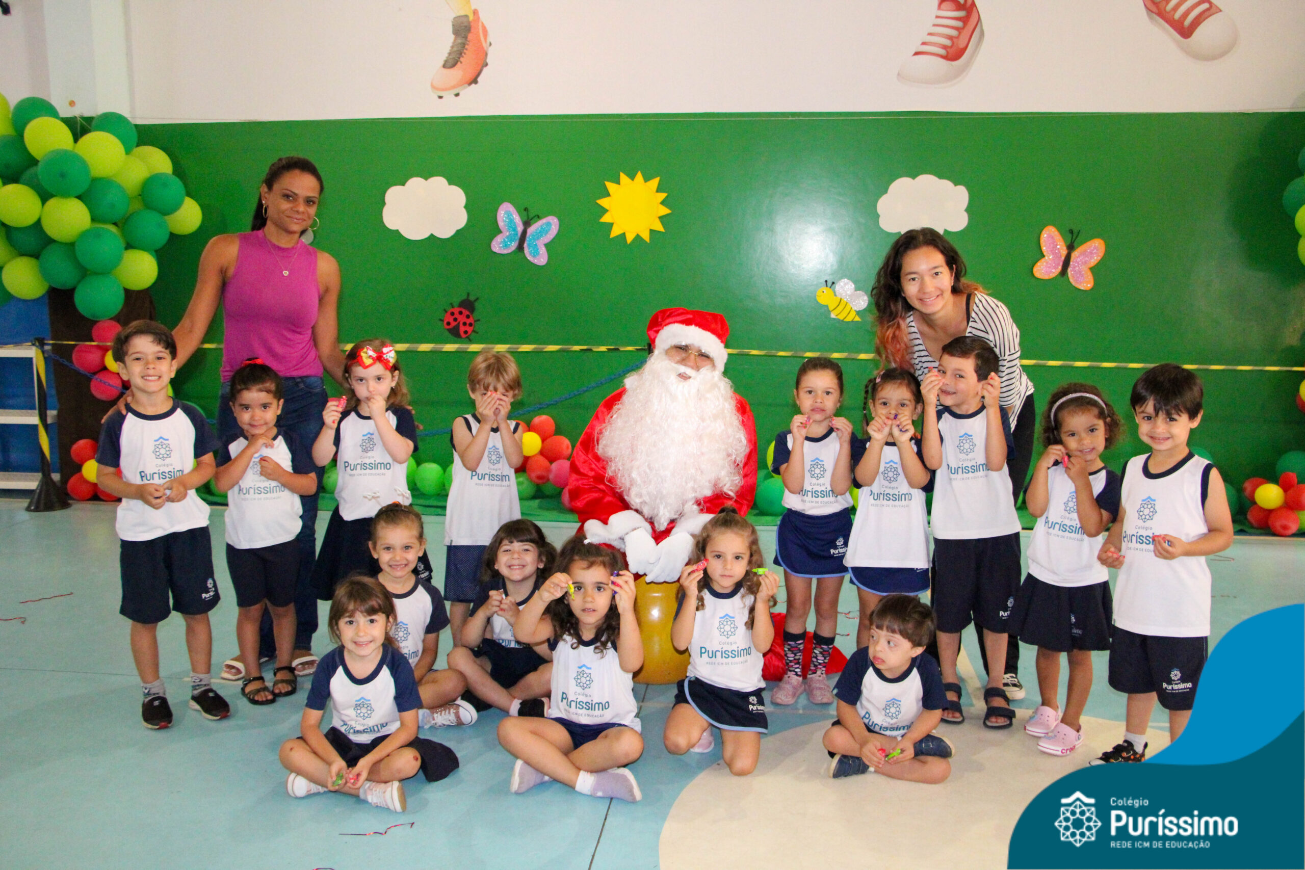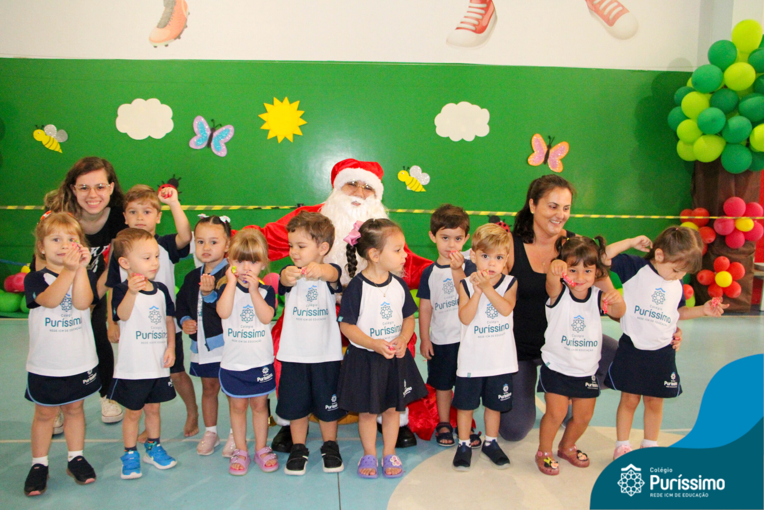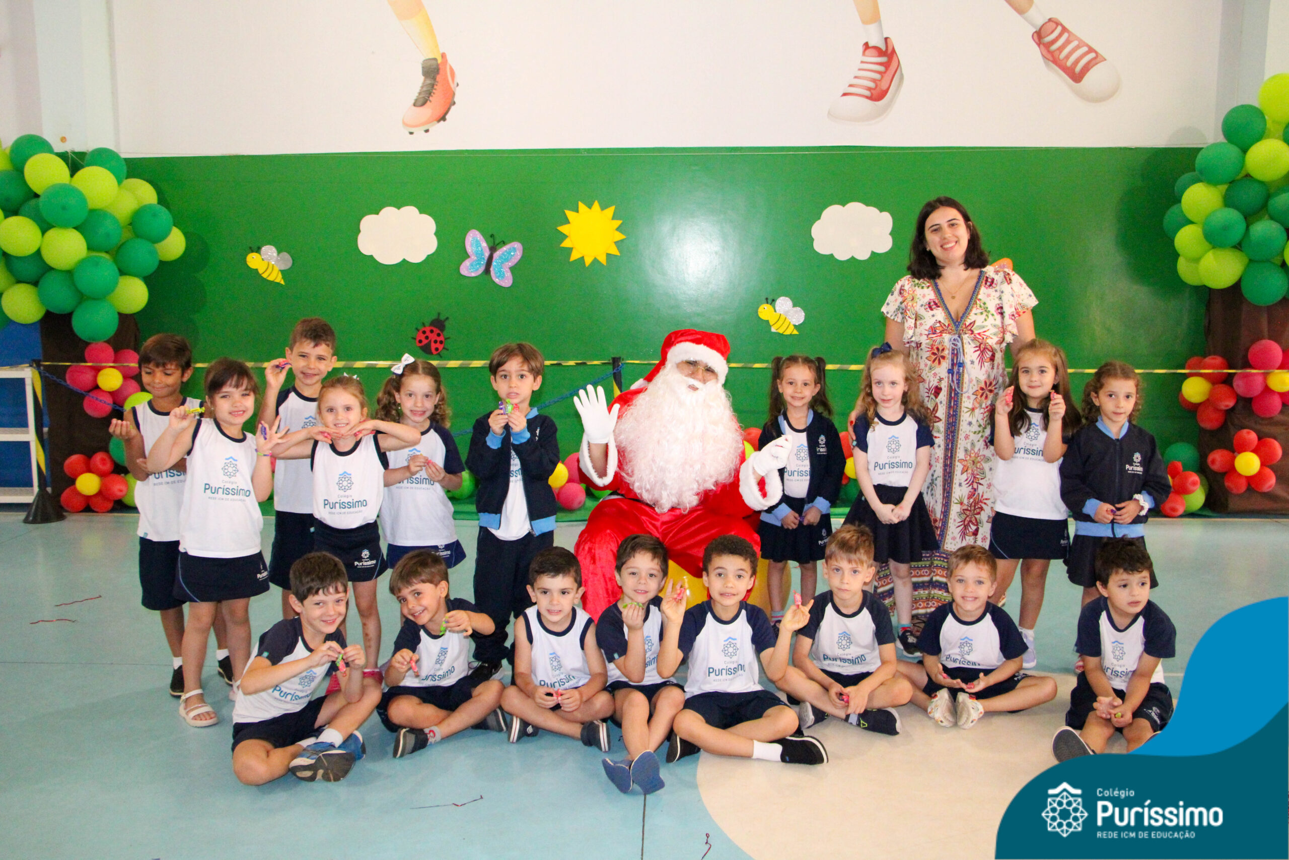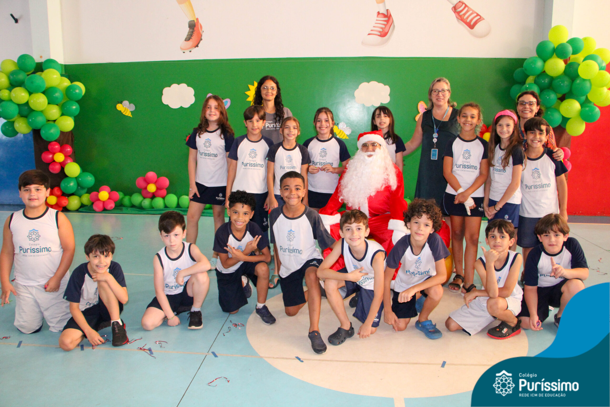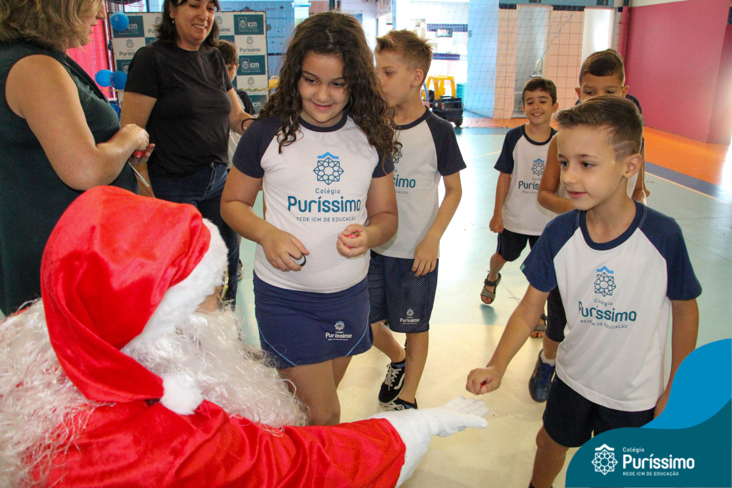 Ontem, os estudantes do Maternal ao 3º ano tiveram uma visita especial: o Papai Noel!