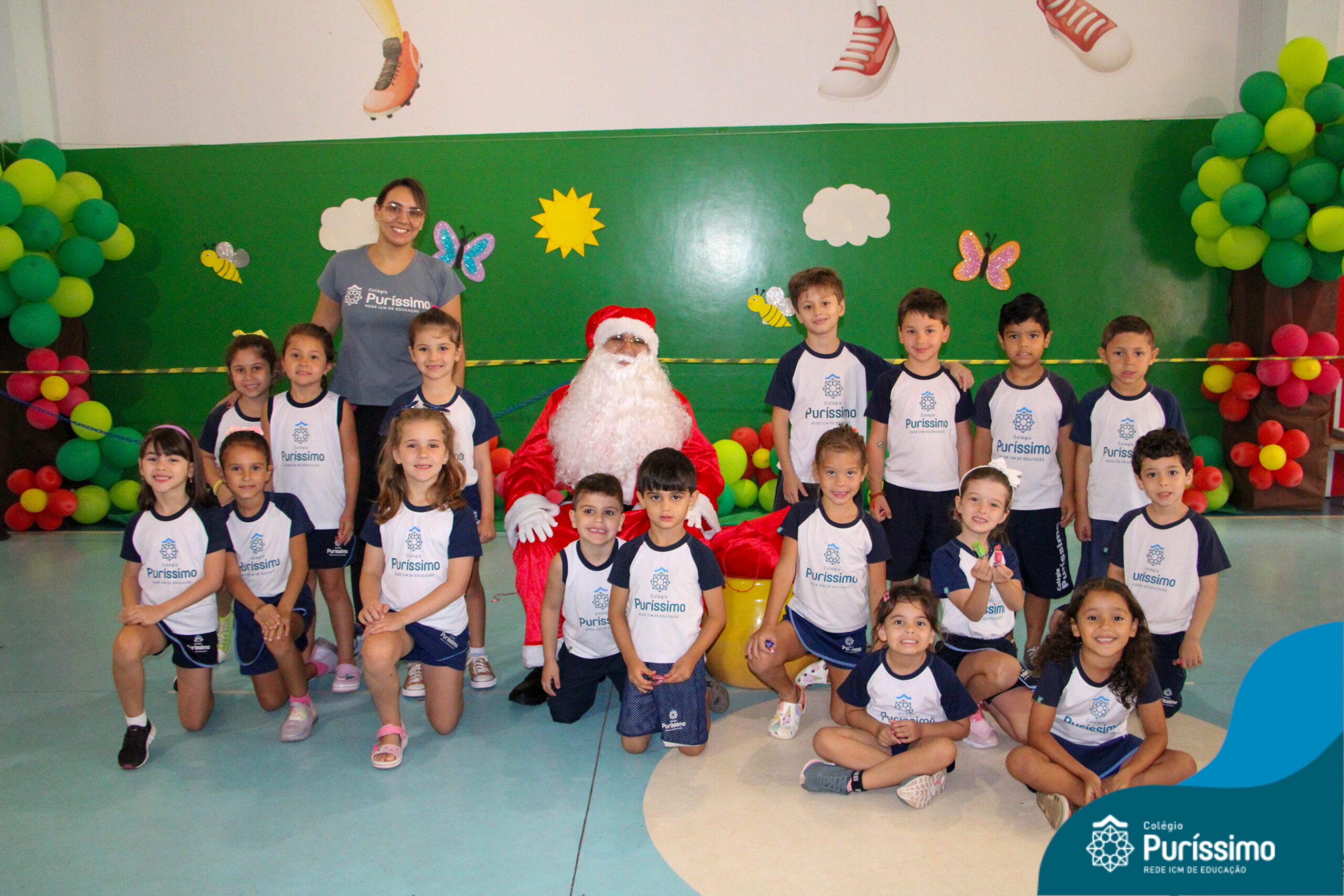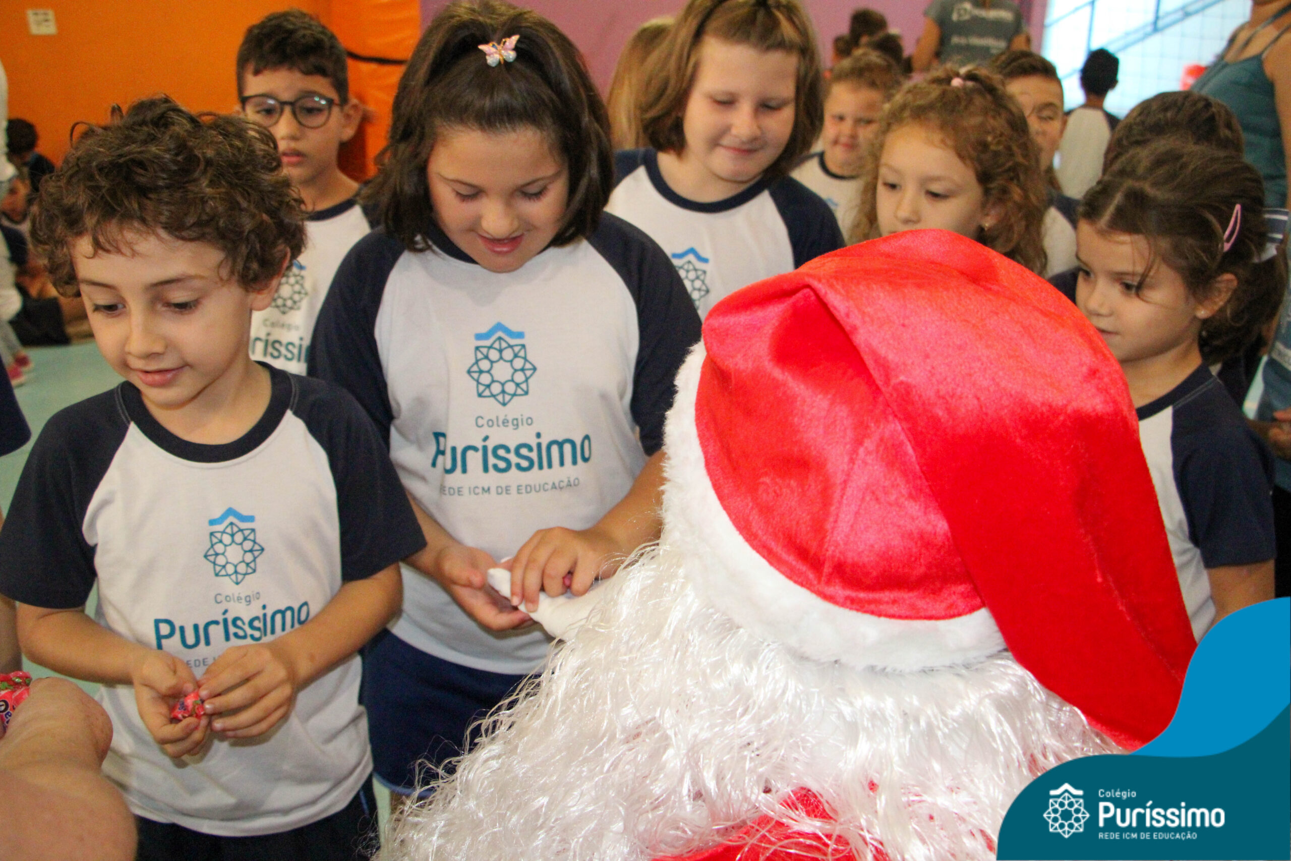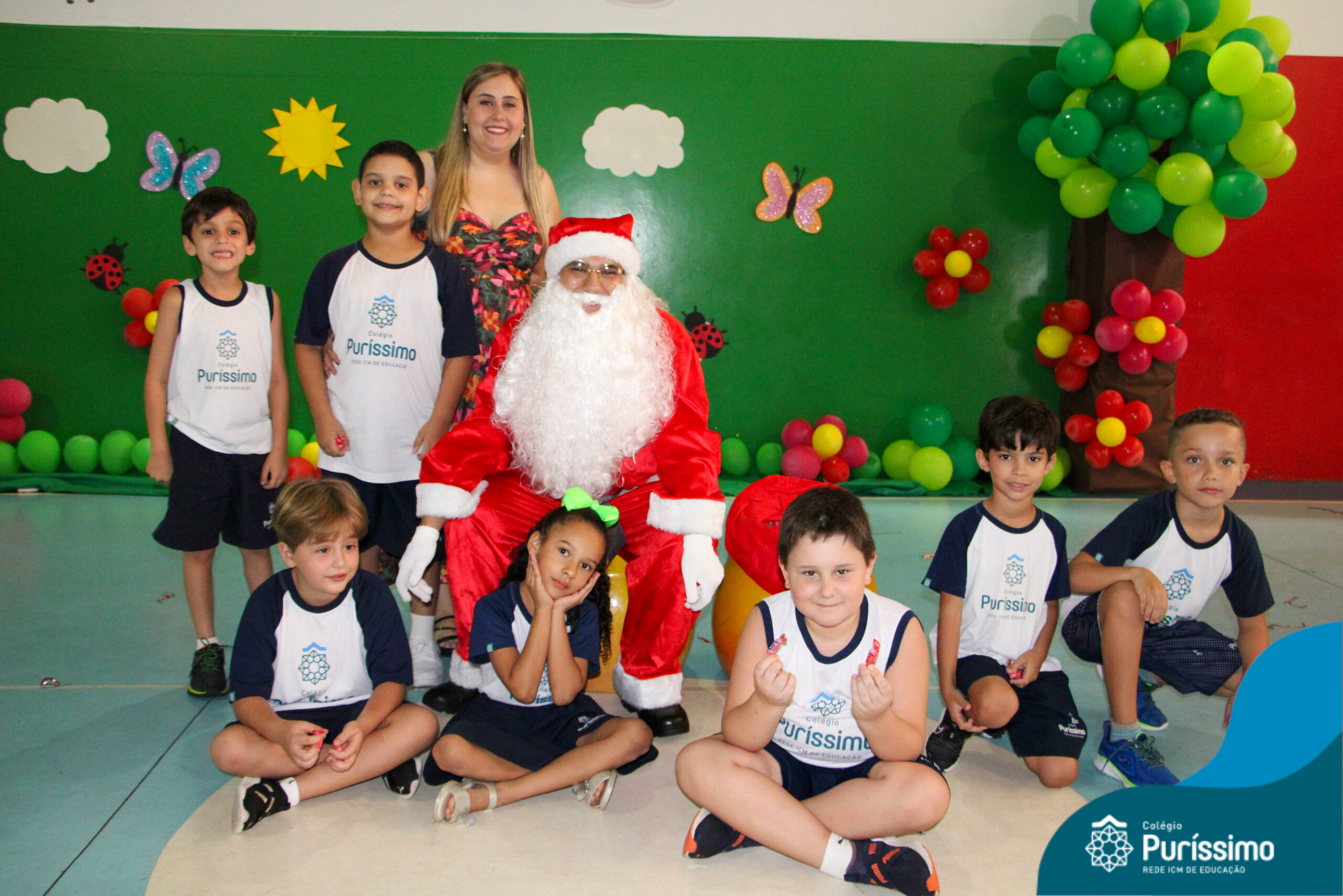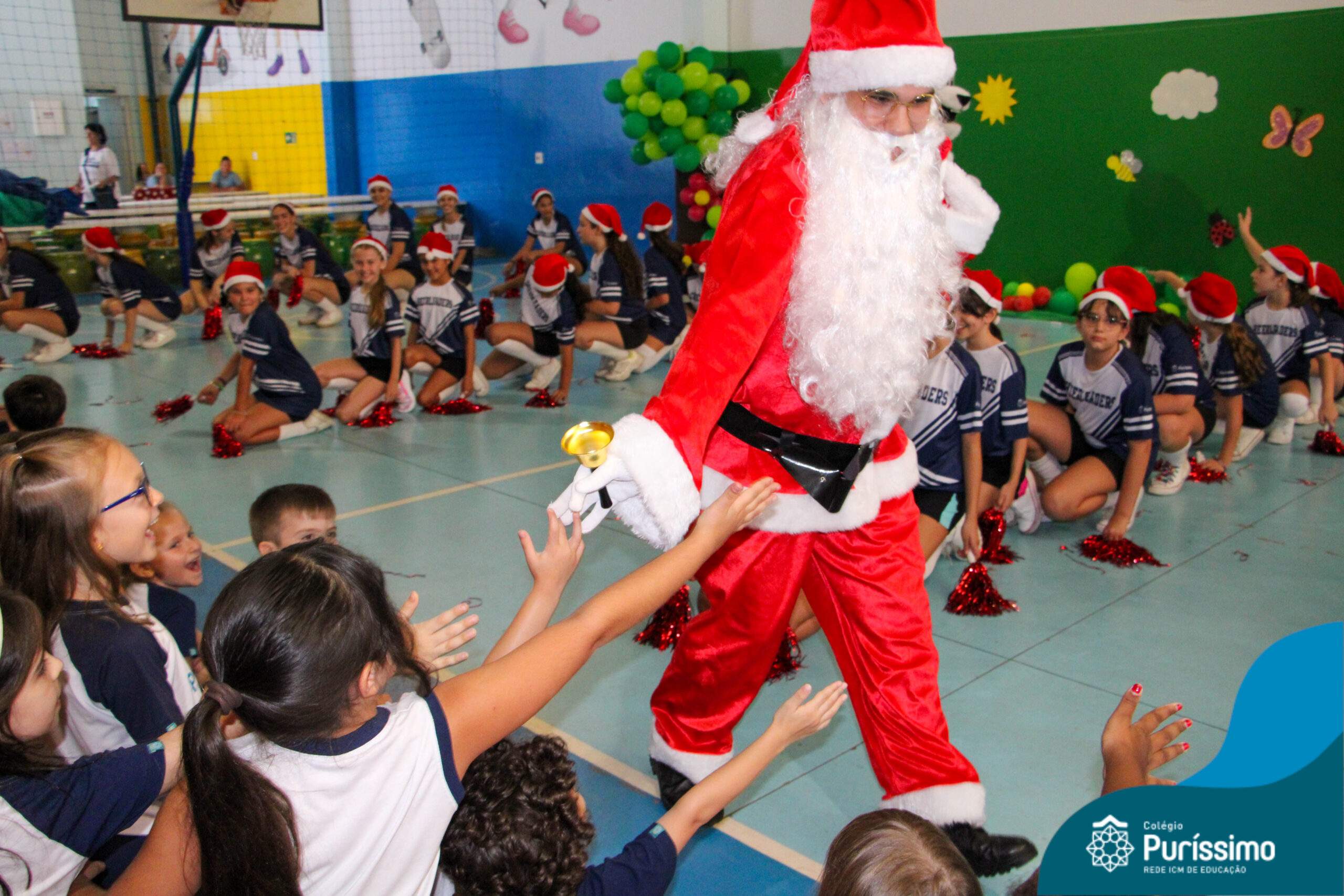 Ontem, os estudantes do Maternal ao 3º ano tiveram uma visita especial: o Papai Noel!