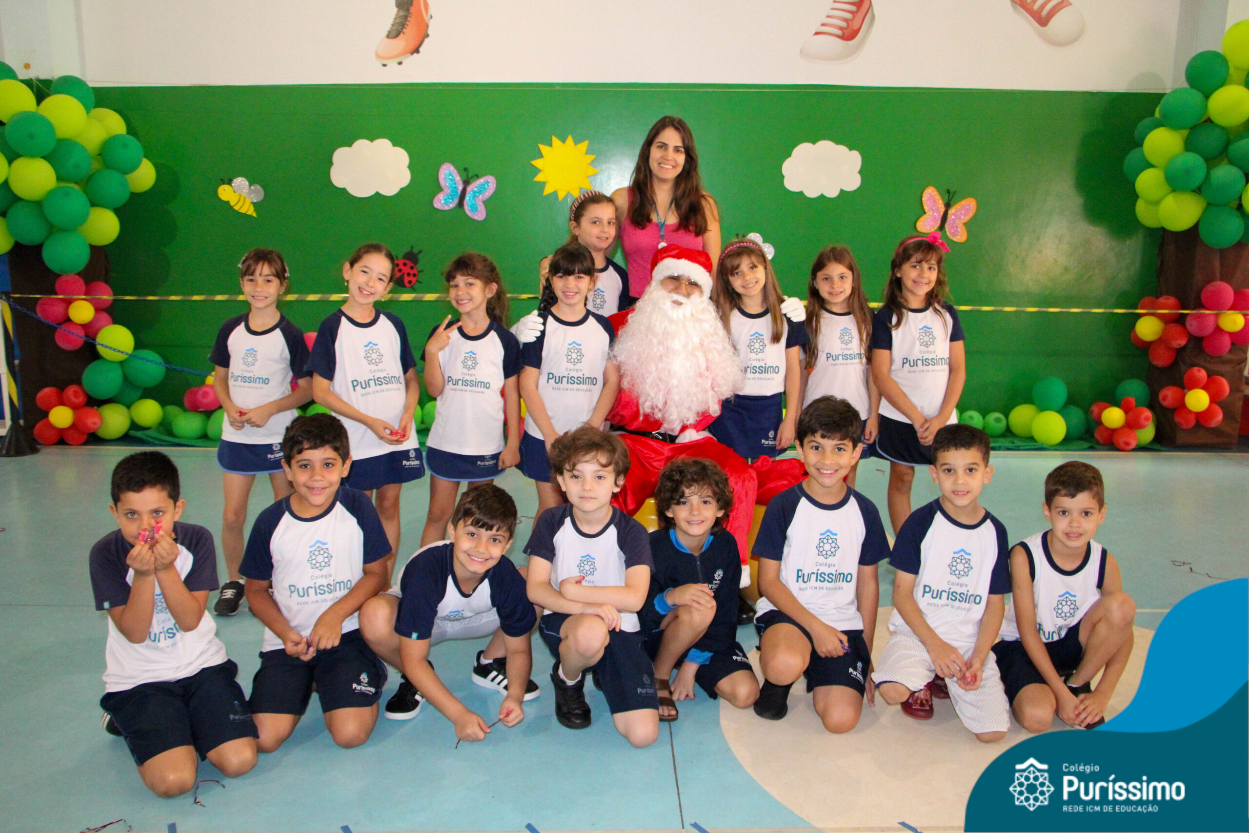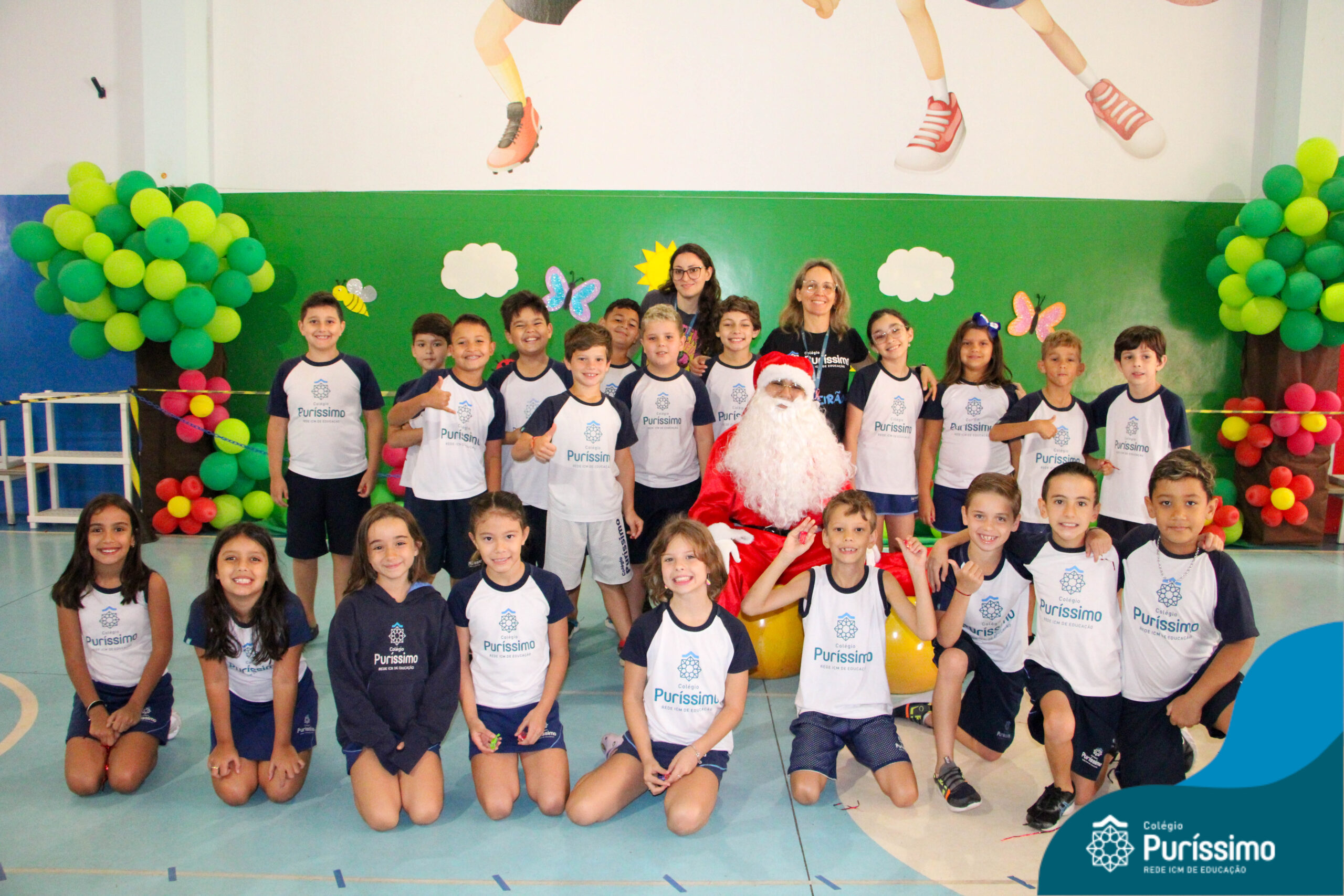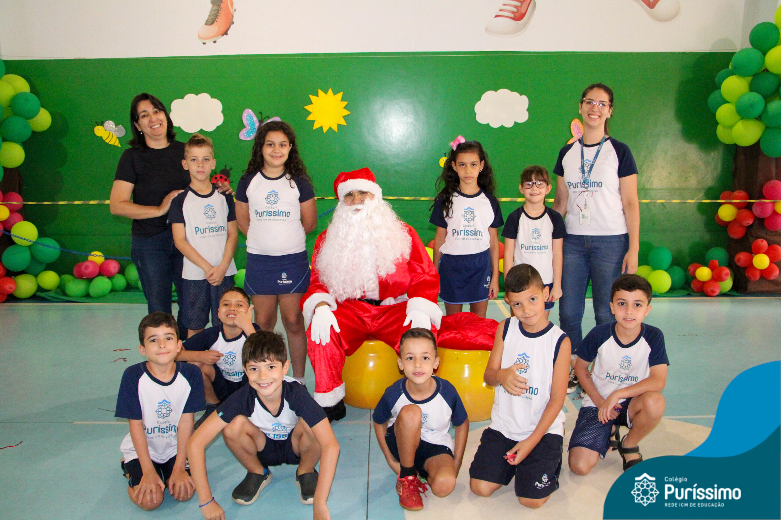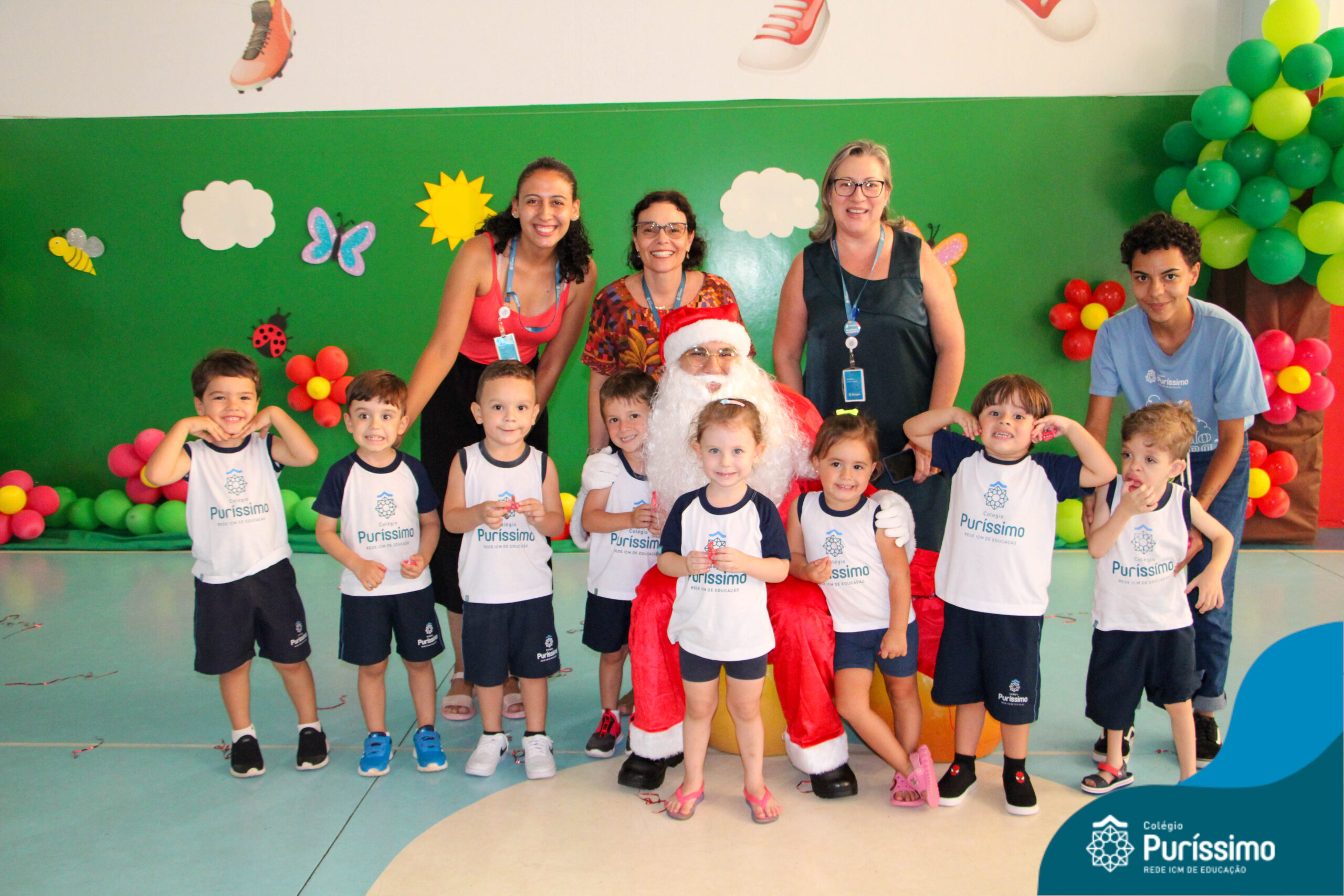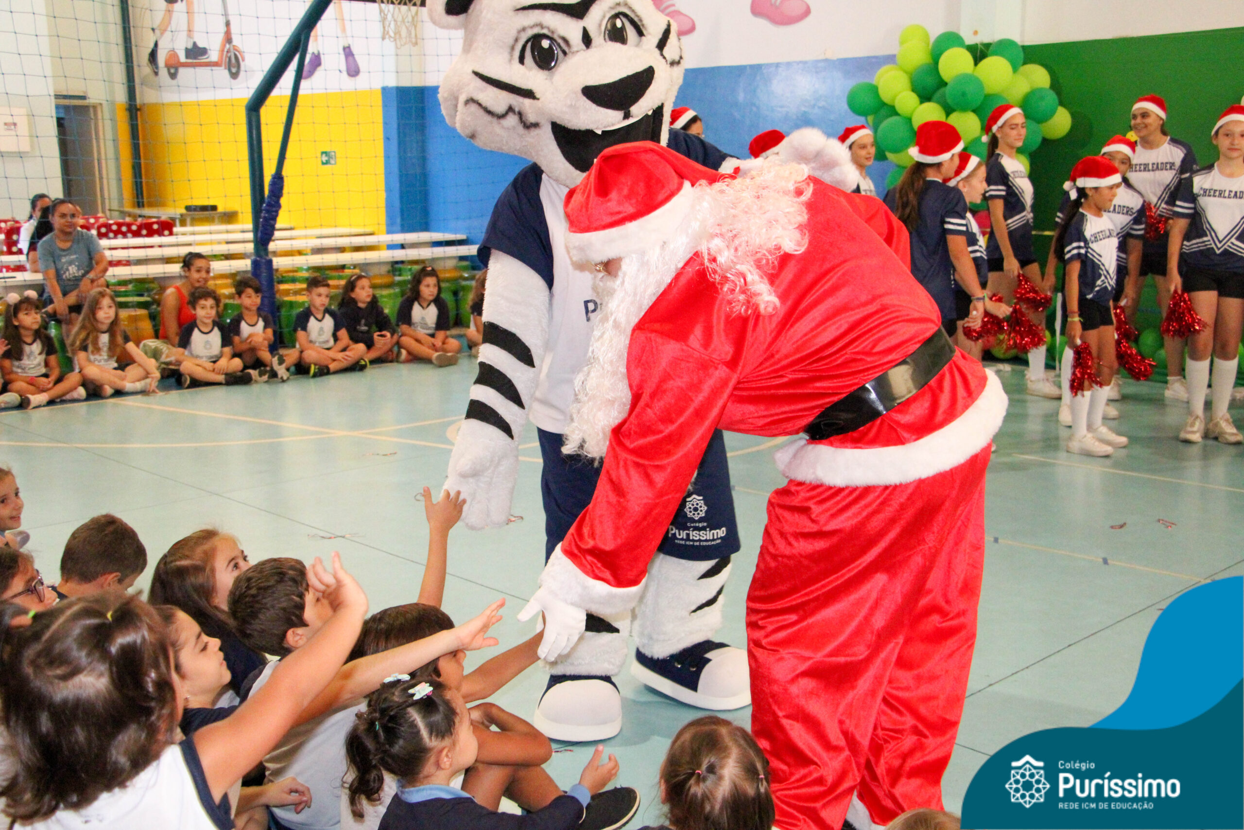 Ontem, os estudantes do Maternal ao 3º ano tiveram uma visita especial: o Papai Noel!