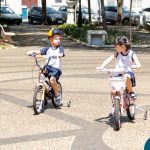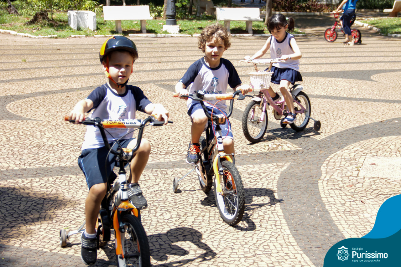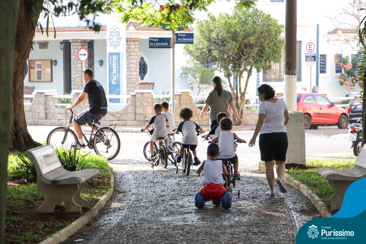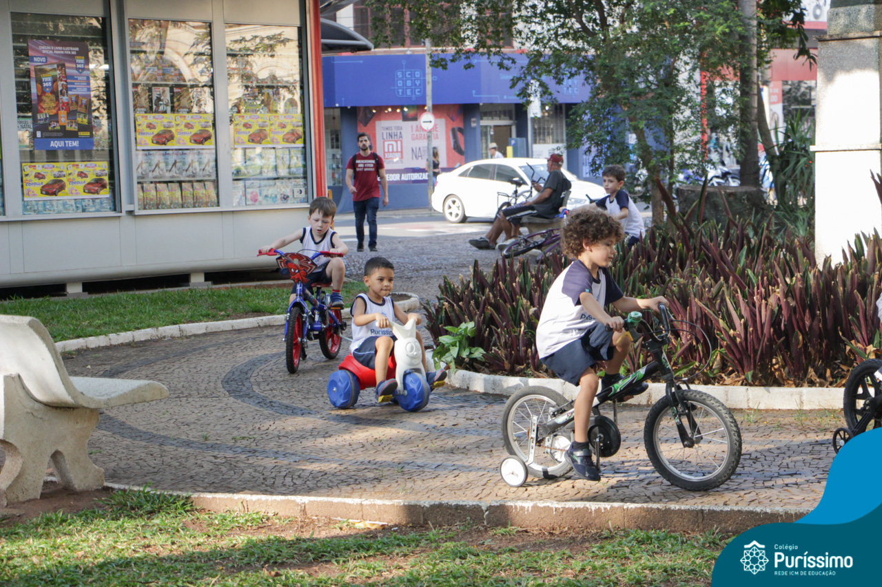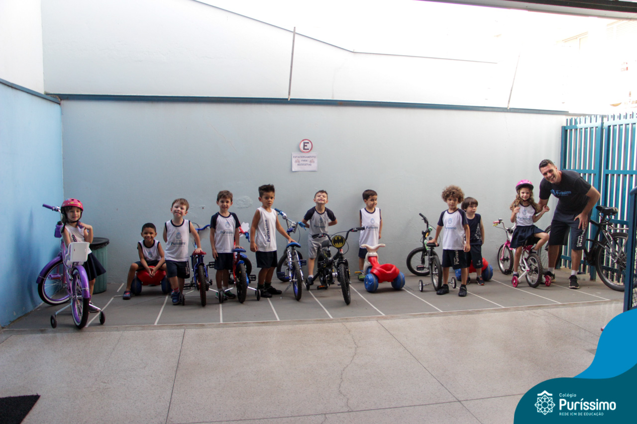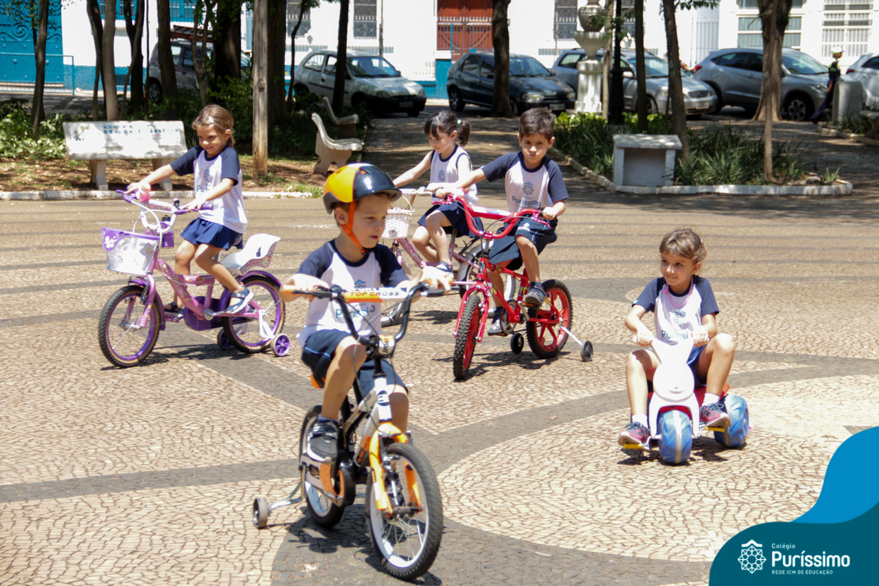 Na semana passada, os alunos do Pré N1, da manhã e da tarde, finalizaram o projeto sobre o trânsito. As crianças trouxeram as bicicletas para a escola e foram até a praça da liberdade para uma divertida e saudável aula. Após as voltas na praça, as crianças realizaram um circuito na quadra, observando as placas de sinalização, os pedestres e até o semáforo!