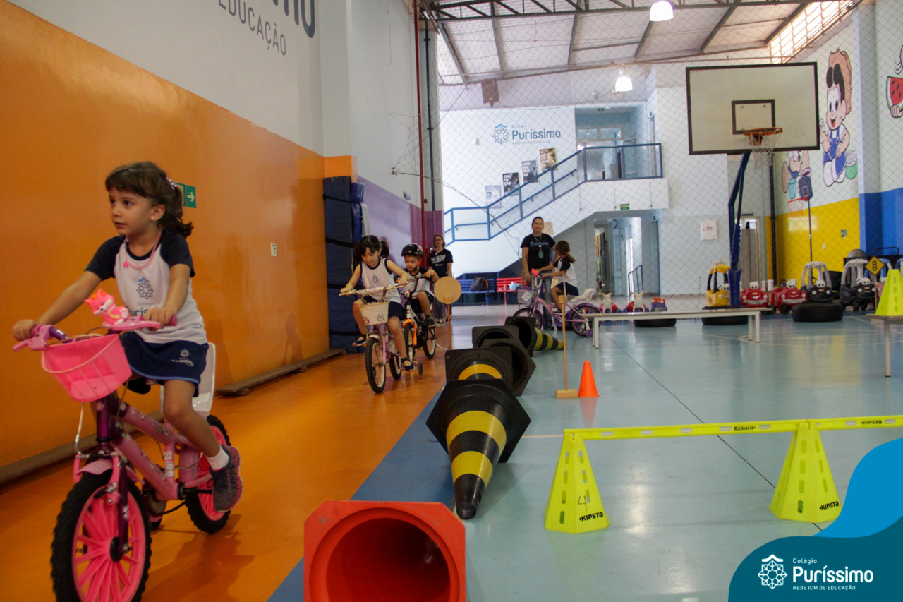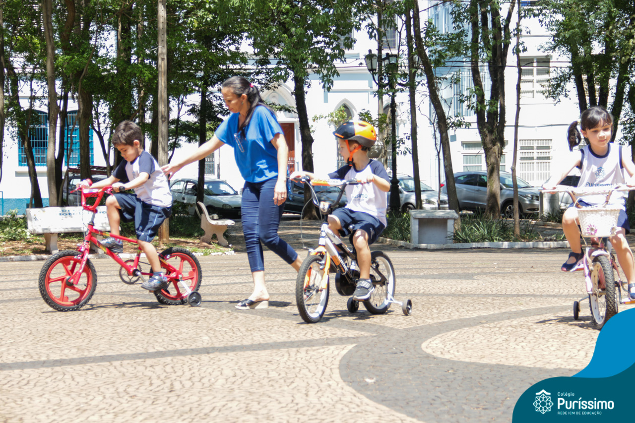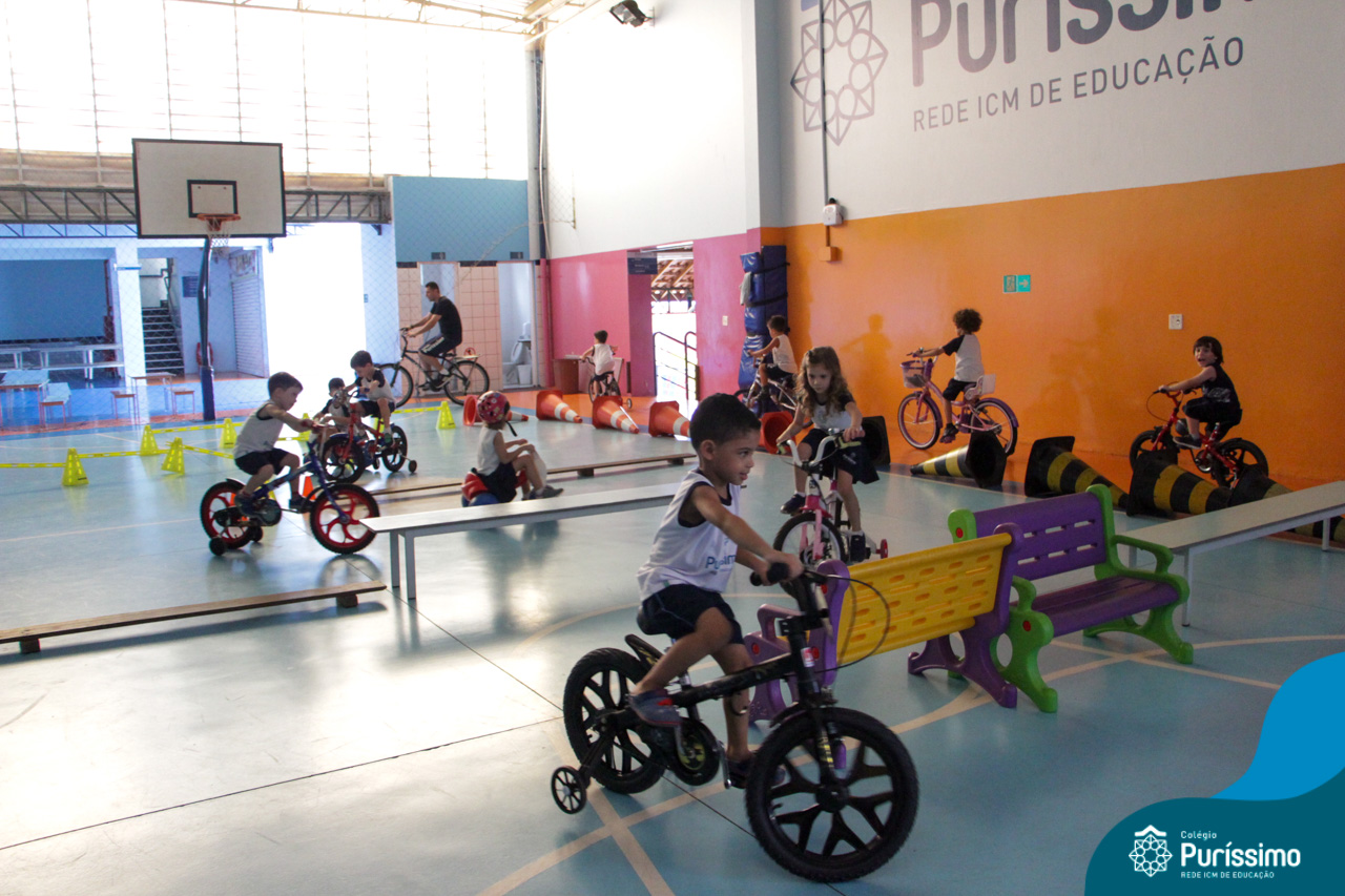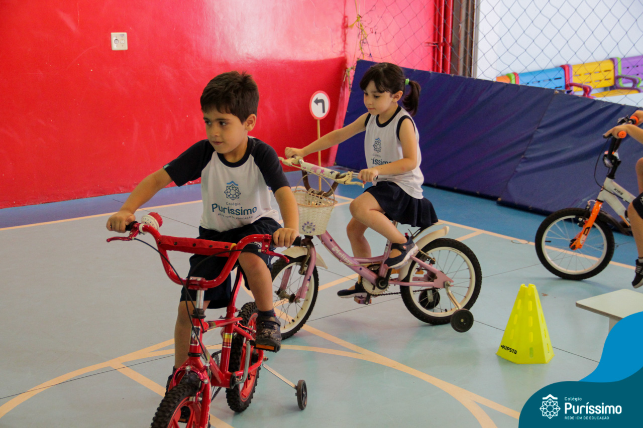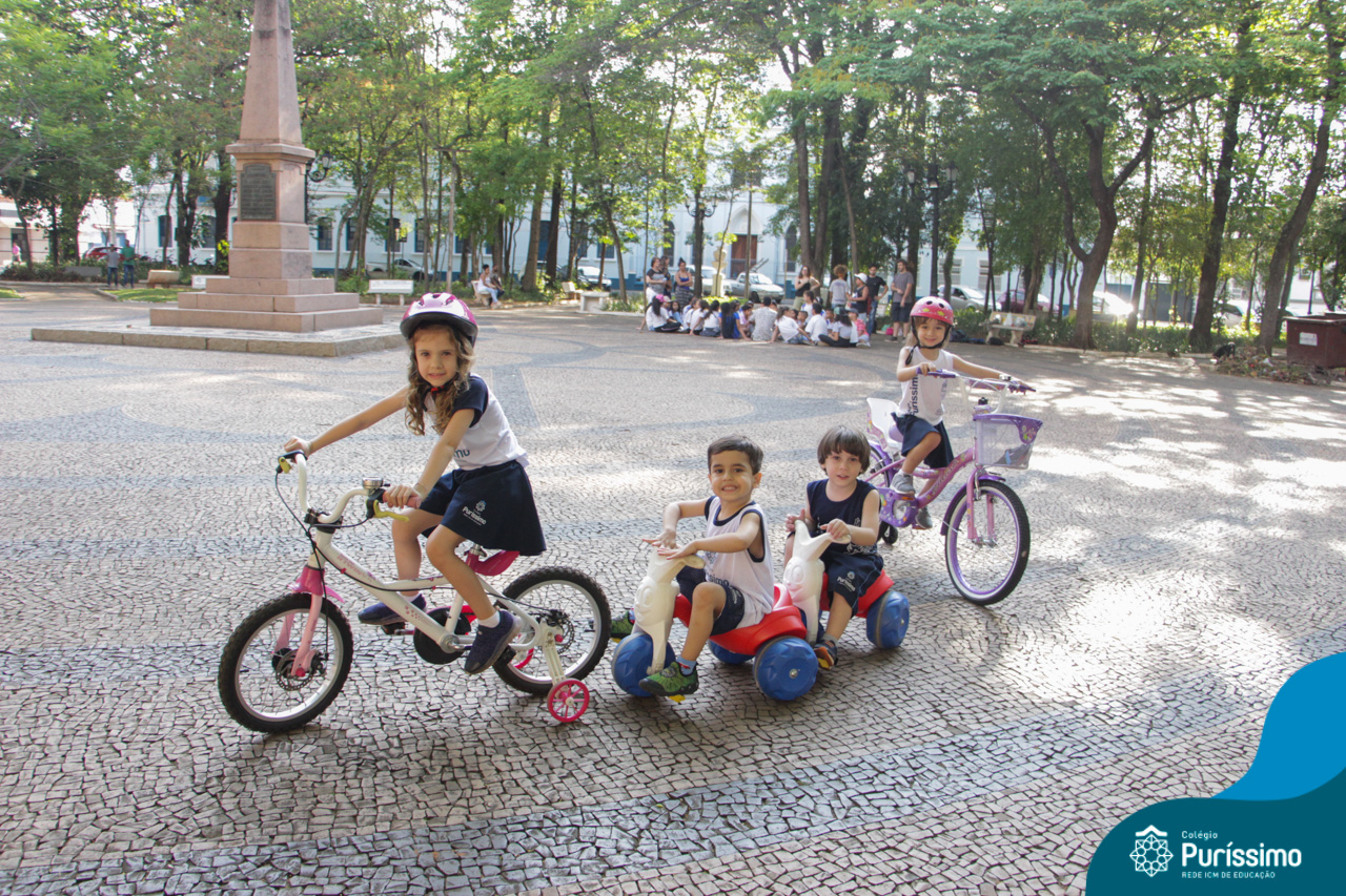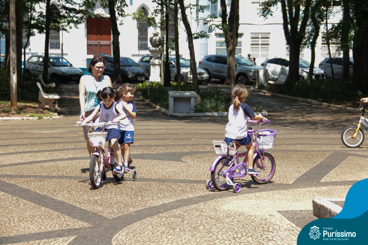 Na semana passada, os alunos do Pré N1, da manhã e da tarde, finalizaram o projeto sobre o trânsito. As crianças trouxeram as bicicletas para a escola e foram até a praça da liberdade para uma divertida e saudável aula. Após as voltas na praça, as crianças realizaram um circuito na quadra, observando as placas de sinalização, os pedestres e até o semáforo!