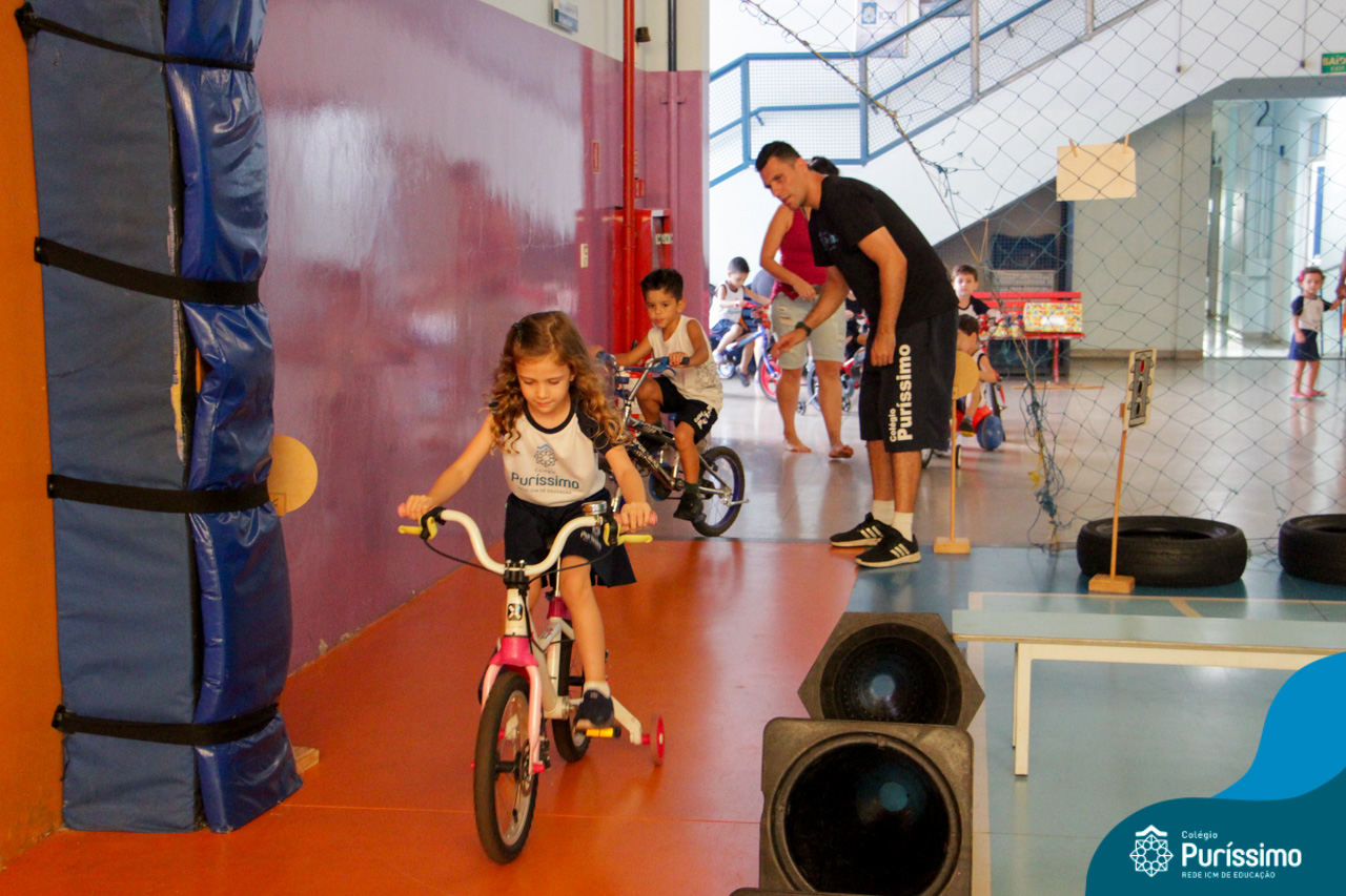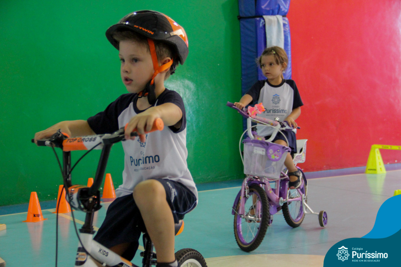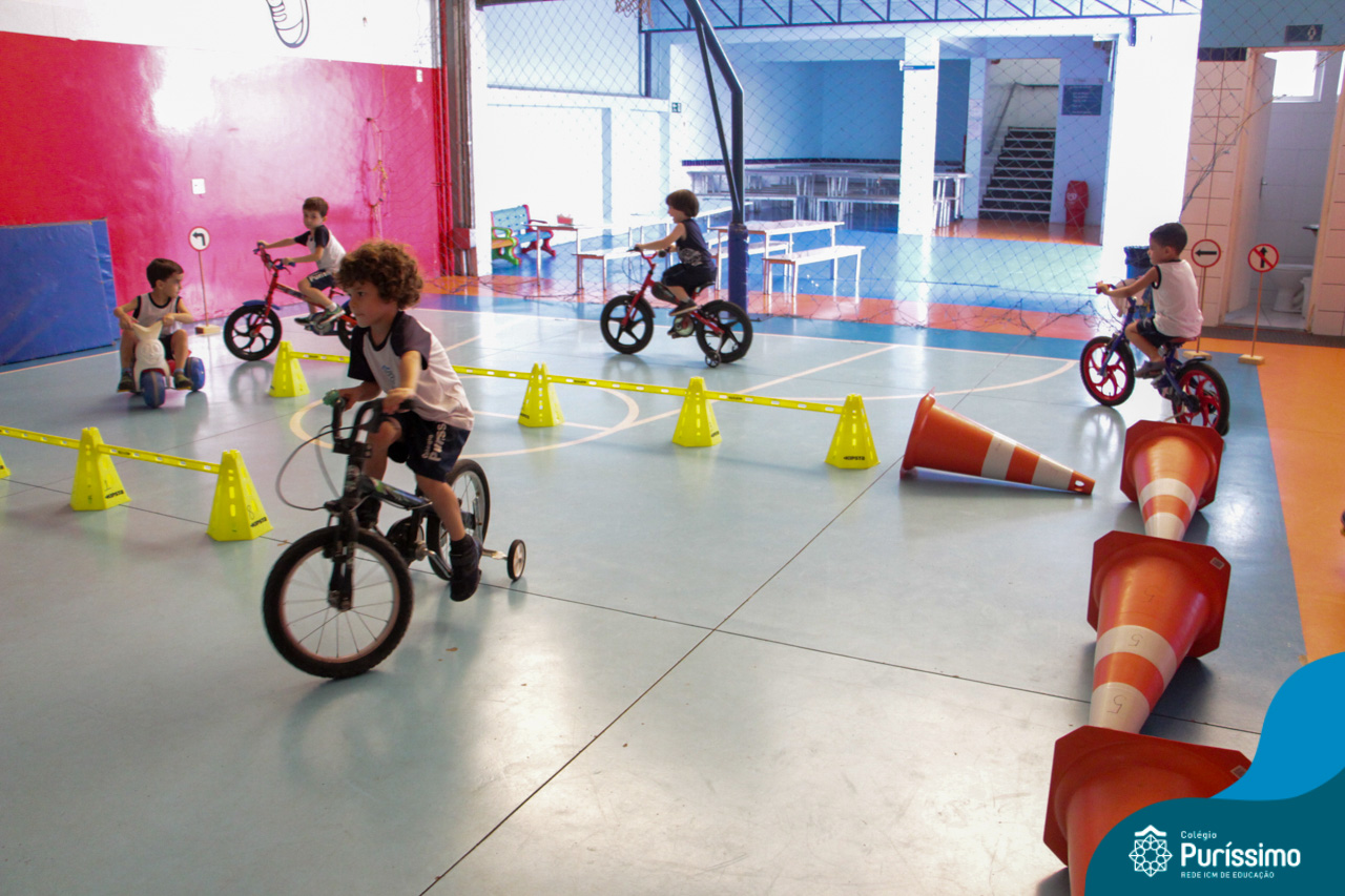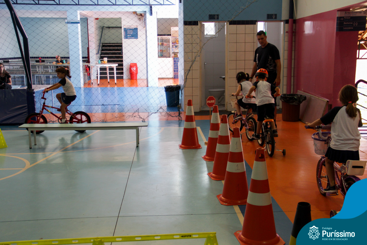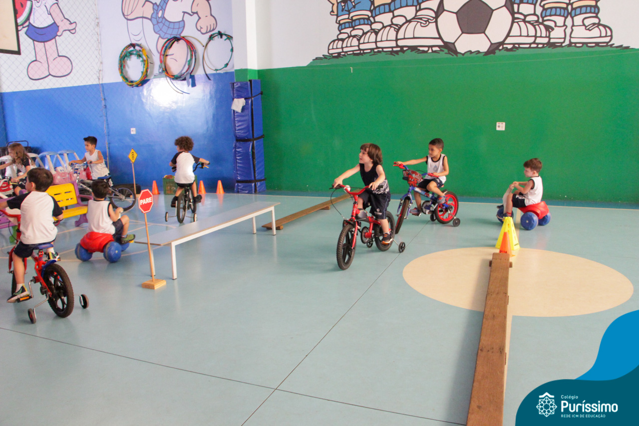 Na semana passada, os alunos do Pré N1, da manhã e da tarde, finalizaram o projeto sobre o trânsito. As crianças trouxeram as bicicletas para a escola e foram até a praça da liberdade para uma divertida e saudável aula. Após as voltas na praça, as crianças realizaram um circuito na quadra, observando as placas de sinalização, os pedestres e até o semáforo!