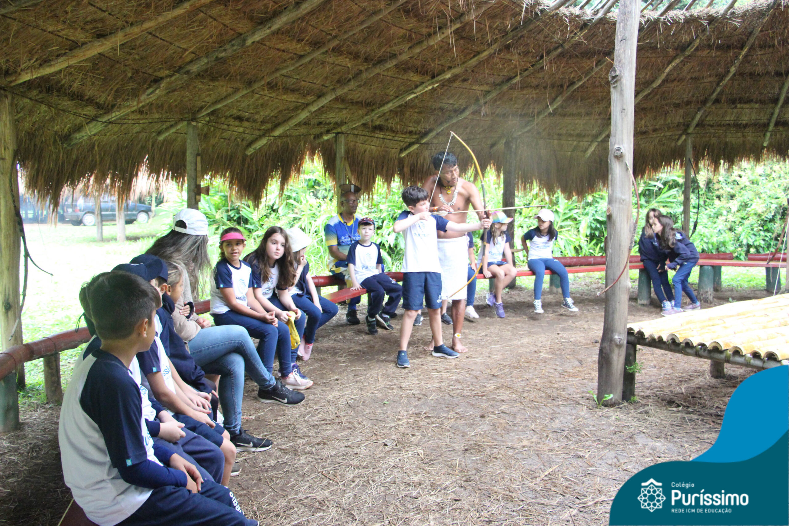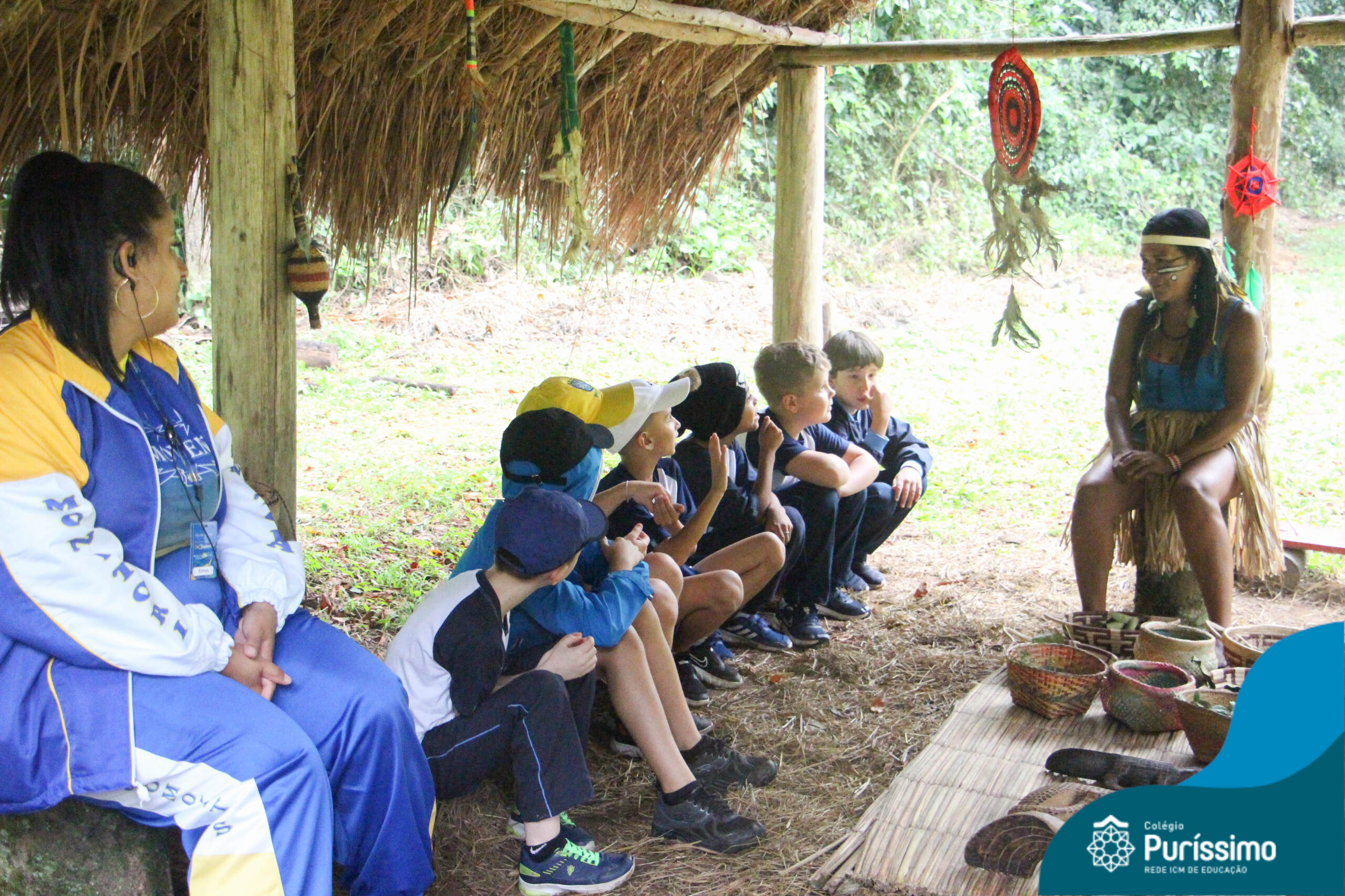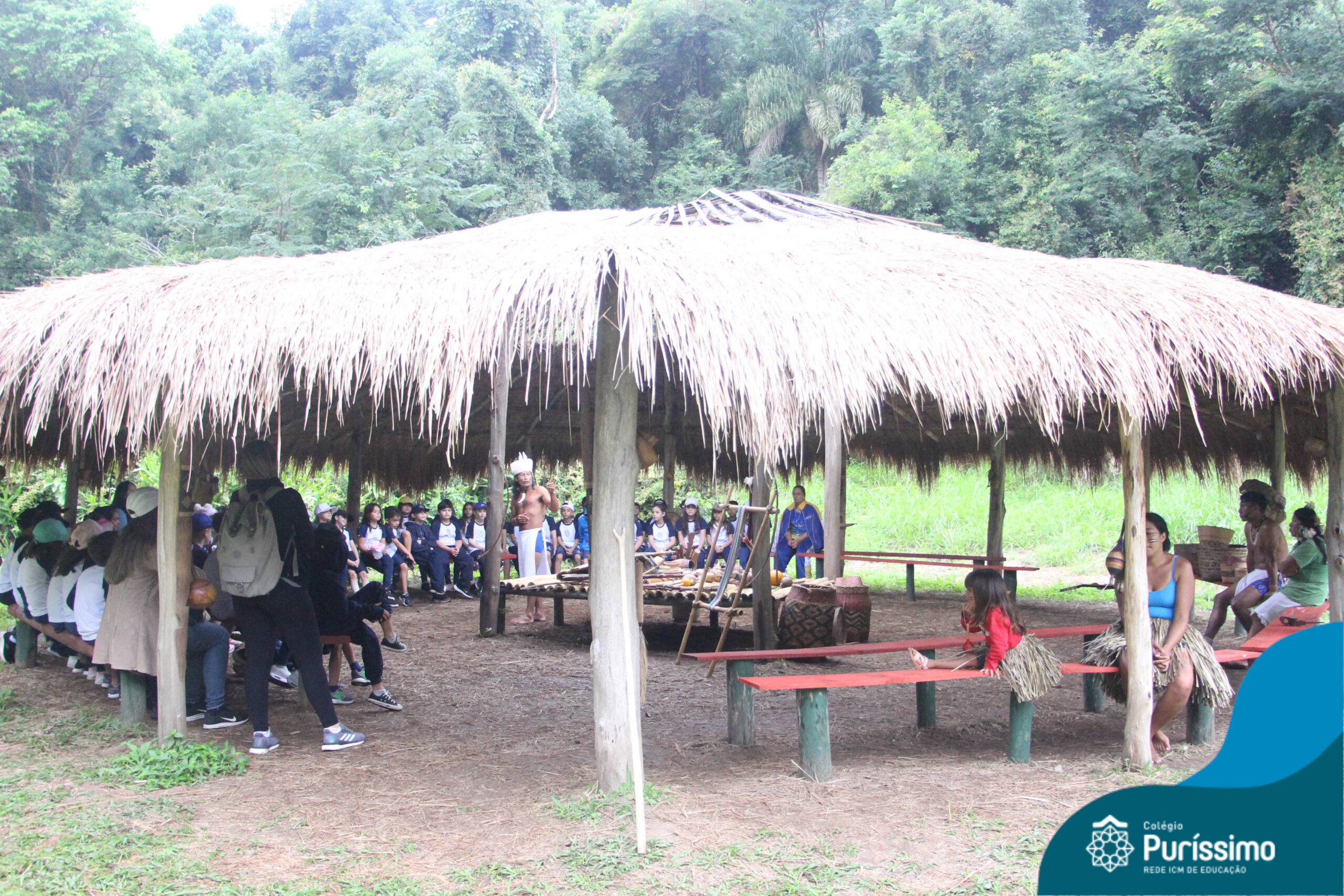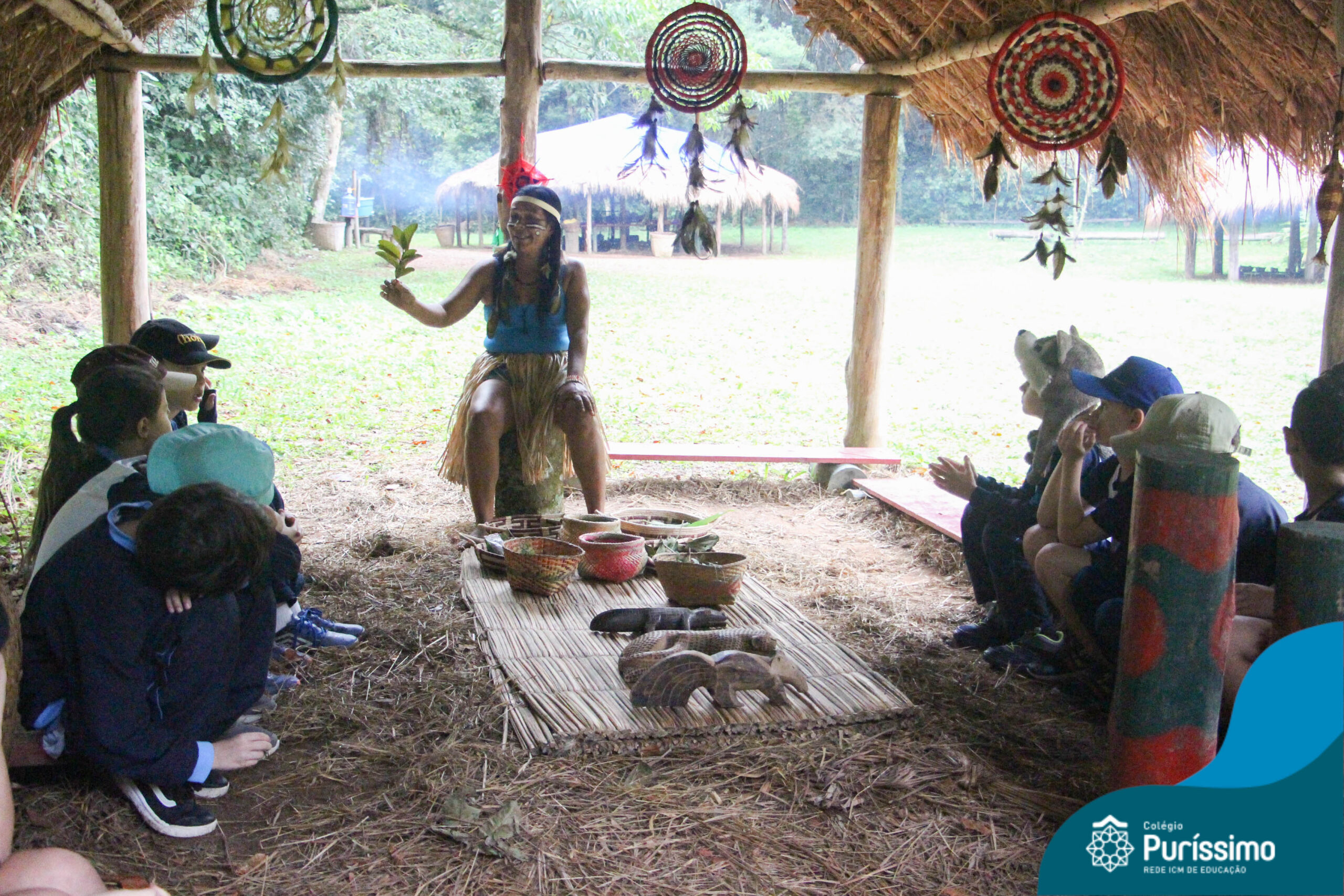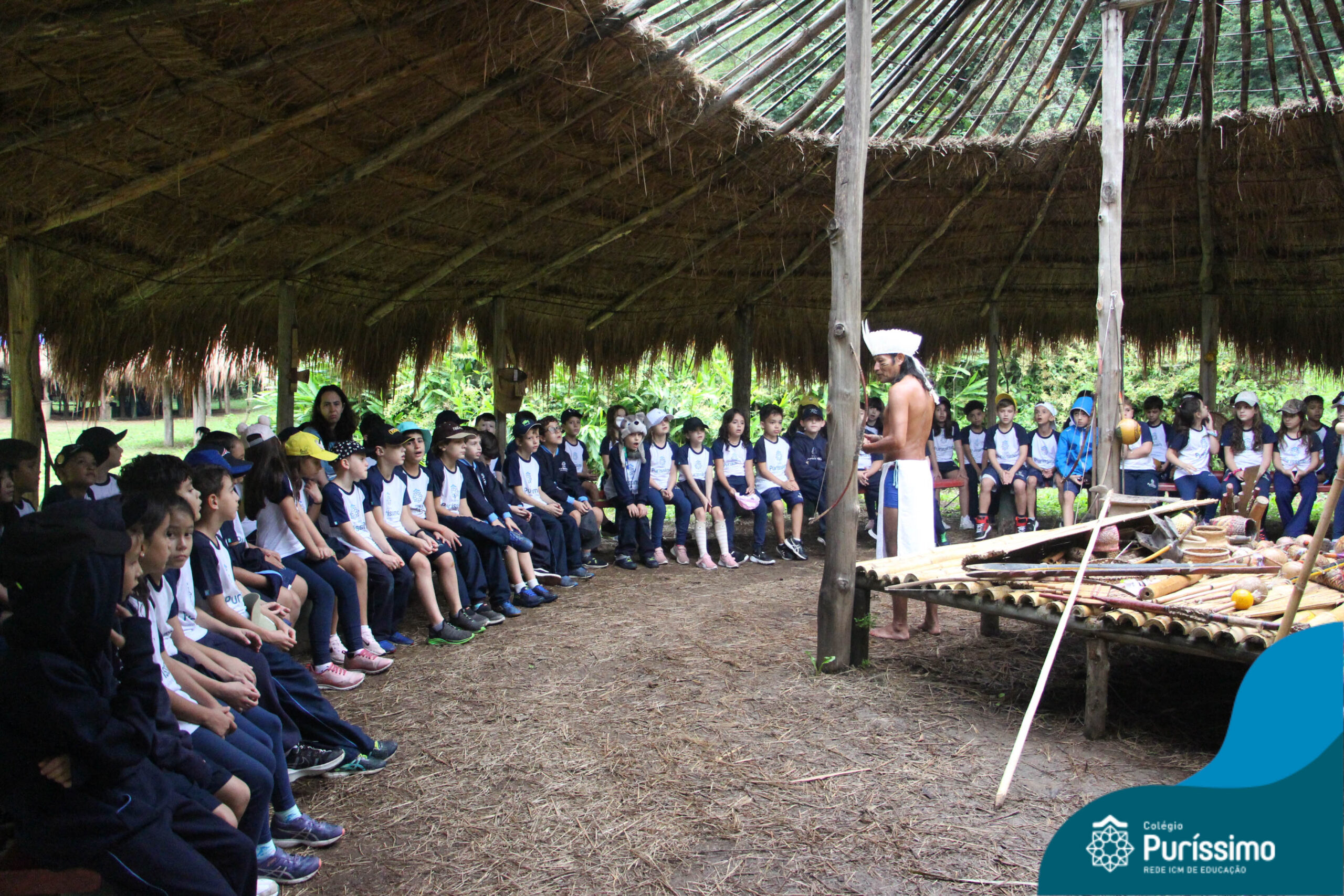Os estudantes tiveram a oportunidade de conhecer o Sítio do Sol e passar um dia em uma verdadeira aldeia indígena.