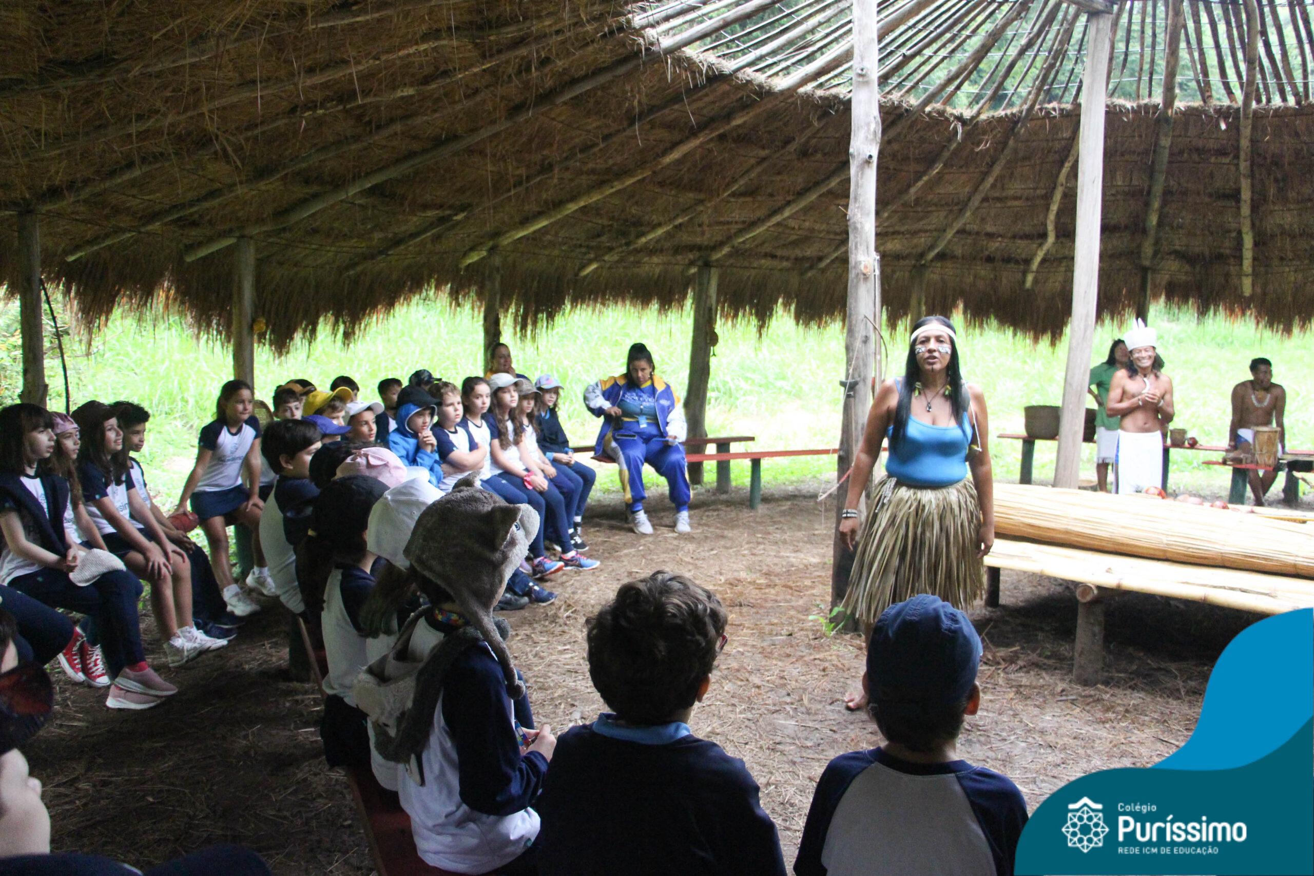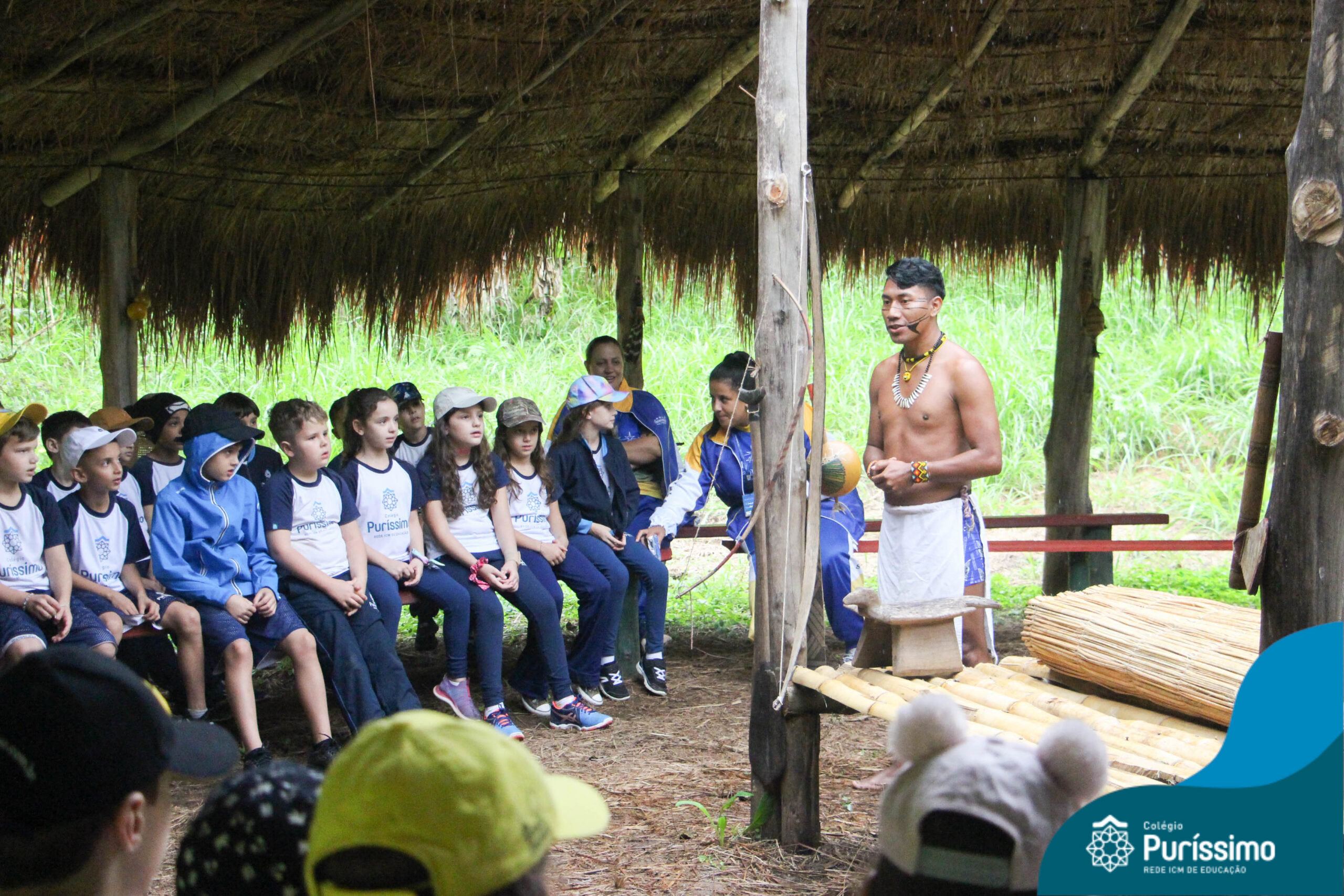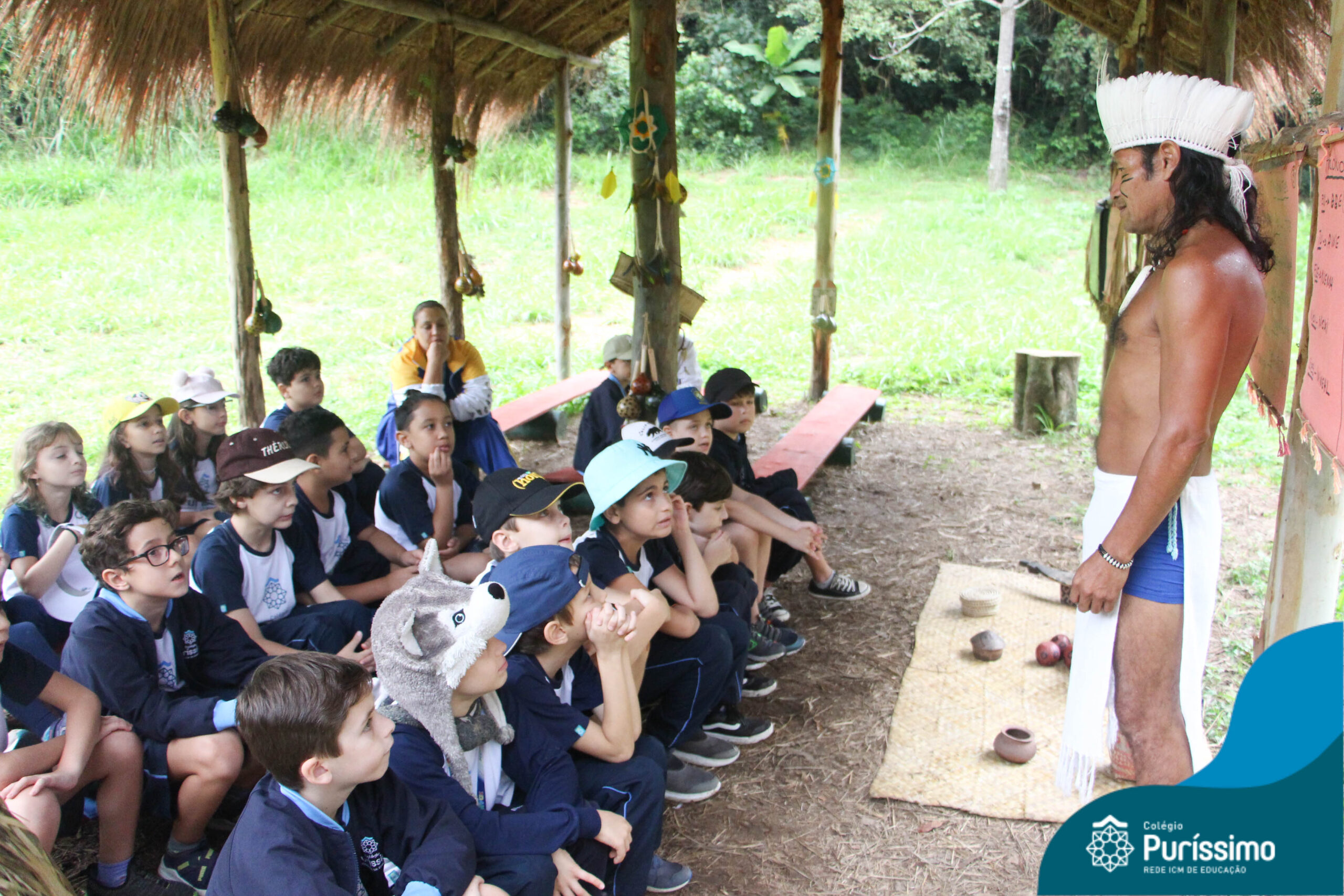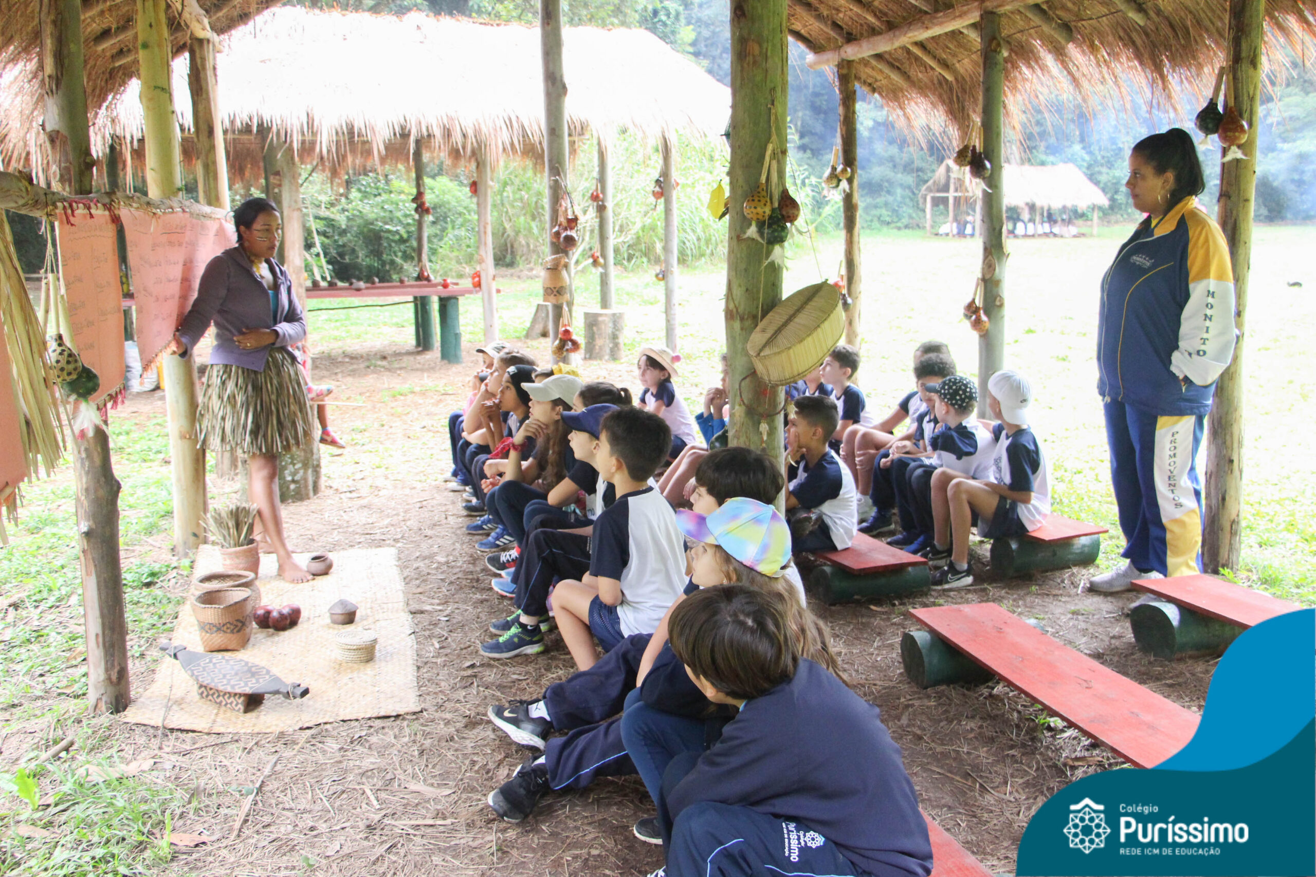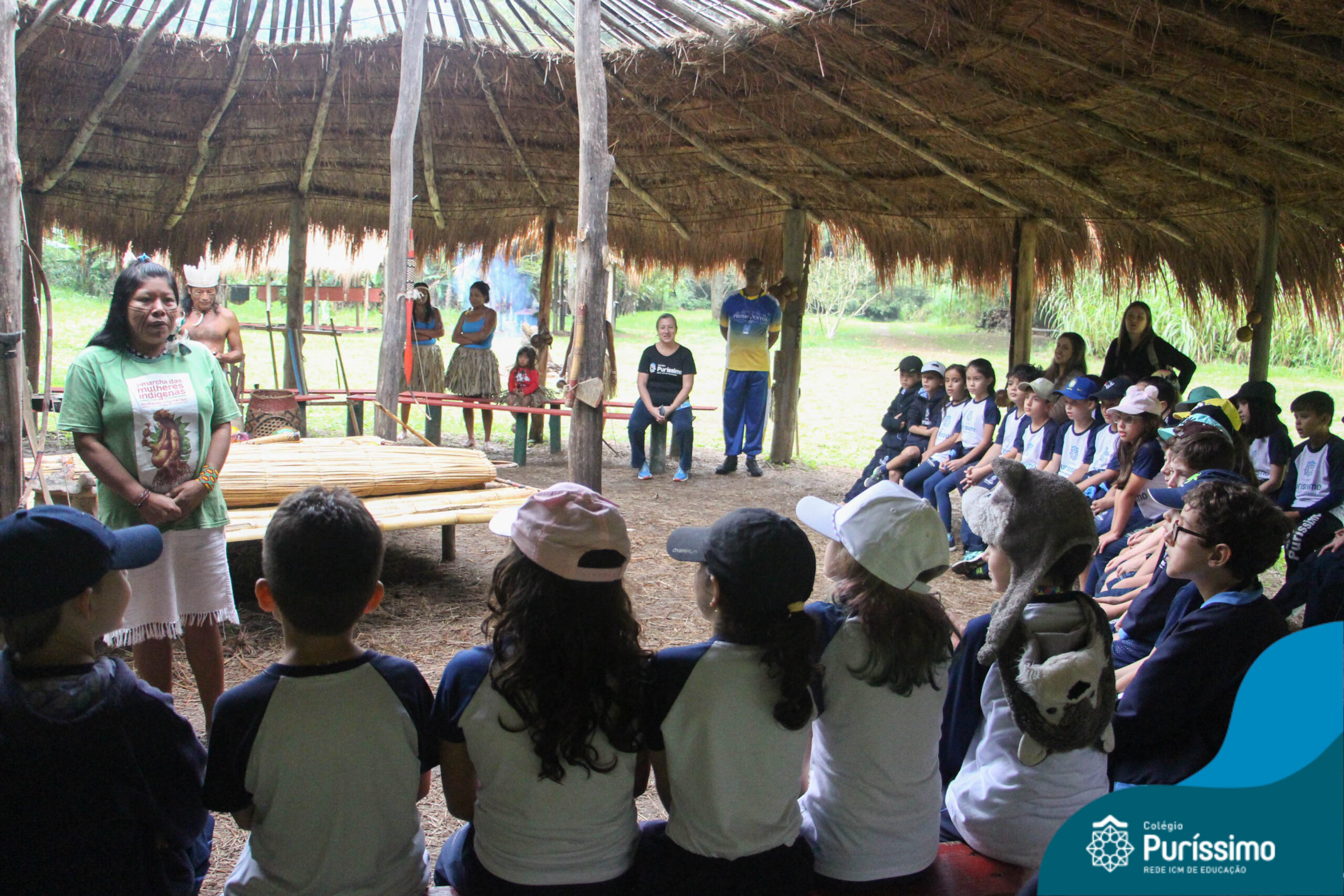 Os estudantes tiveram a oportunidade de conhecer o Sítio do Sol e passar um dia em uma verdadeira aldeia indígena.