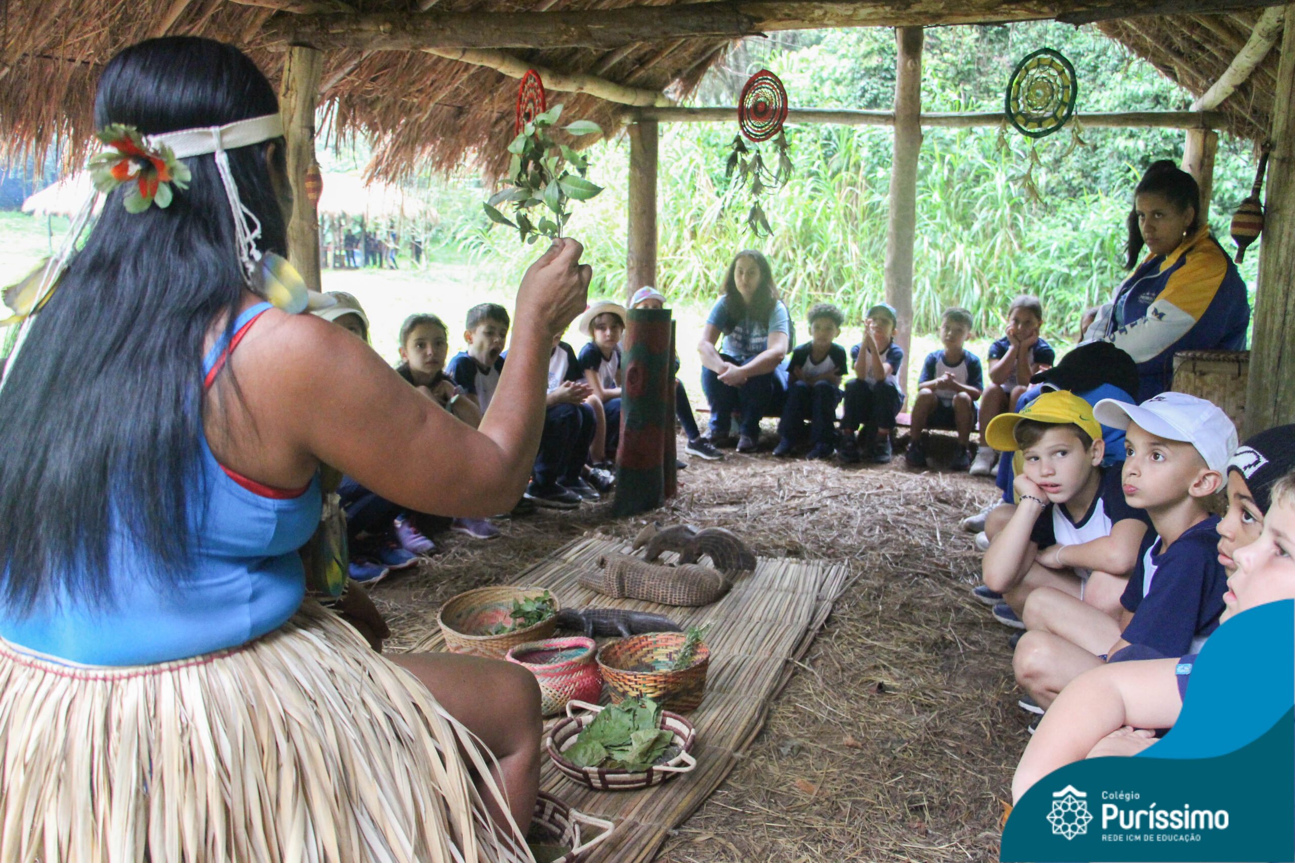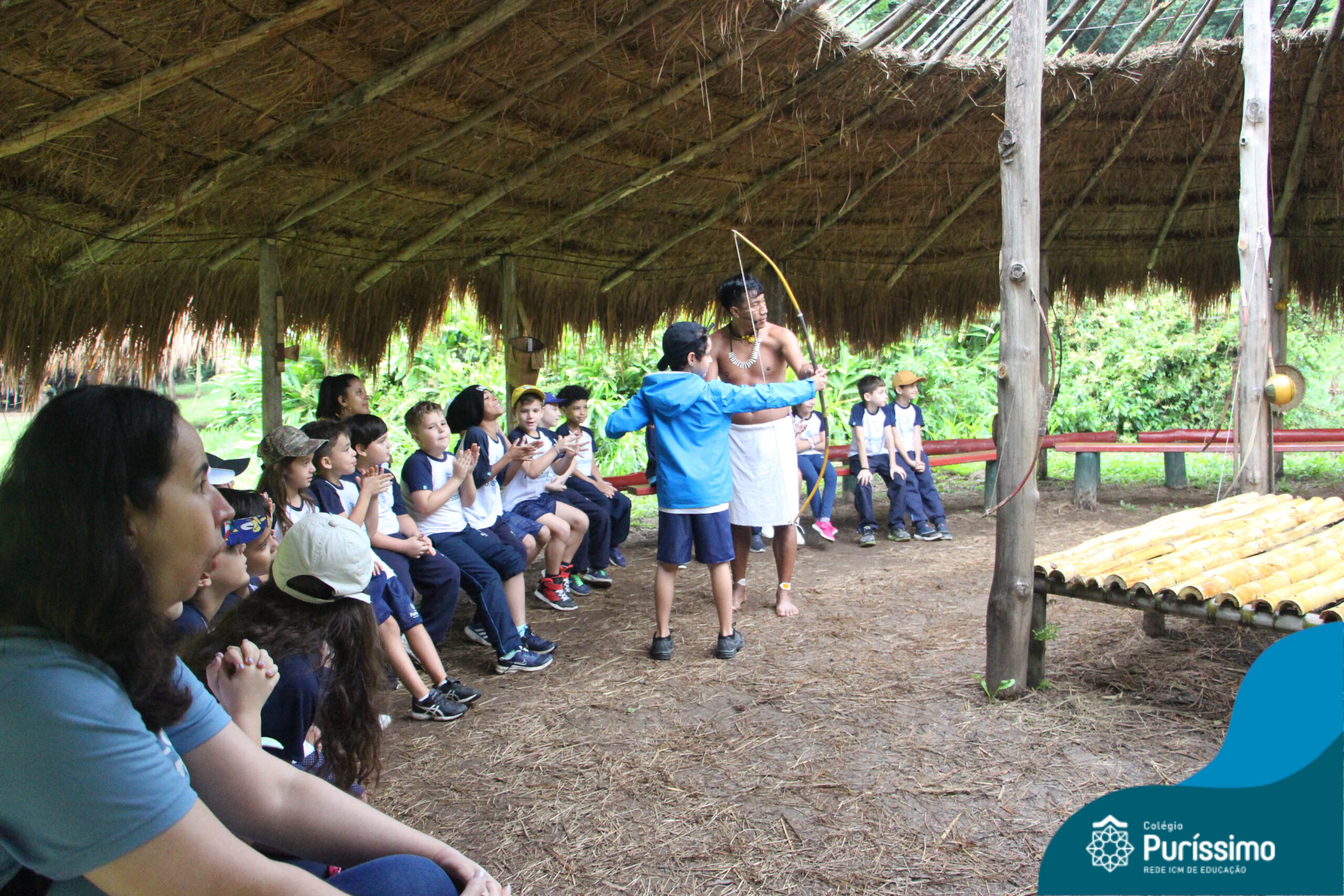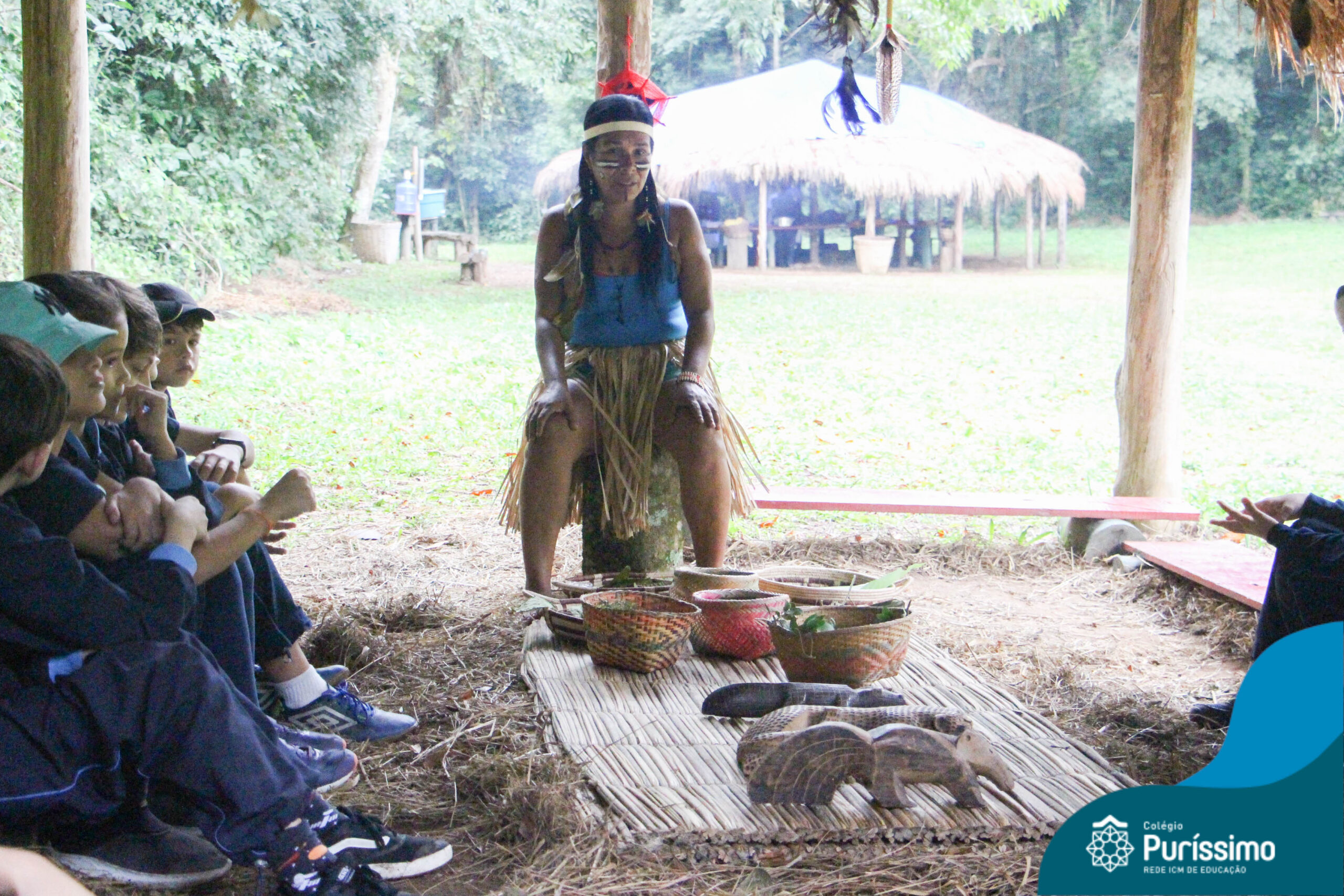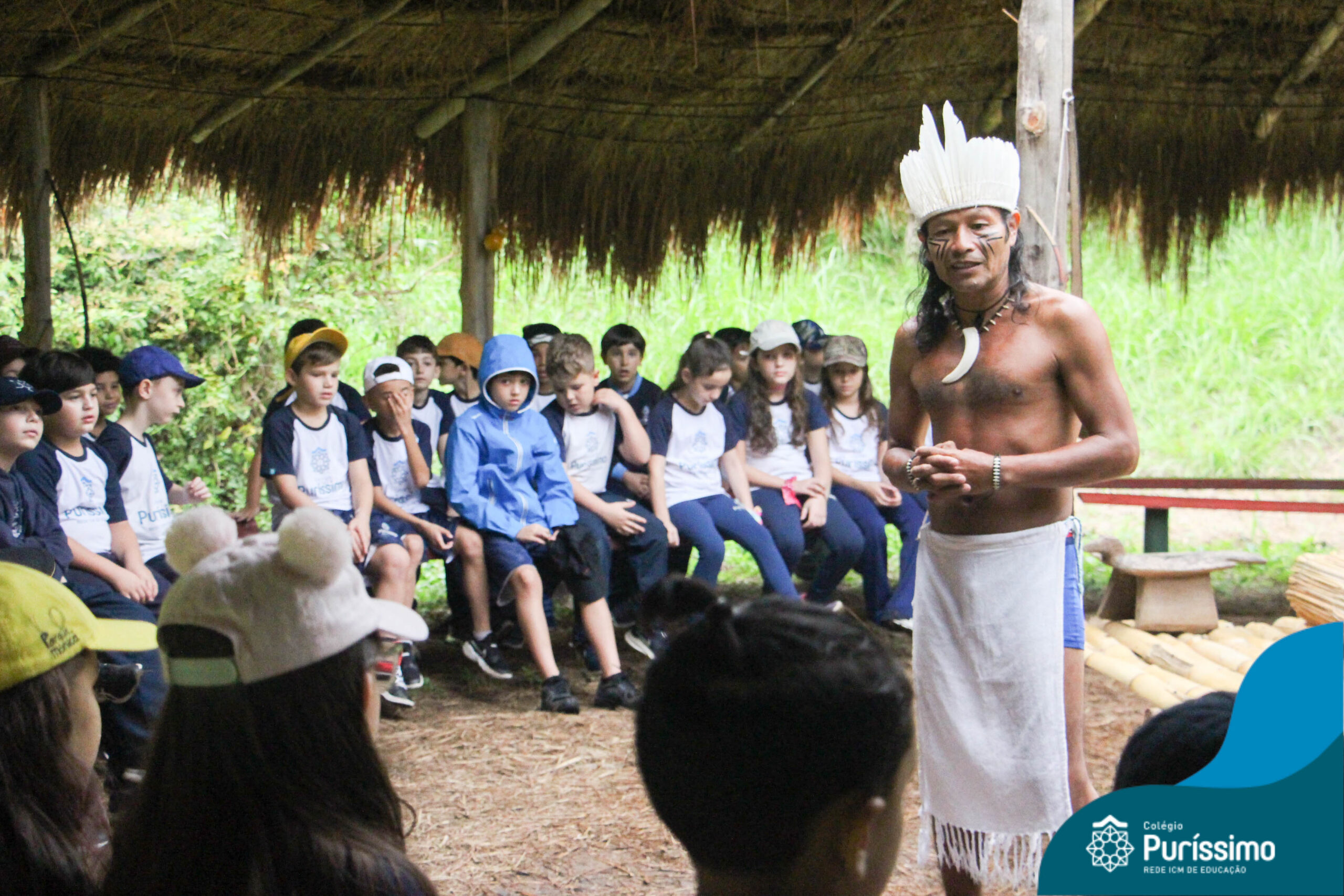 Os estudantes tiveram a oportunidade de conhecer o Sítio do Sol e passar um dia em uma verdadeira aldeia indígena.