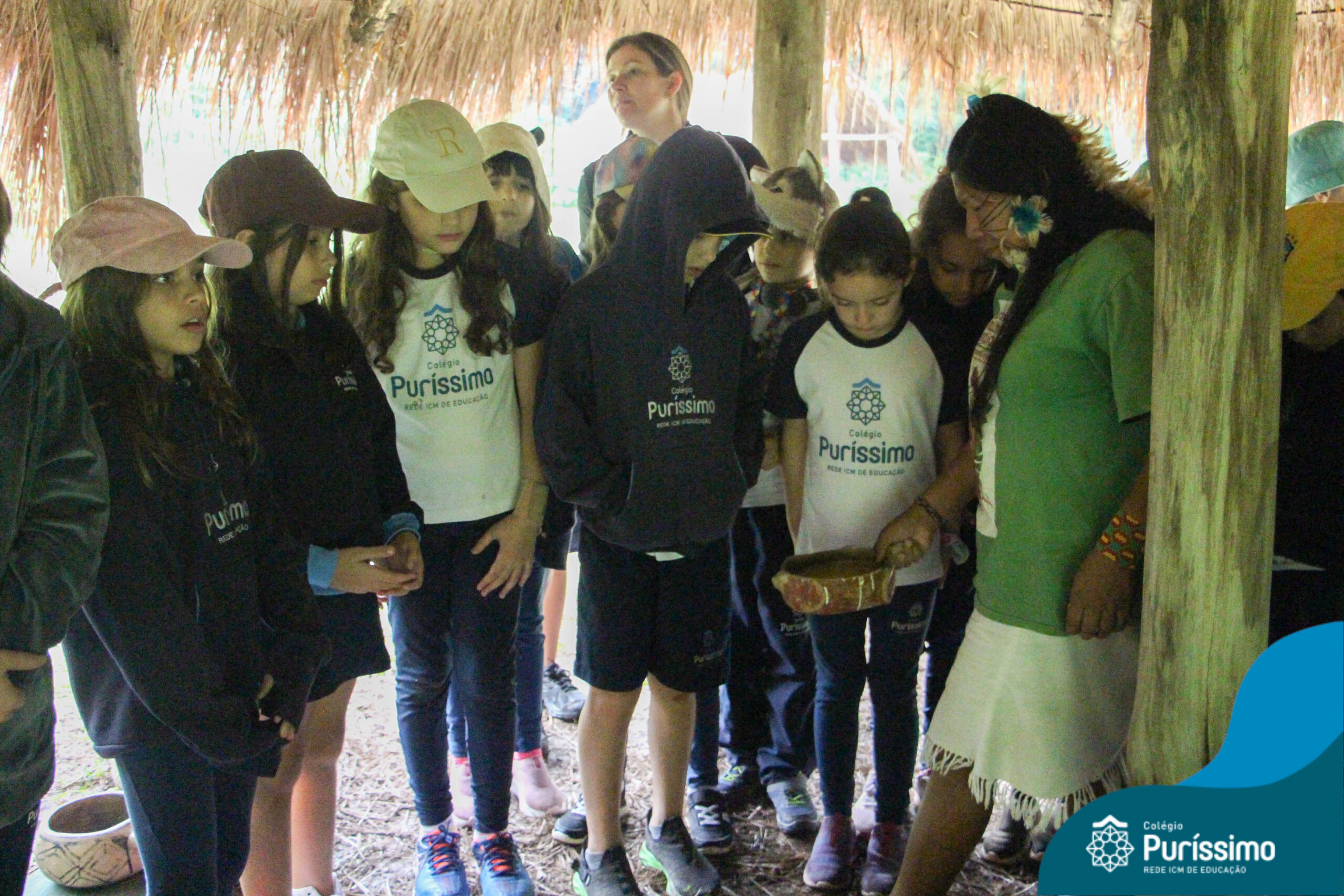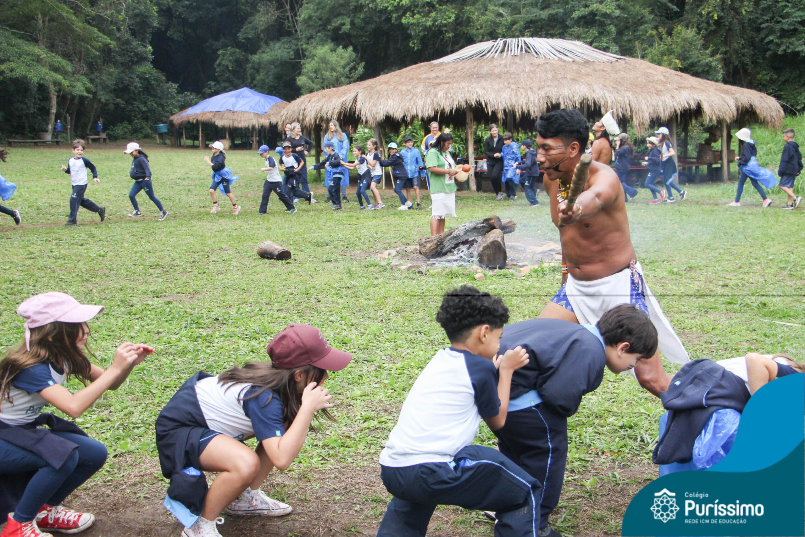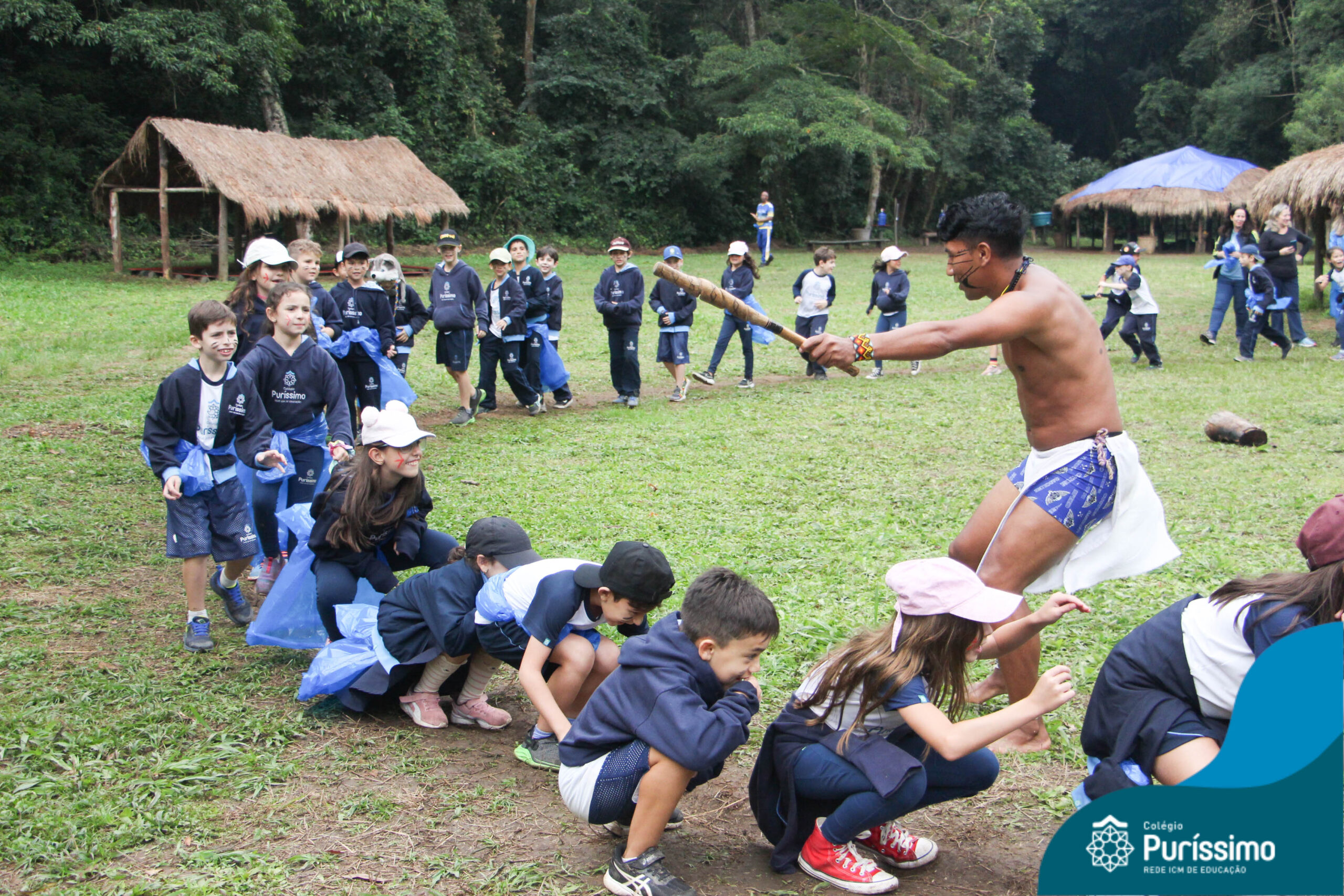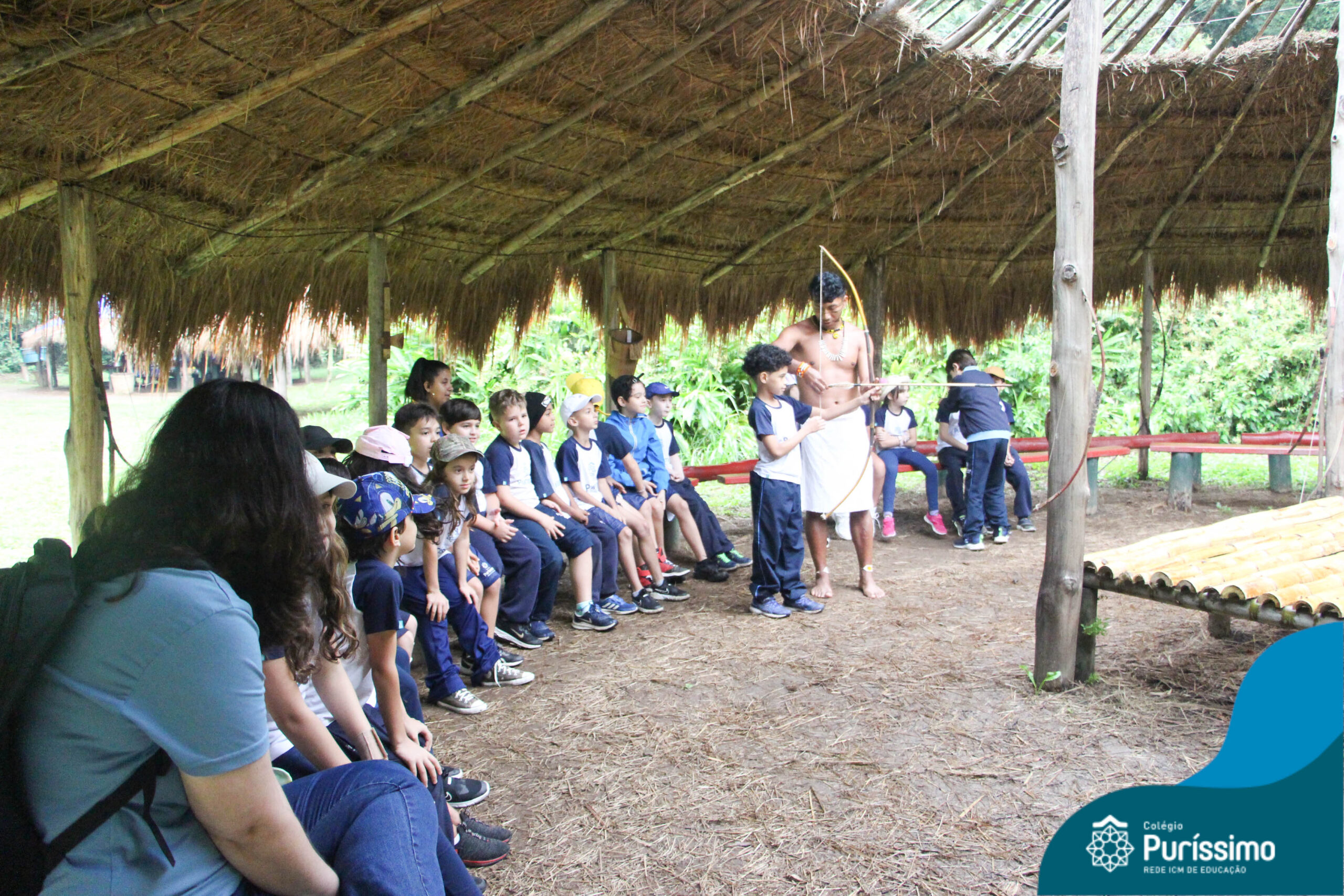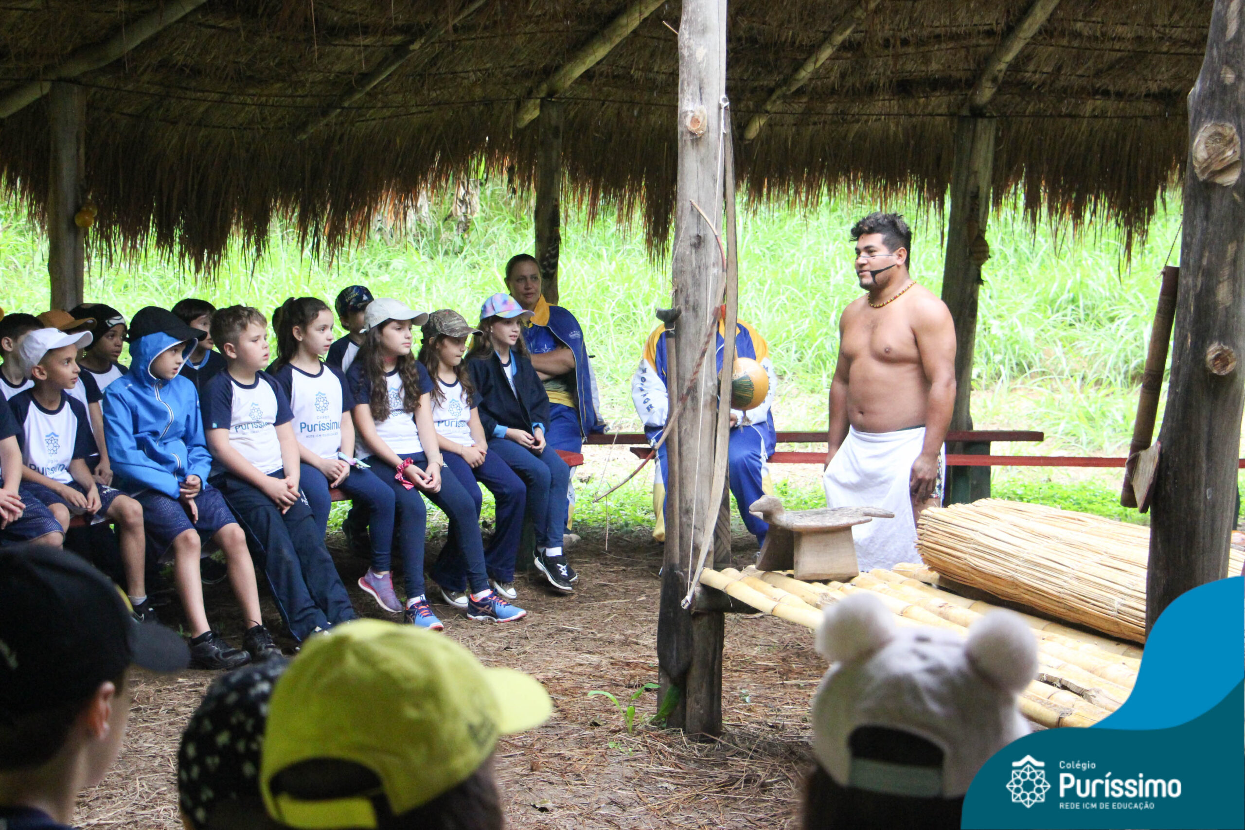 Os estudantes tiveram a oportunidade de conhecer o Sítio do Sol e passar um dia em uma verdadeira aldeia indígena.