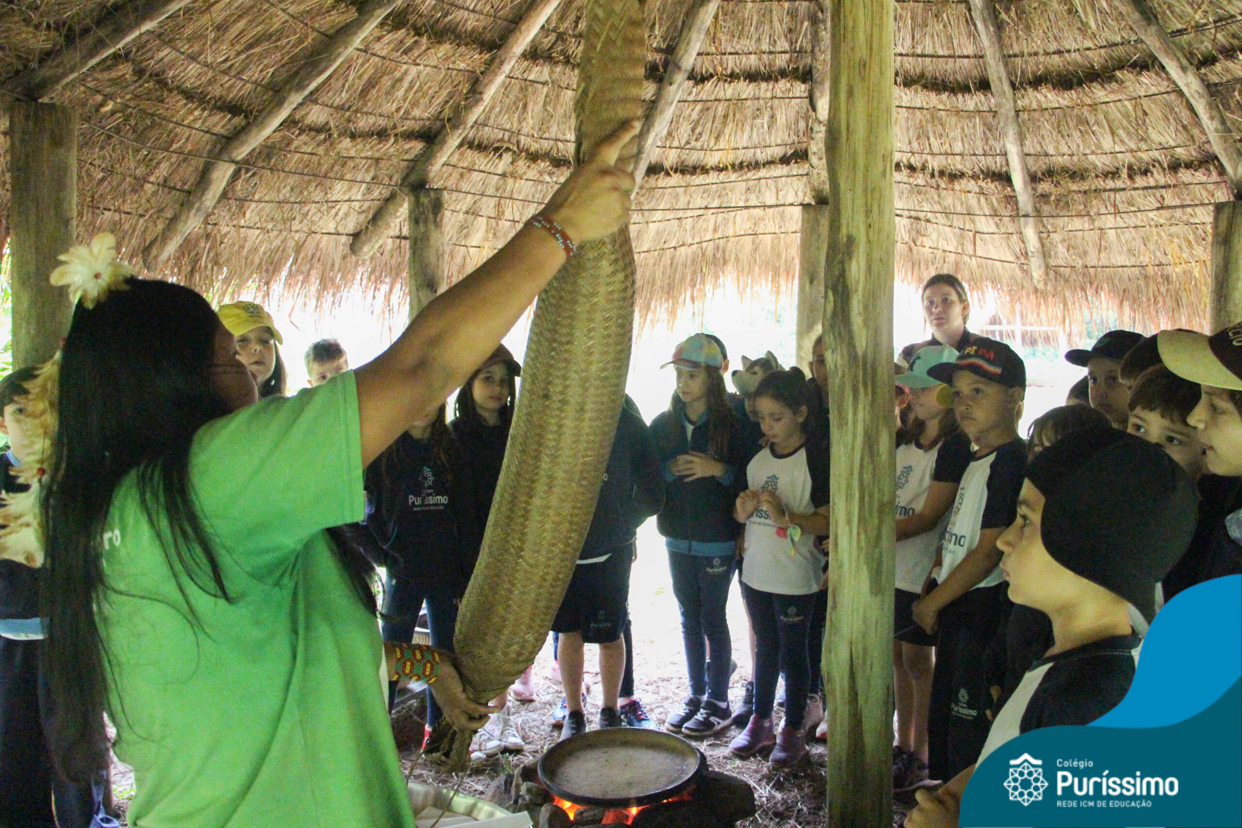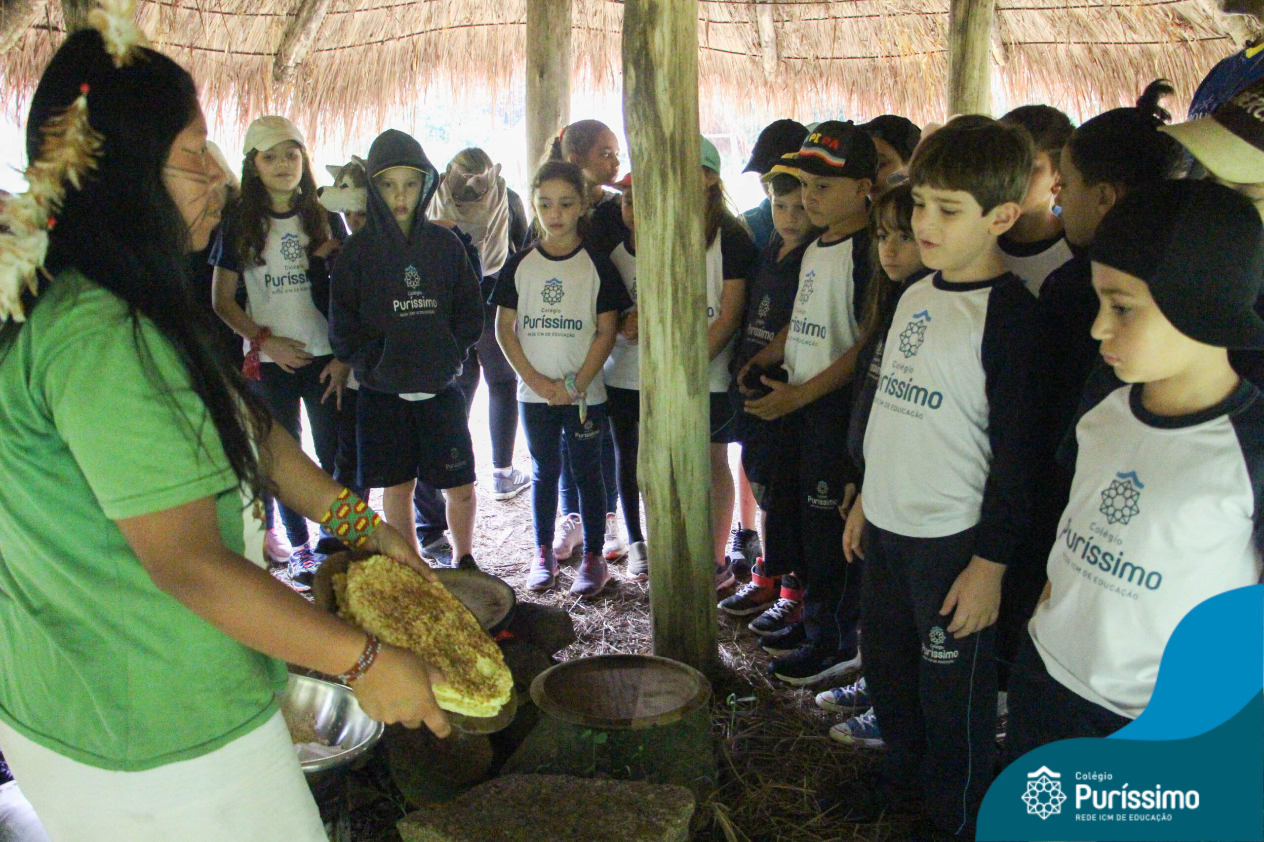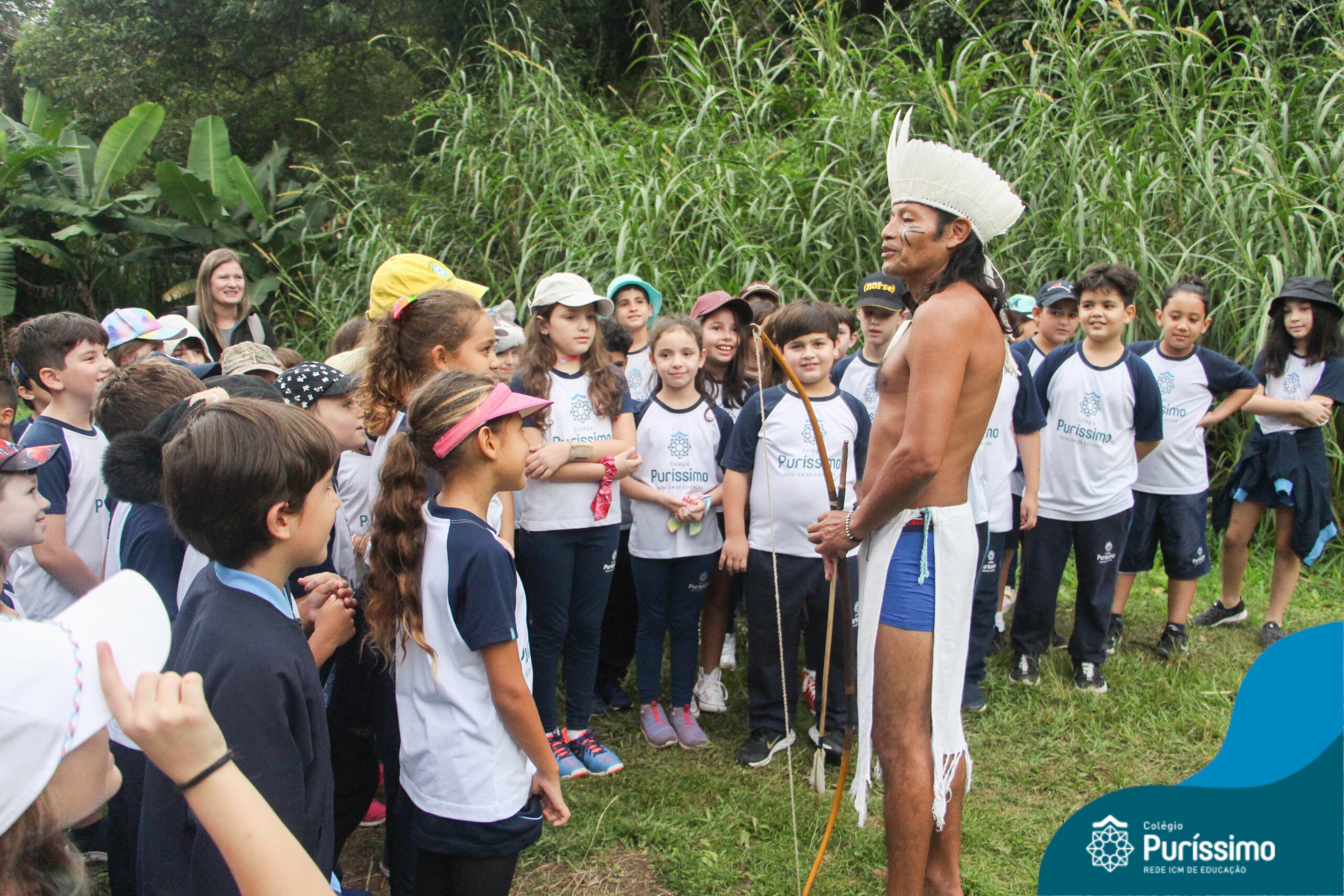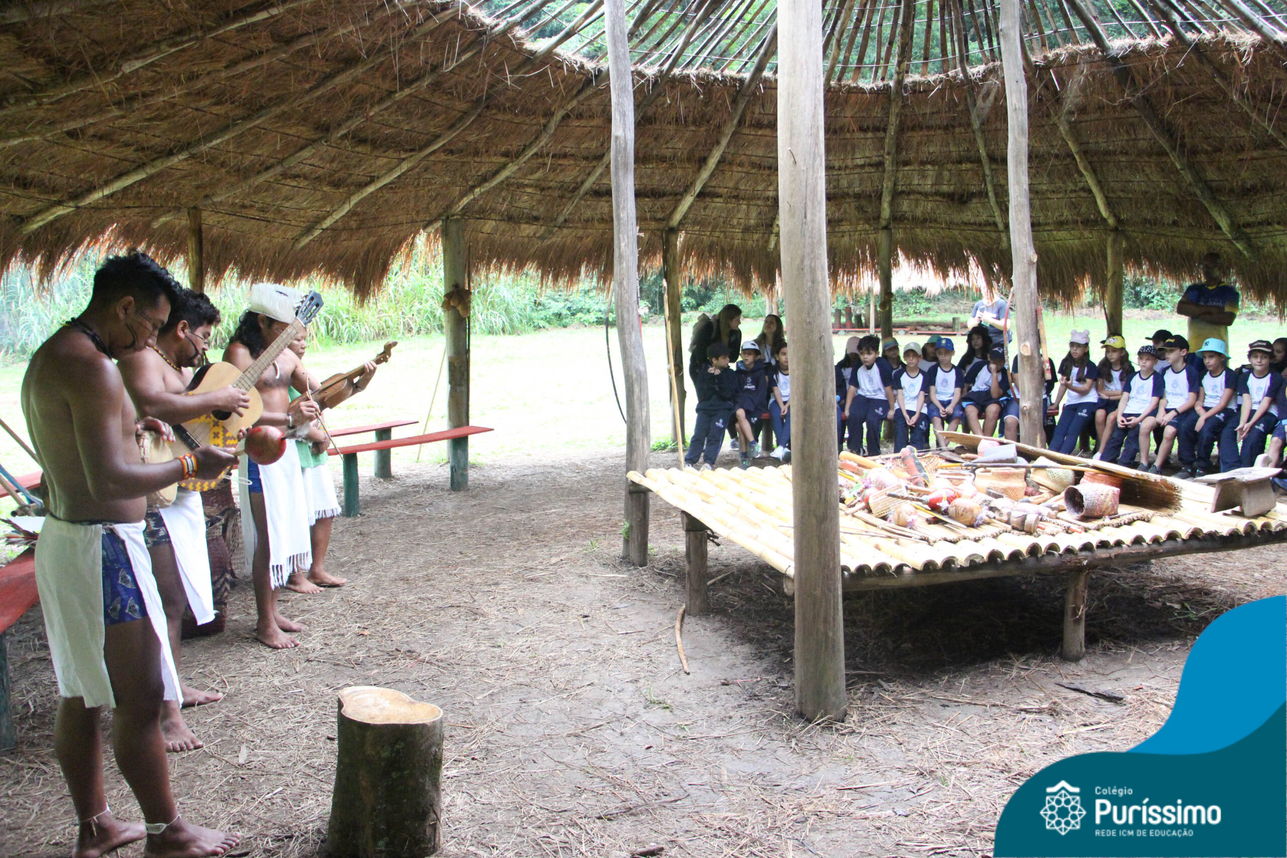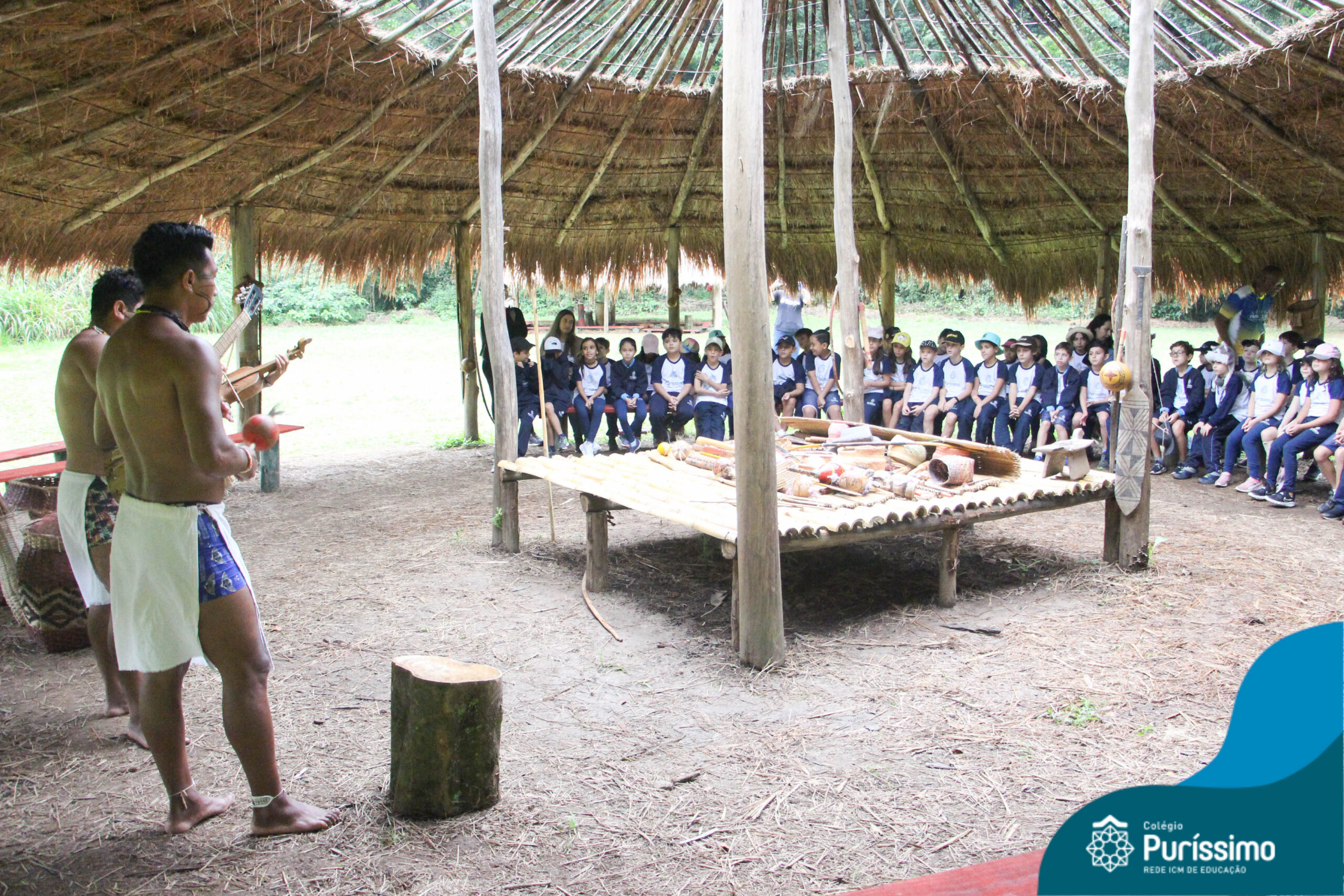 Os estudantes tiveram a oportunidade de conhecer o Sítio do Sol e passar um dia em uma verdadeira aldeia indígena.