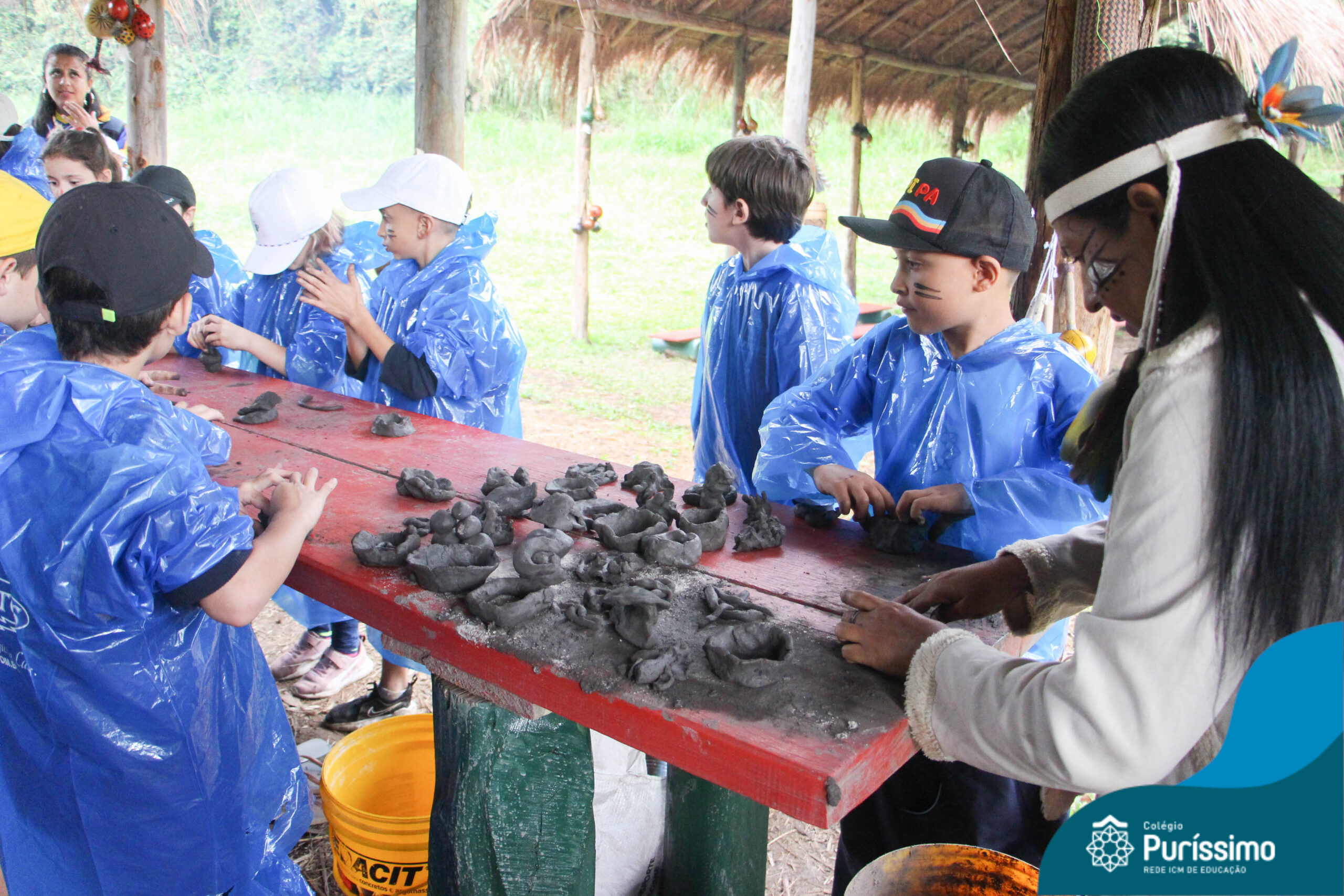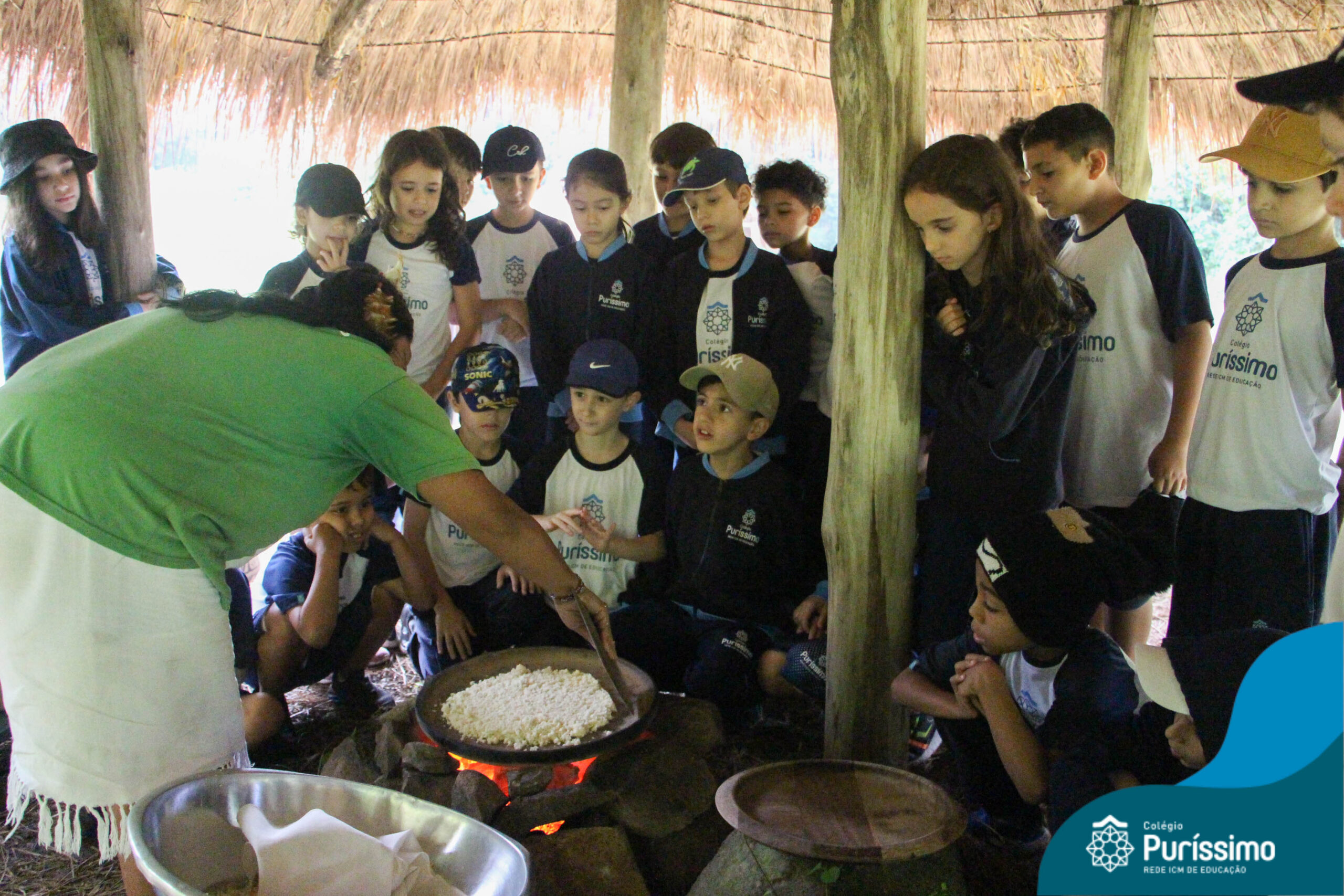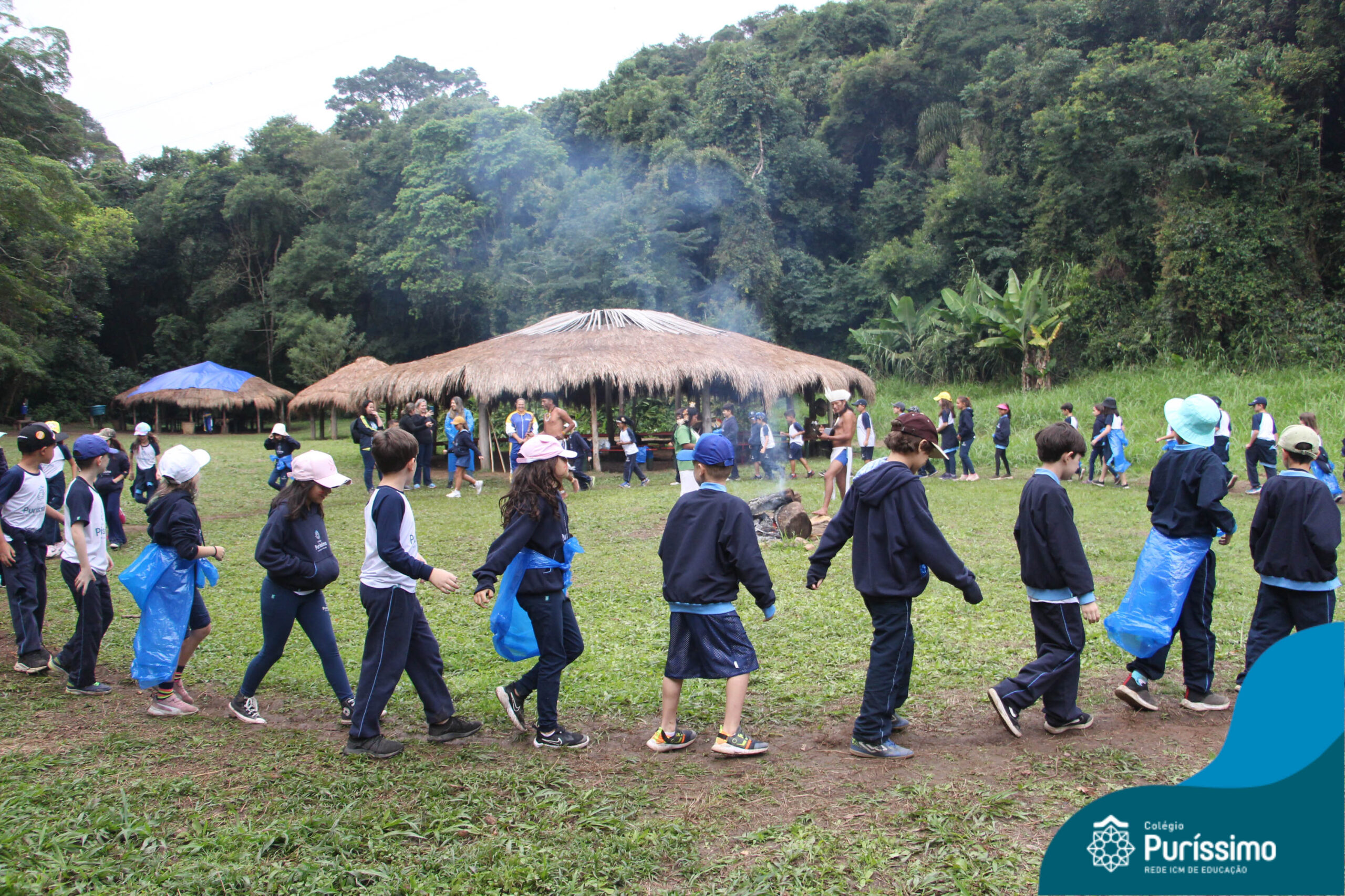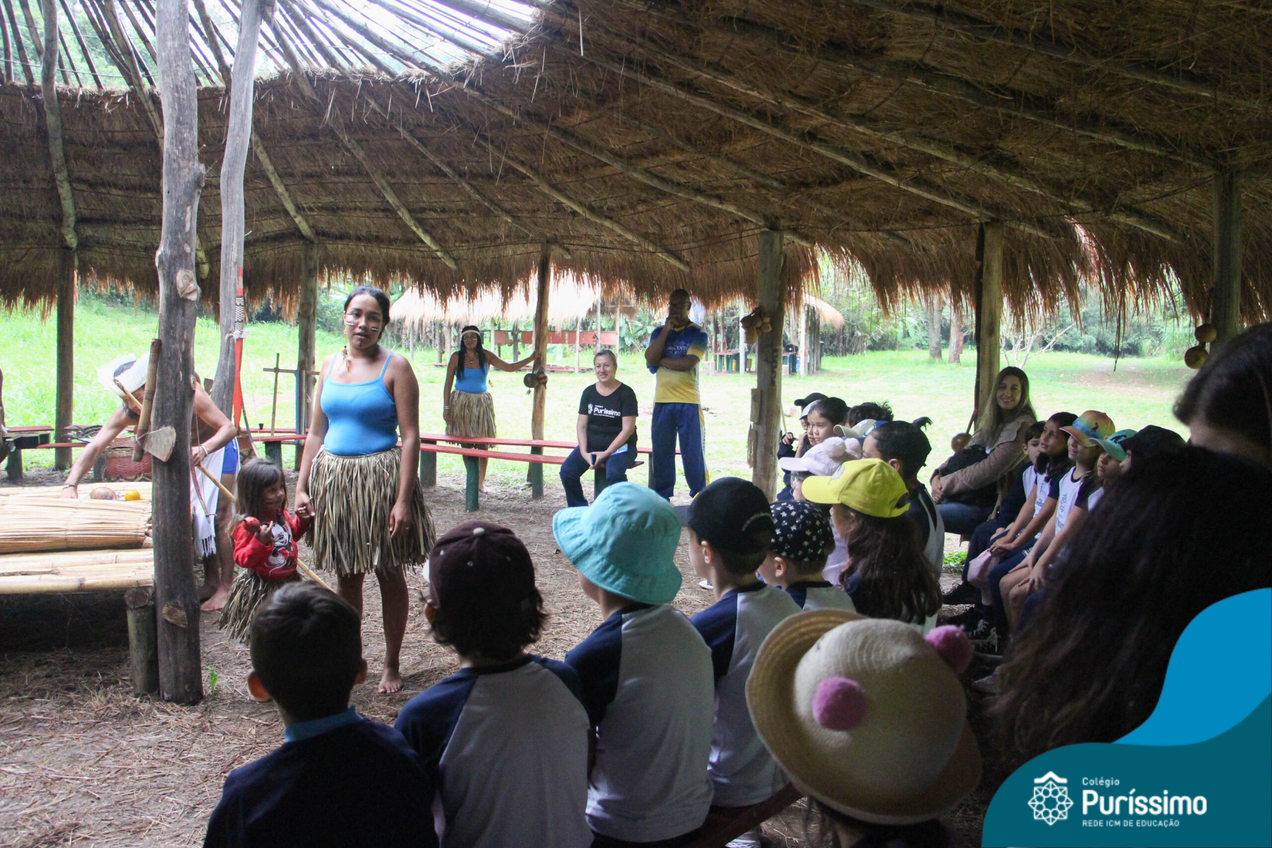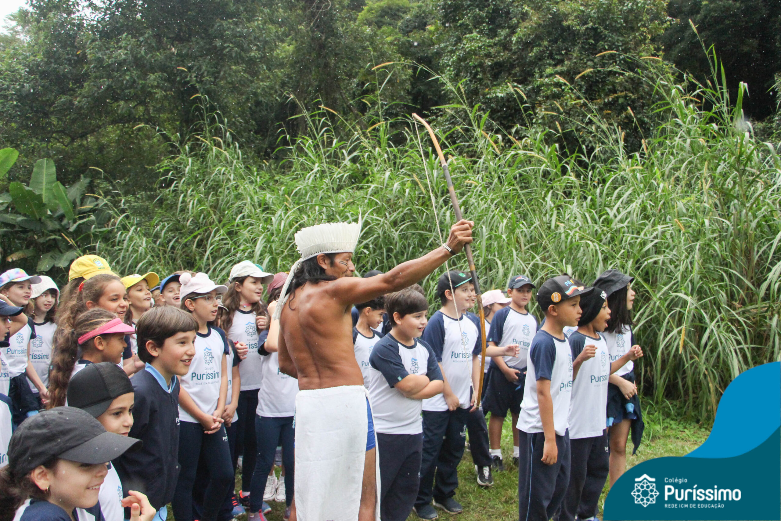 Os estudantes tiveram a oportunidade de conhecer o Sítio do Sol e passar um dia em uma verdadeira aldeia indígena.