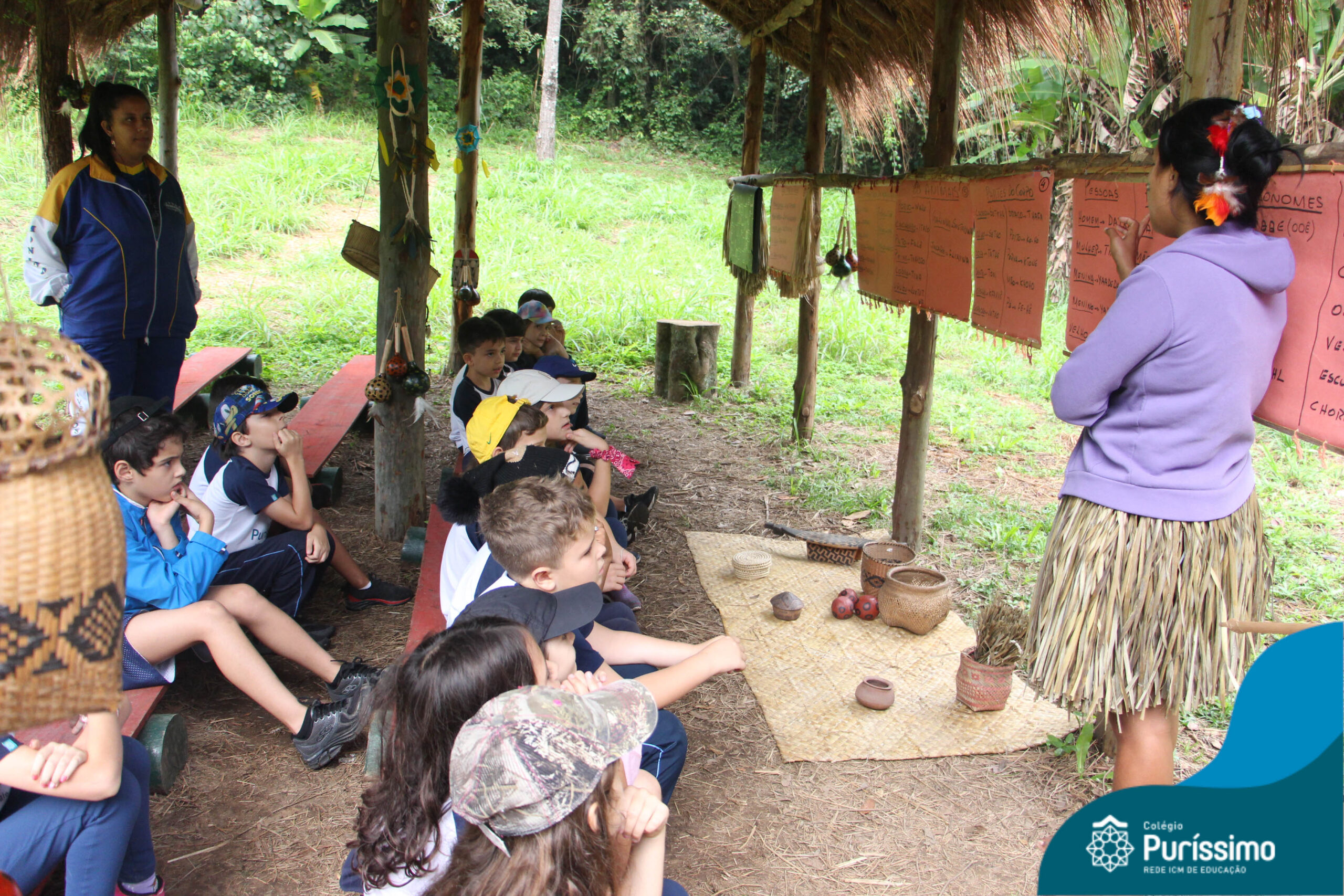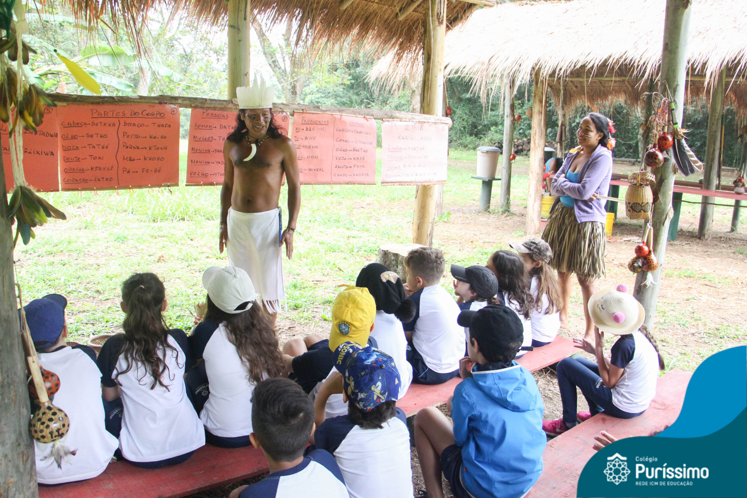 Eles aprenderam um pouco sobre a língua nativa, a alimentação e os costumes de alguns povos originários do nosso país.