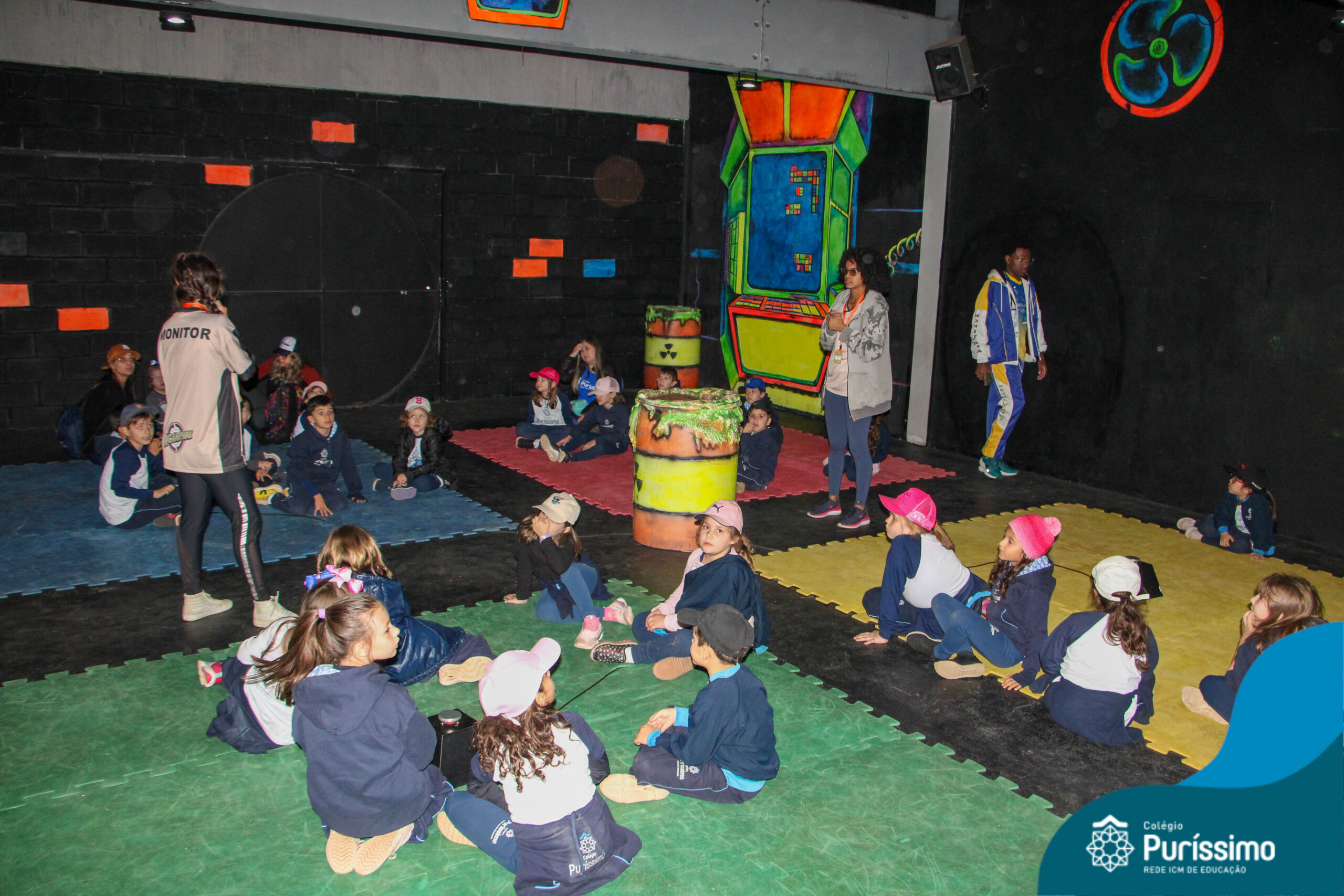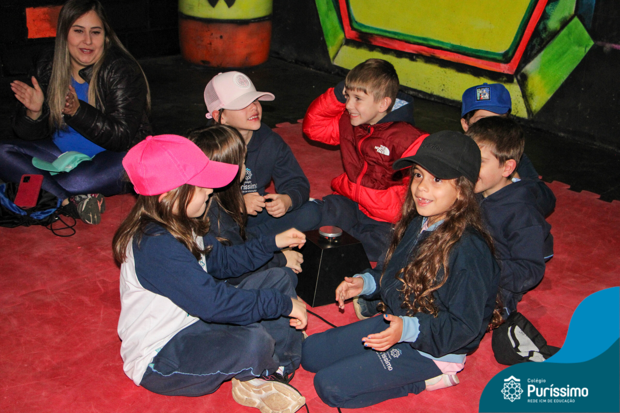 Os estudantes do 1º ano visitaram o Acampark, um local que usa suas instalações para ensinar as crianças sobre história e sustentabilidade através do entretenimento.