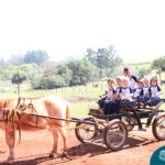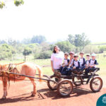 Eles tiveram a oportunidade de conhecer e aprender sobre diversos animais, além de passearem à cavalo, pônei e charrete.