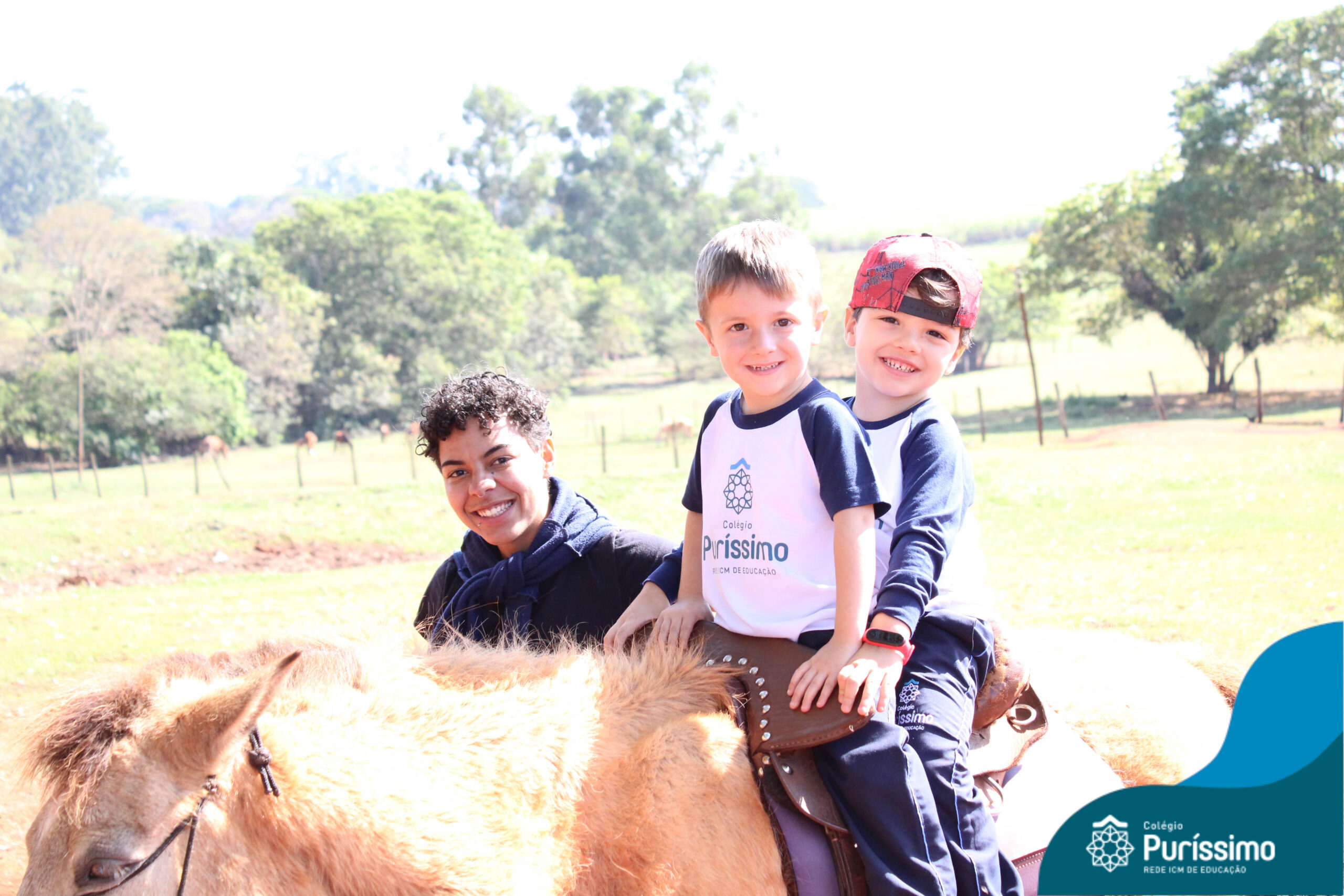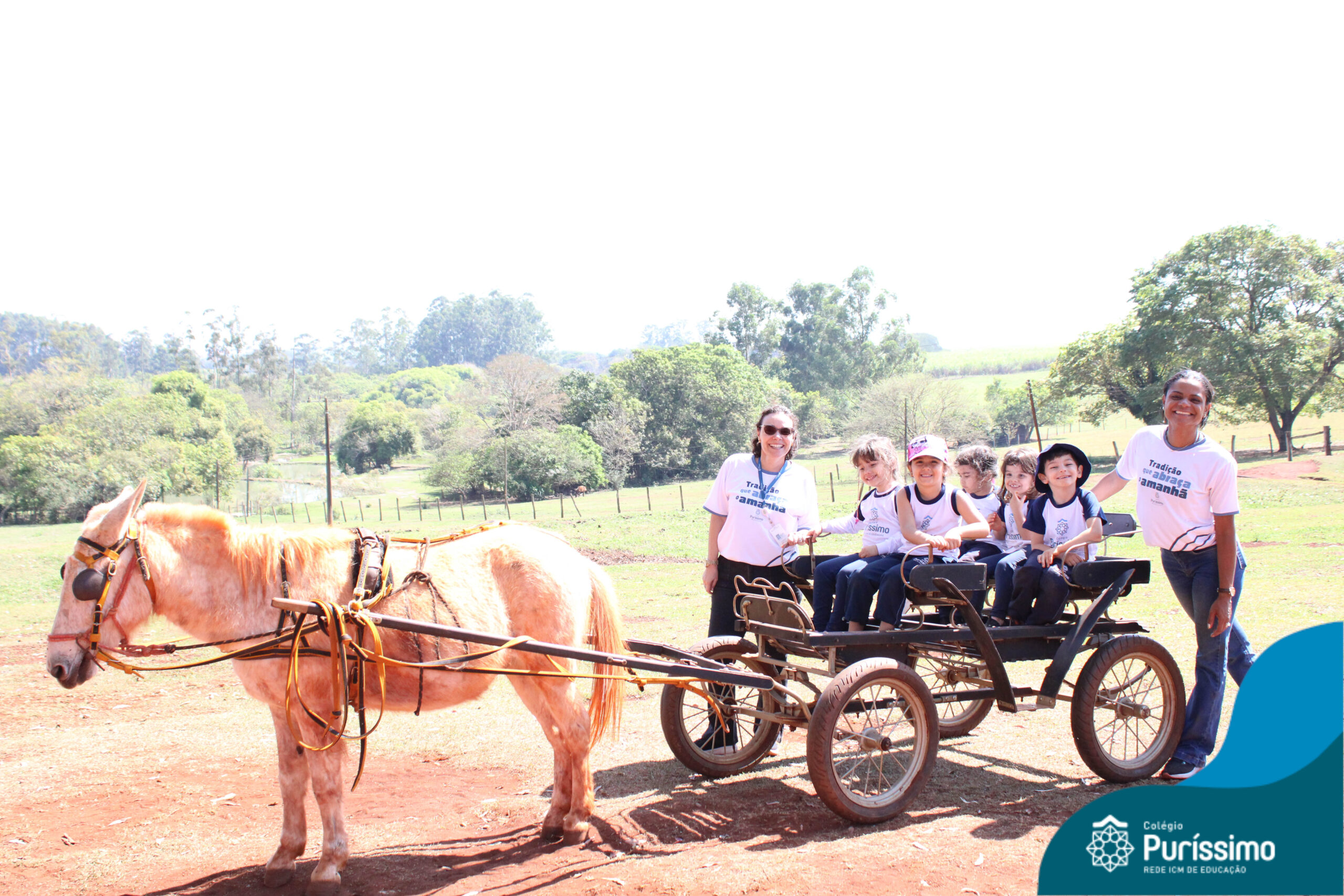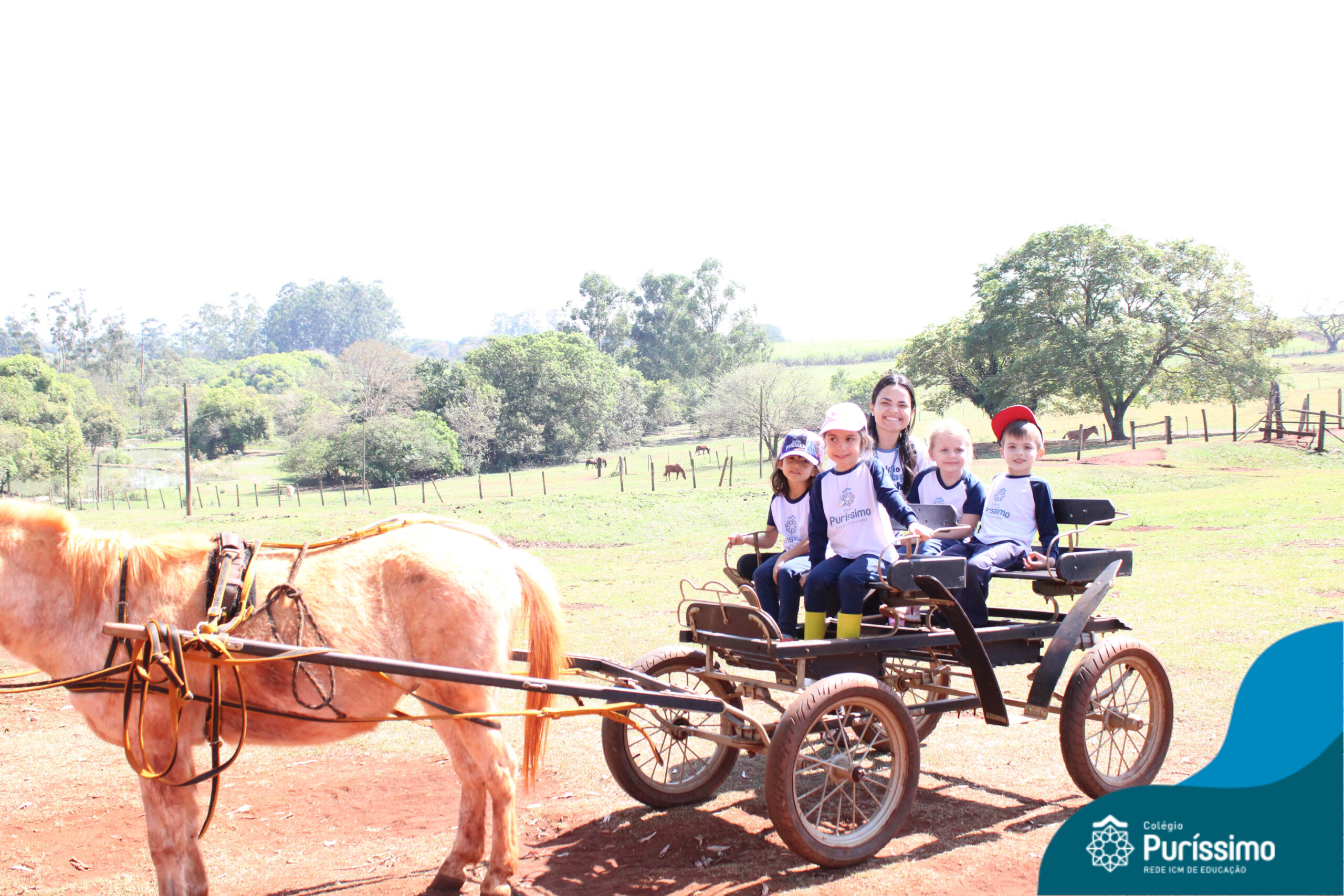 Eles tiveram a oportunidade de conhecer e aprender sobre diversos animais, além de passearem à cavalo, pônei e charrete.