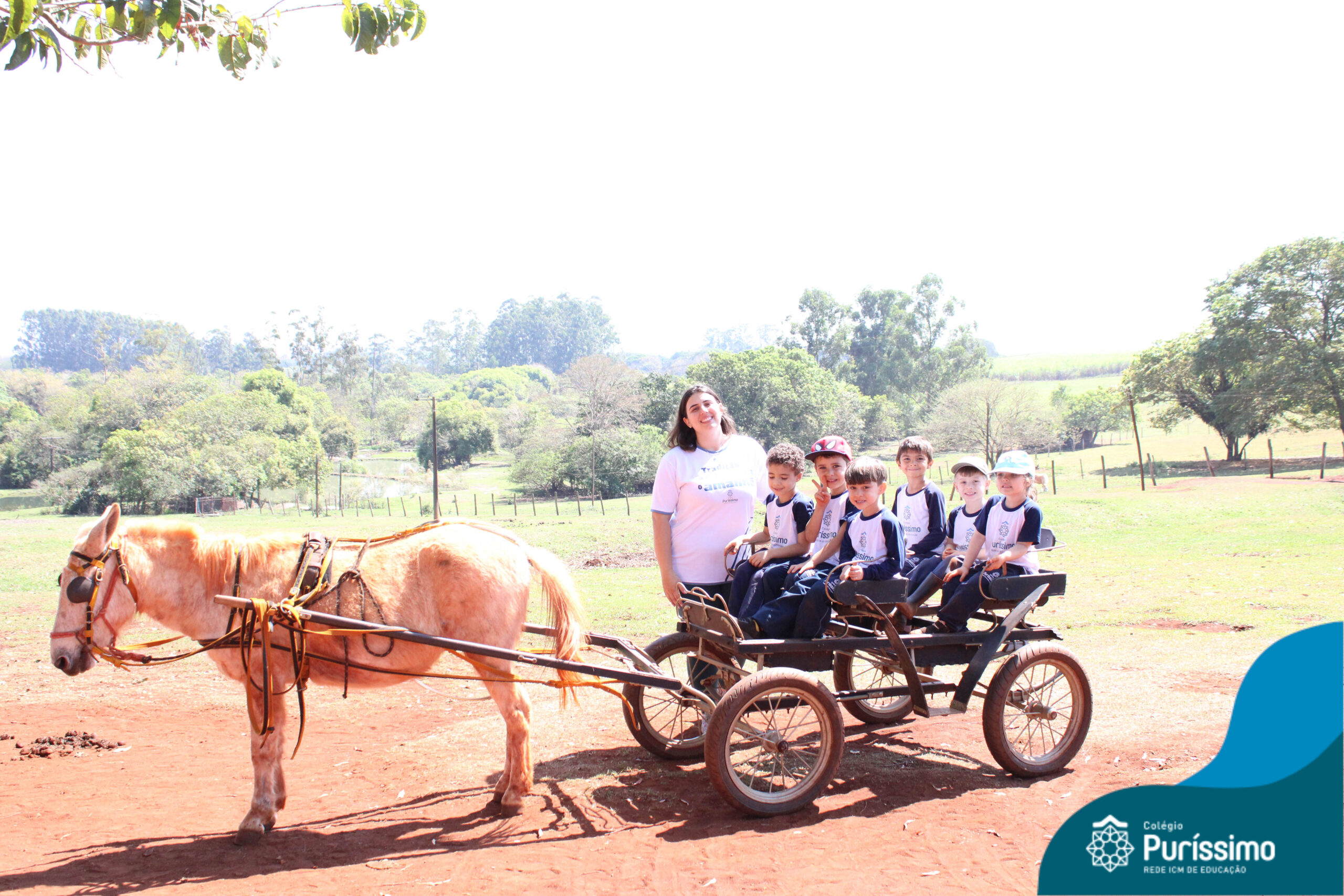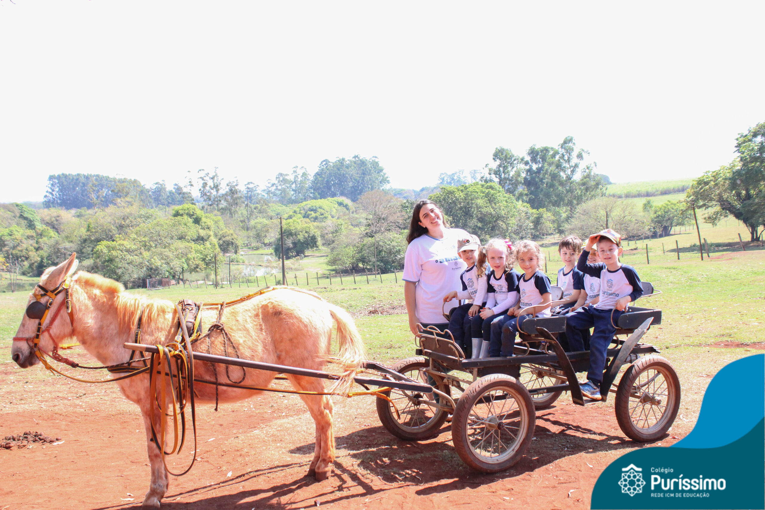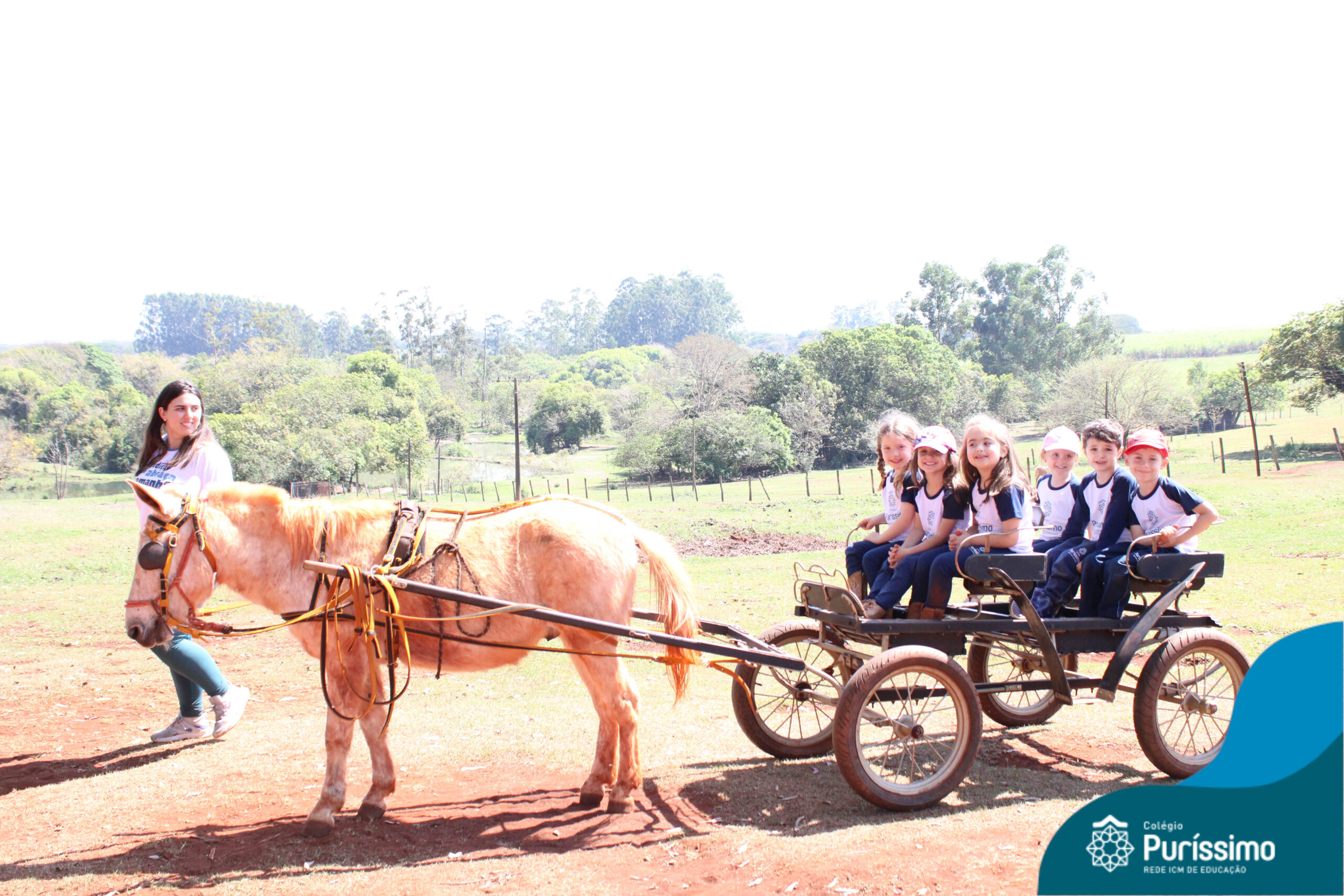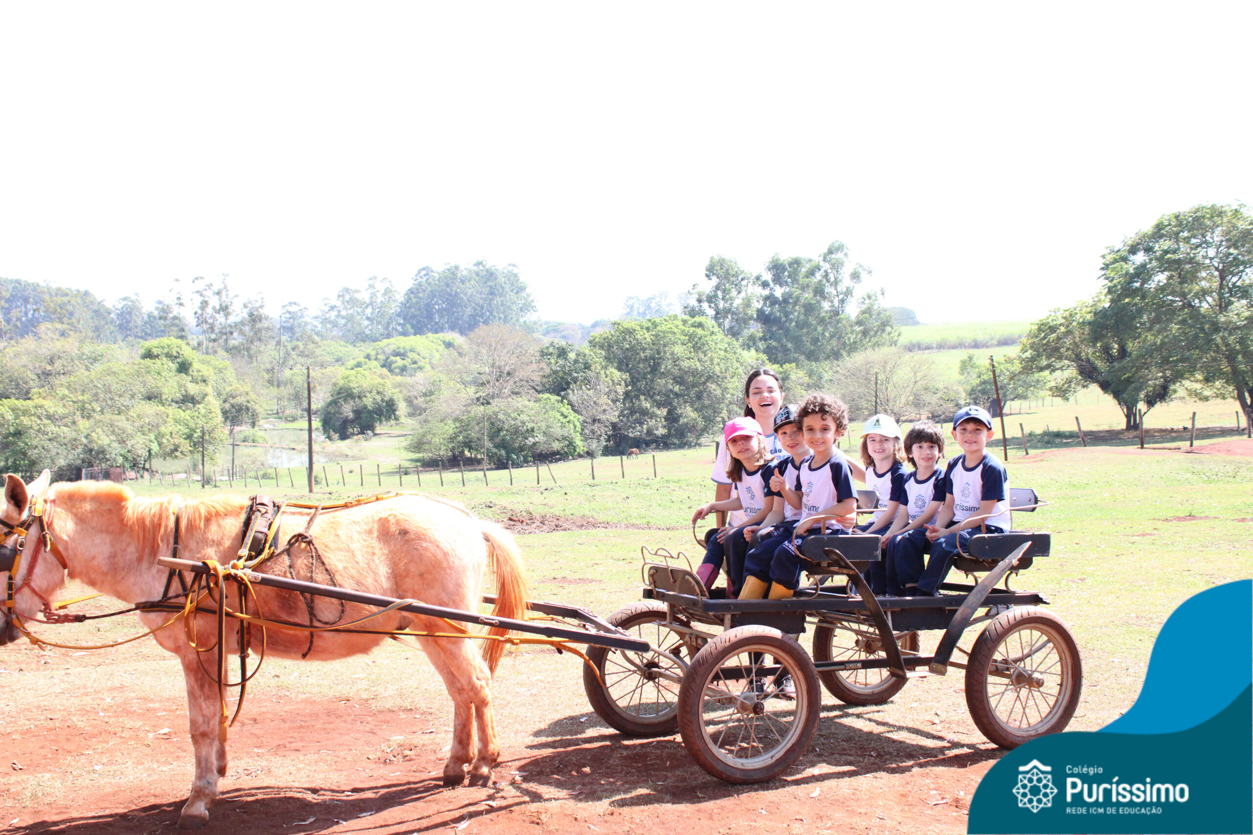 Eles tiveram a oportunidade de conhecer e aprender sobre diversos animais, além de passearem à cavalo, pônei e charrete.