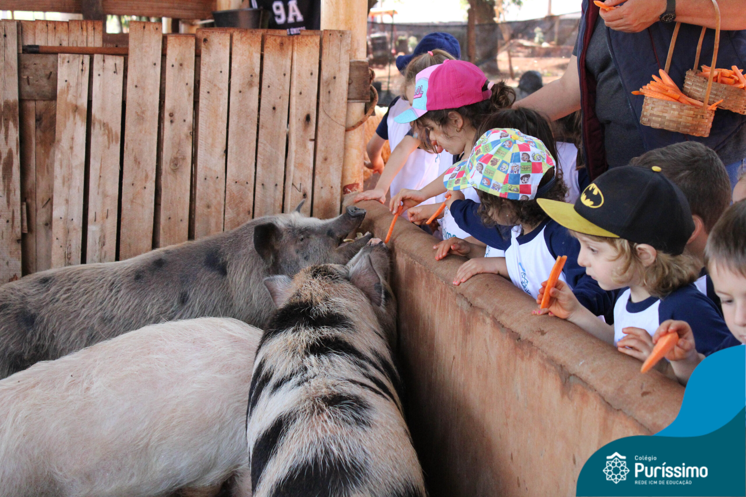 Os alunos do Maternal 1, 2 e Pré 1 passaram uma manhã super divertida na Fazenda Três Porquinhas!