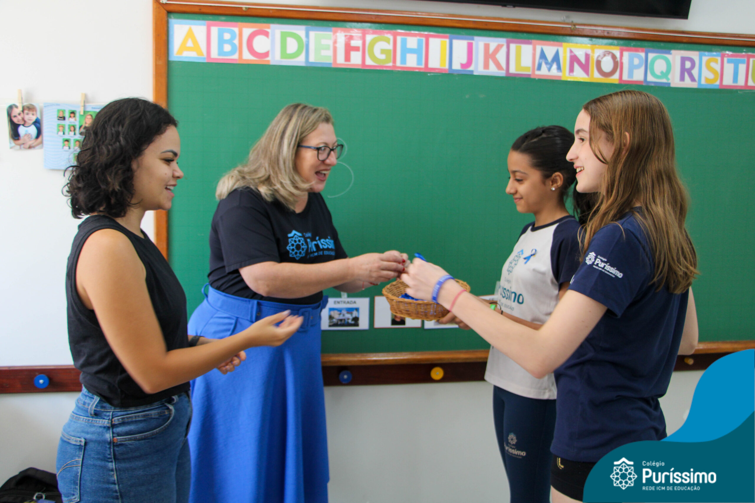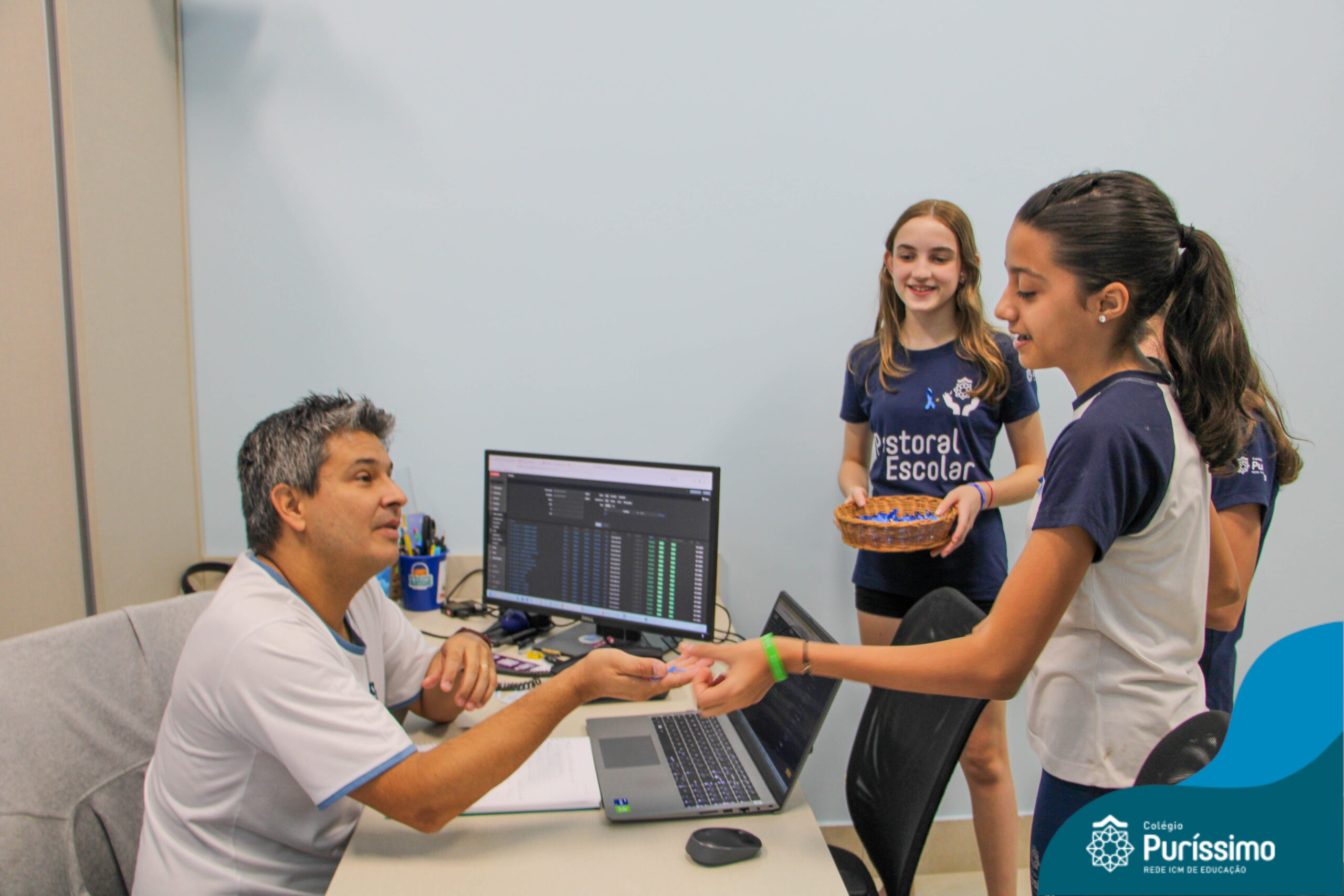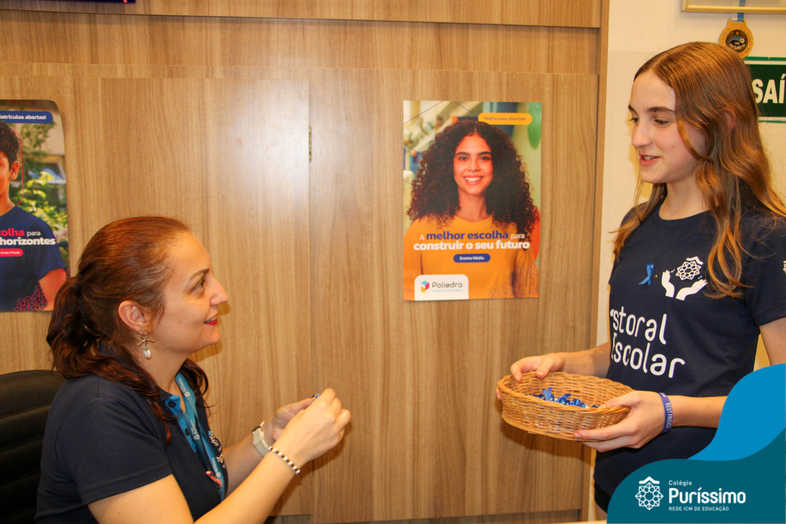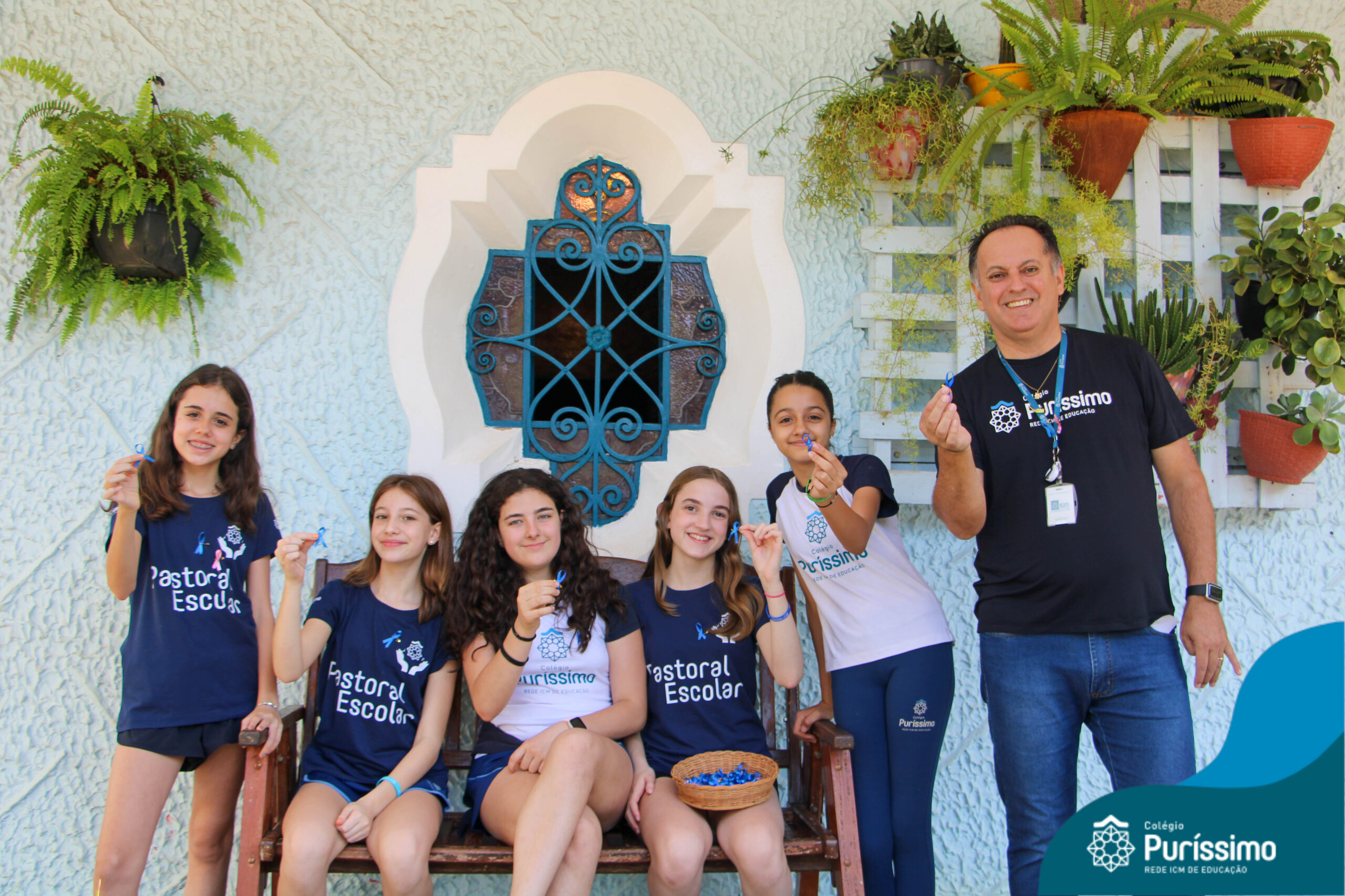 Para promover a conscientização sobre a saúde masculina, a Pastoral Escolar entregou aos professores e colaboradores um laço azul juntamente com uma mensagem para que todos propagem a importância dos exames regulares em prevenção ao câncer de próstata.