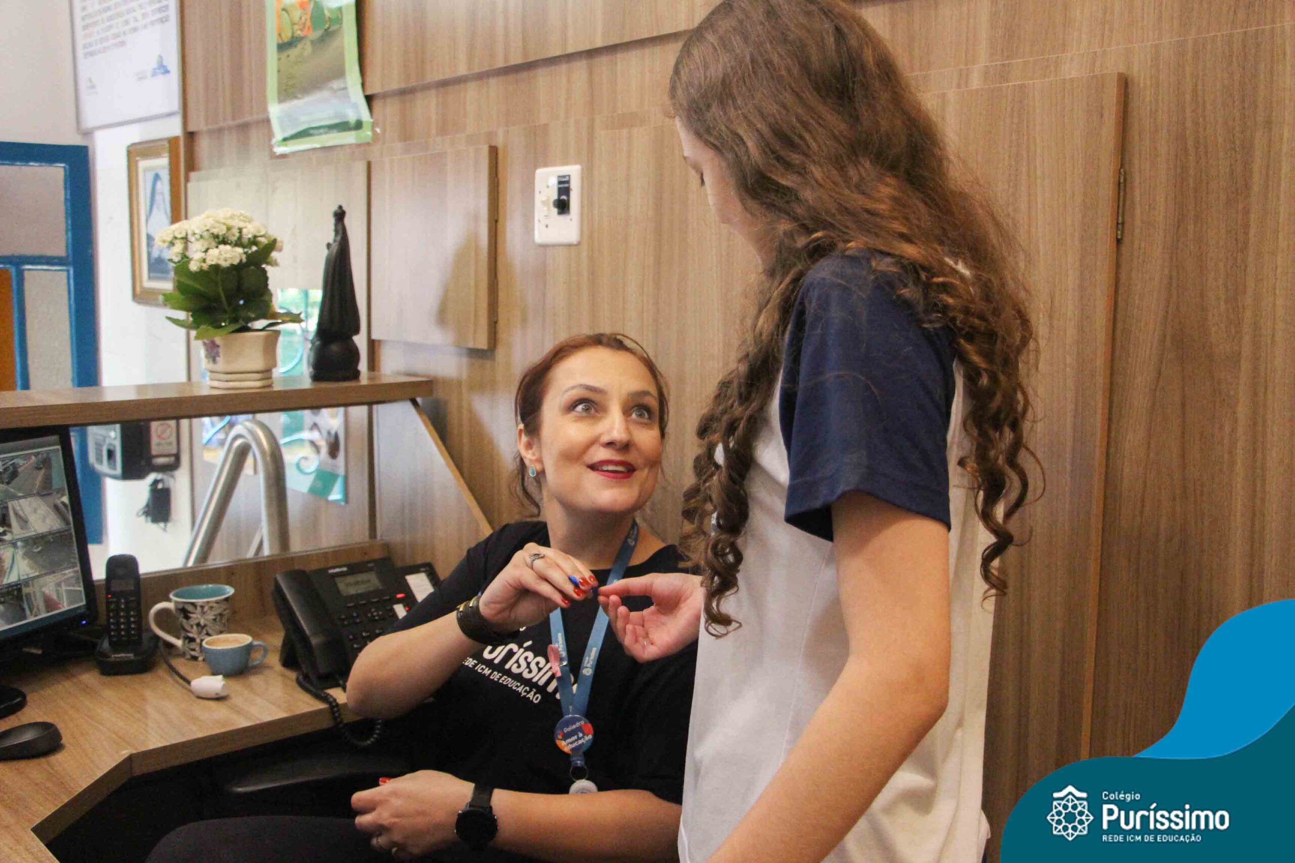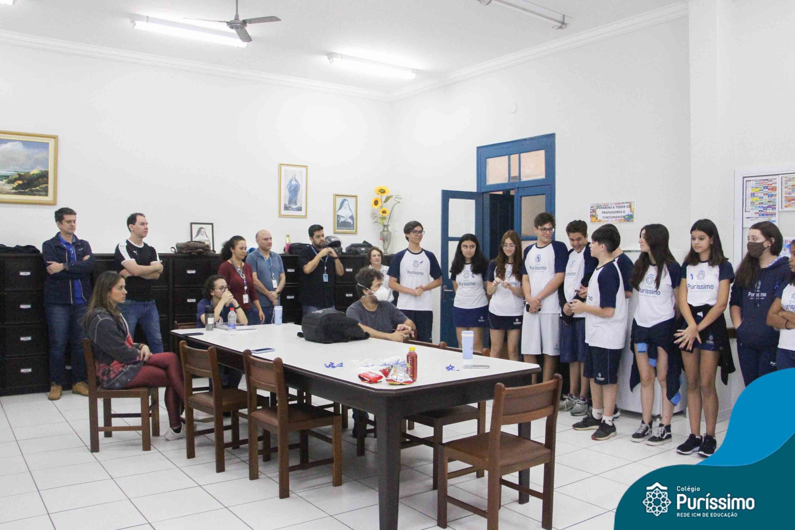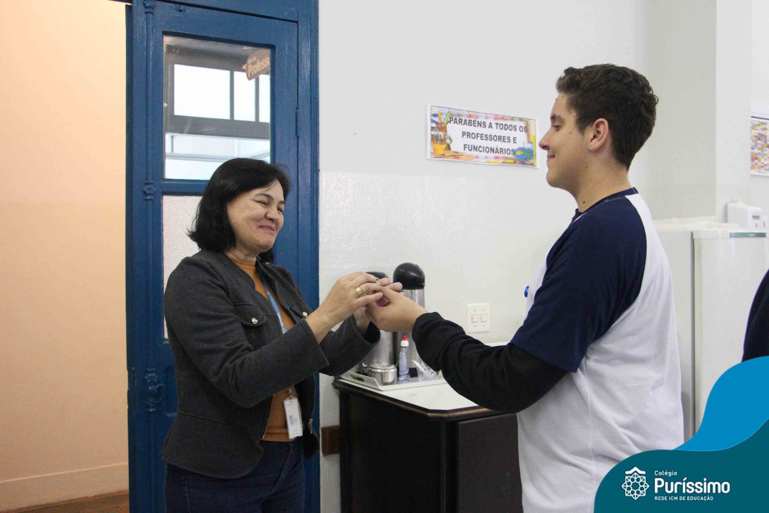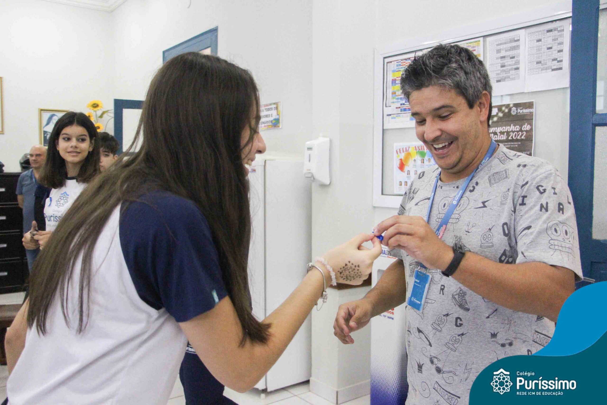 Para iniciar esse mês de novembro, os alunos da Pastoral Escolar entregaram uma fita azul para todos os professores e funcionários do Puri buscando conscientizá-los sobre a importância do diagnóstico prévio e da prevenção do Câncer de Próstata.