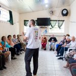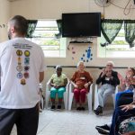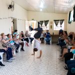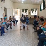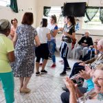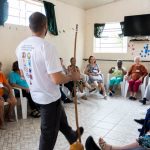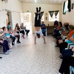 Inicialmente, os idosos ouviram um pouco da história da capoeira e da sua importância. Na sequência, tivemos uma atividade, onde os idosos participaram com palmas, danças e música, aliás a música sempre remonta à memória afetiva desses nossos queridos e simpáticos membros do CCI.