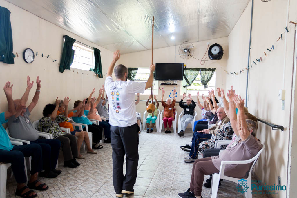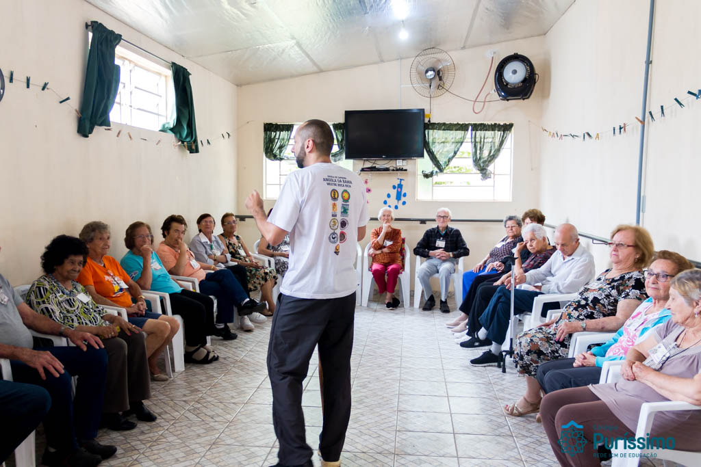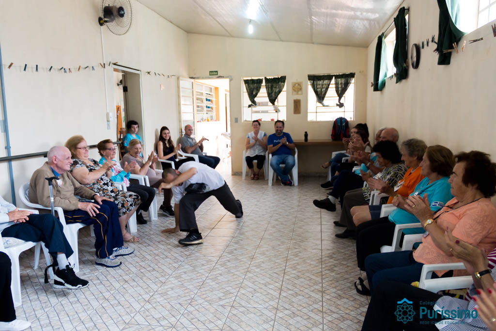 A Pastoral Escolar, visitou esta tarde, dia 23/11, o Centro de Convivência do Idoso Mãe da Saúde, para realizar a última atividade em 2017, junto aos assistidos pela instituição. Para que o encontro ocorresse dentro de um clima de descontração e alegria, tivemos a presença do Professor Thércio Fábio Pontes Sabino, que comandou a atividade.