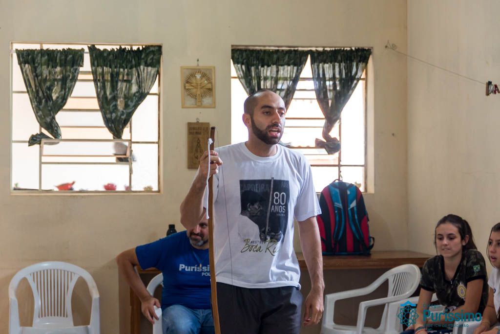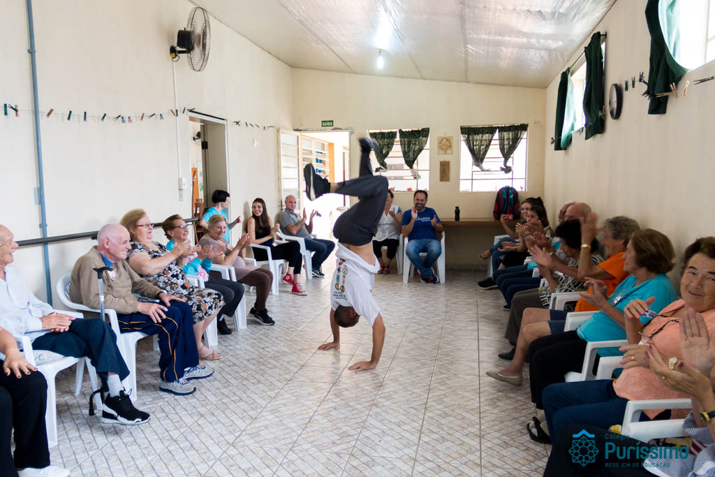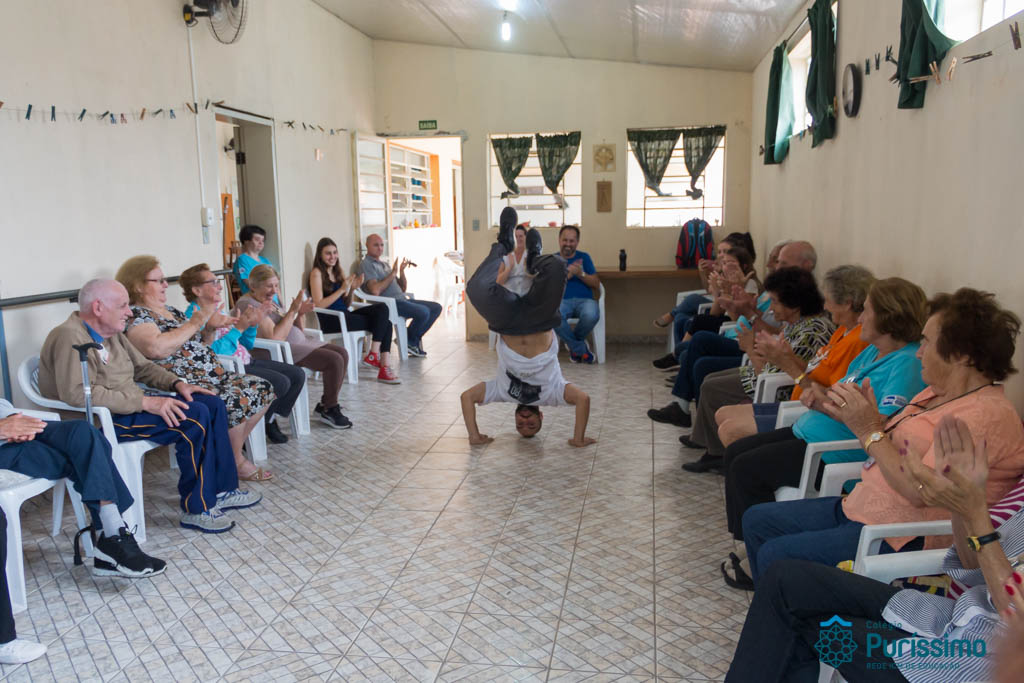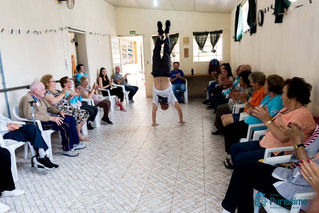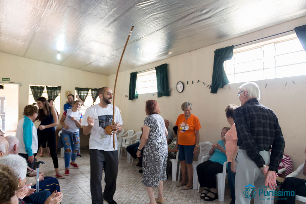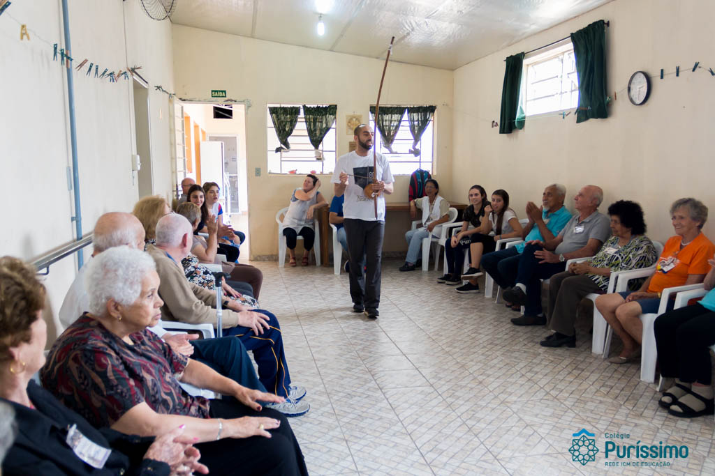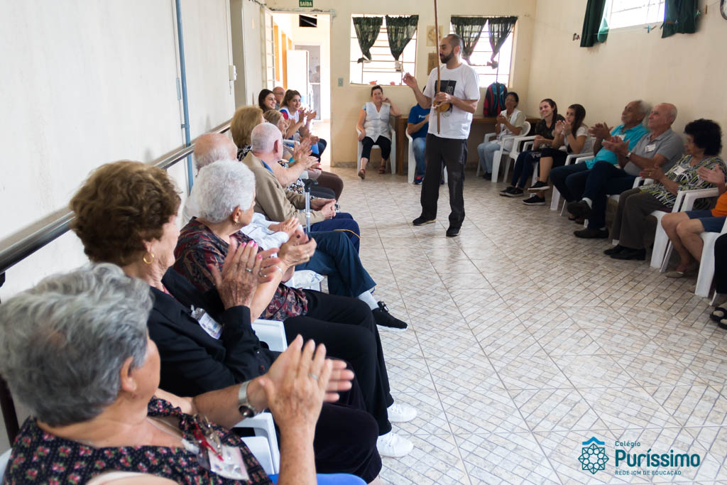 Inicialmente, os idosos ouviram um pouco da história da capoeira e da sua importância. Na sequência, tivemos uma atividade, onde os idosos participaram com palmas, danças e música, aliás a música sempre remonta à memória afetiva desses nossos queridos e simpáticos membros do CCI.