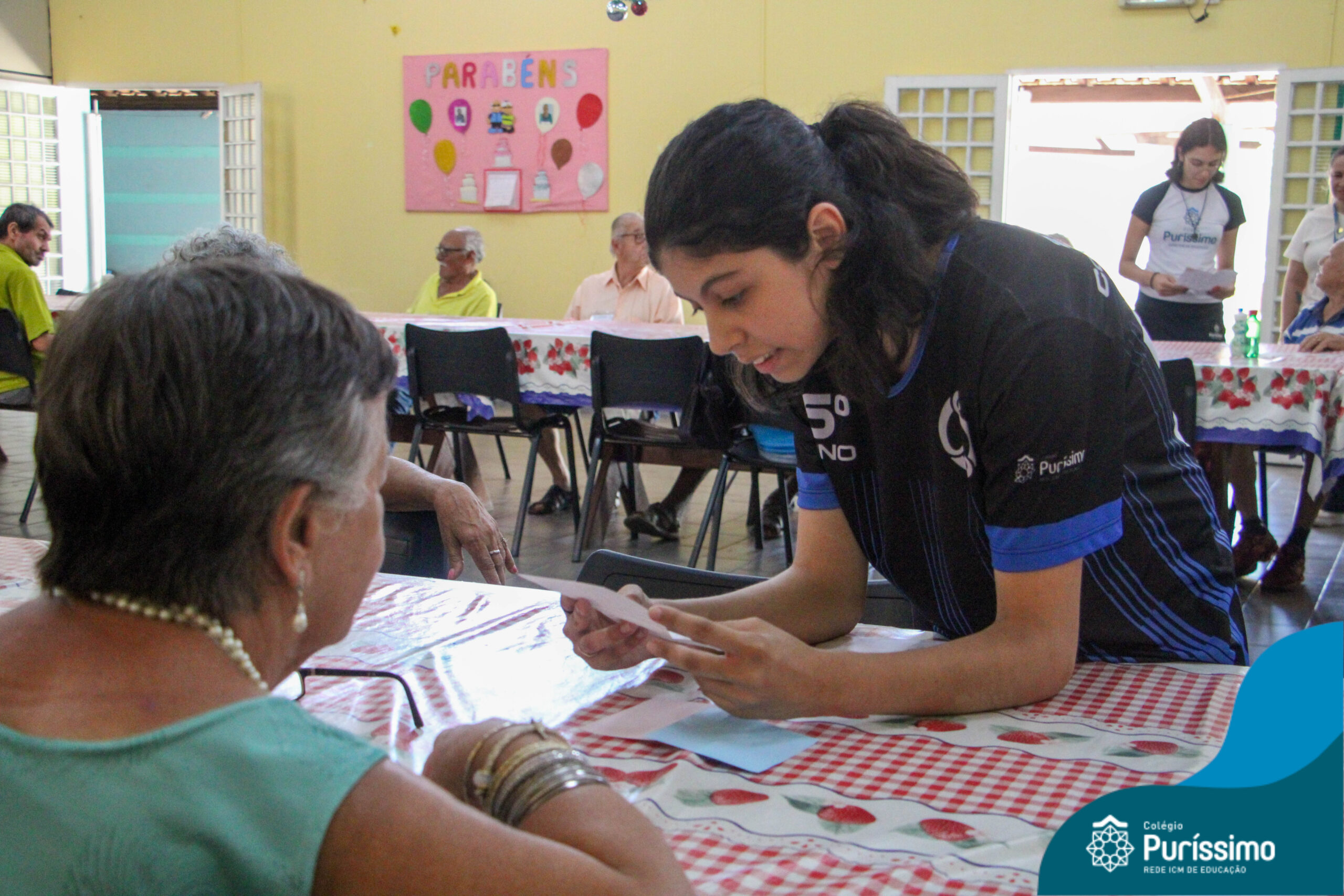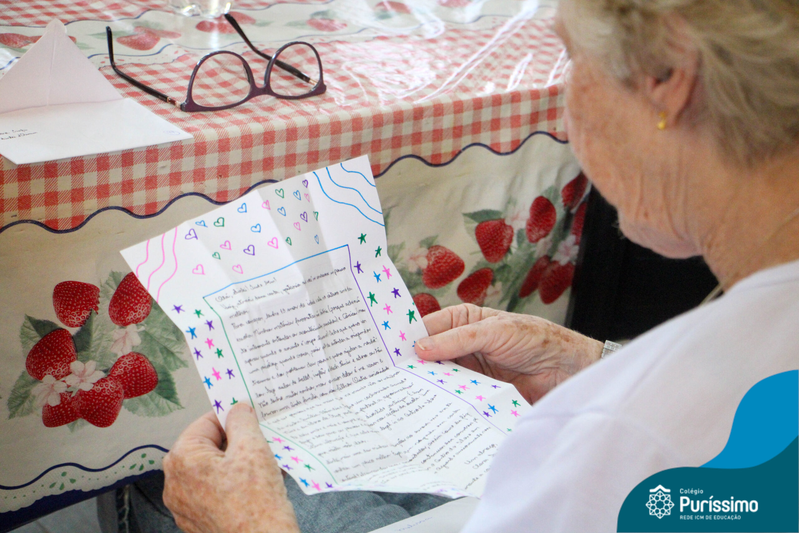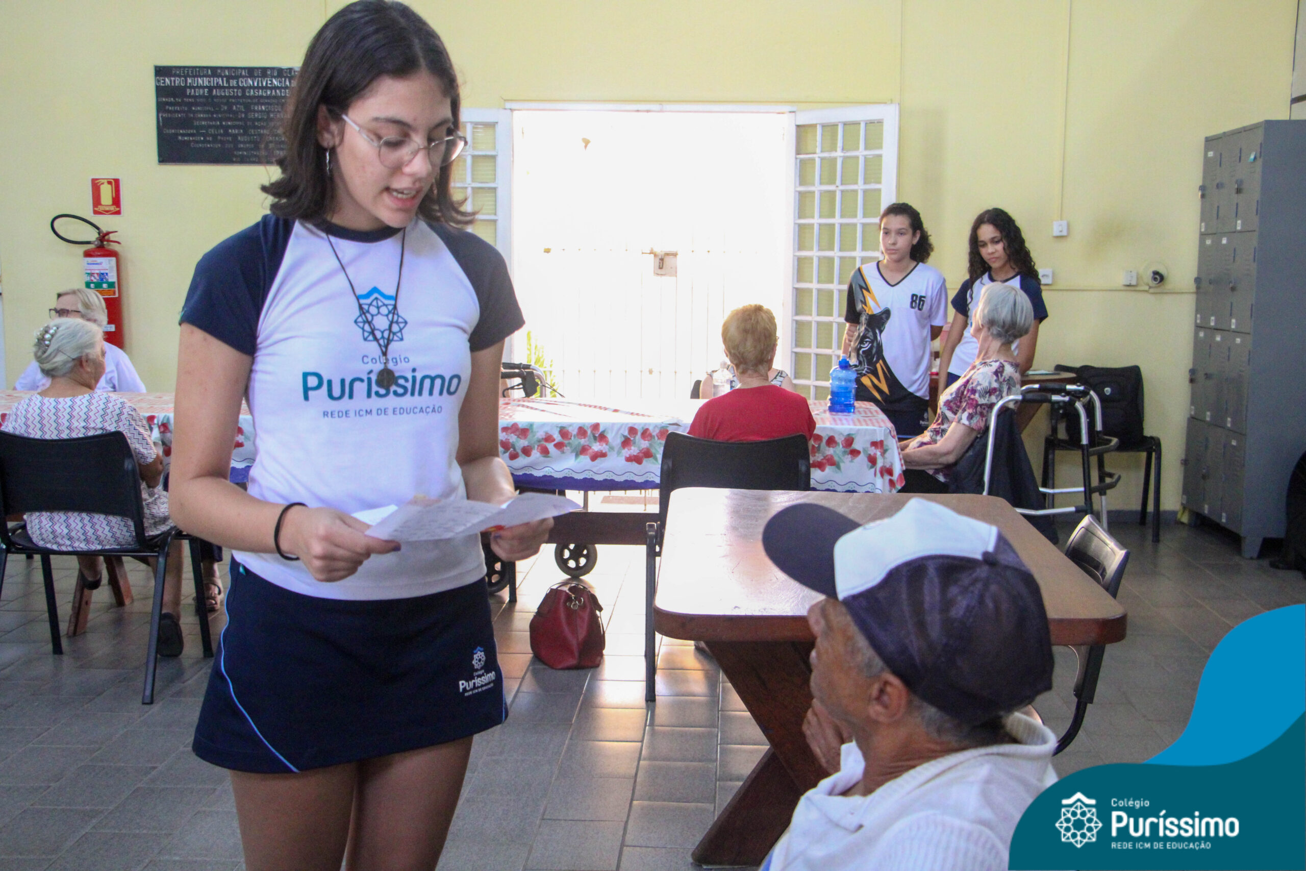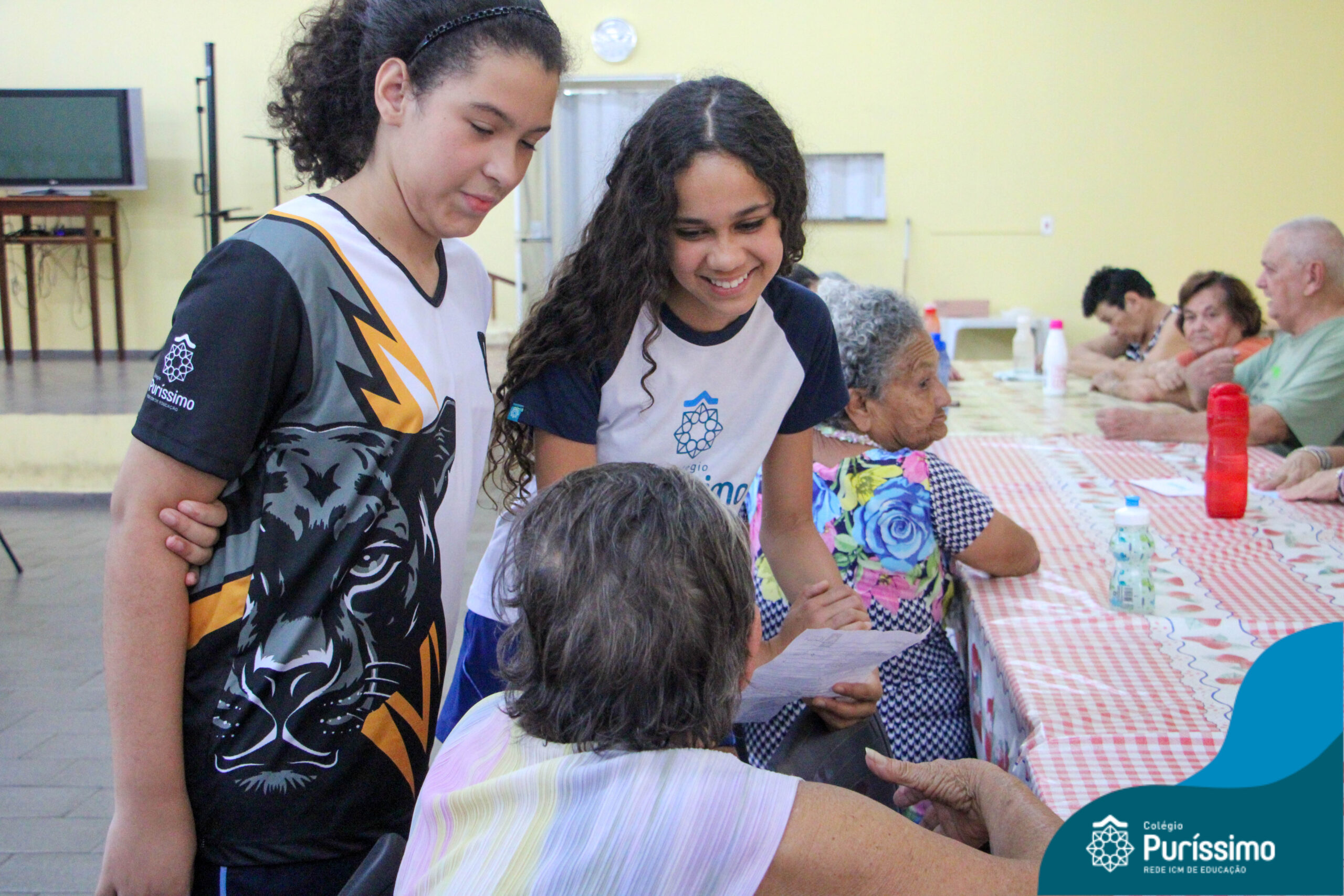 Os alunos Puri foram novamente recebidos alegremente pelos idosos assistidos pelo Centro de Convivência do Idoso Pe. Augusto Casagrande e, dessa vez, levaram um presente em sua visita, cartas escritas pelos estudantes da Pastoral Escolar.