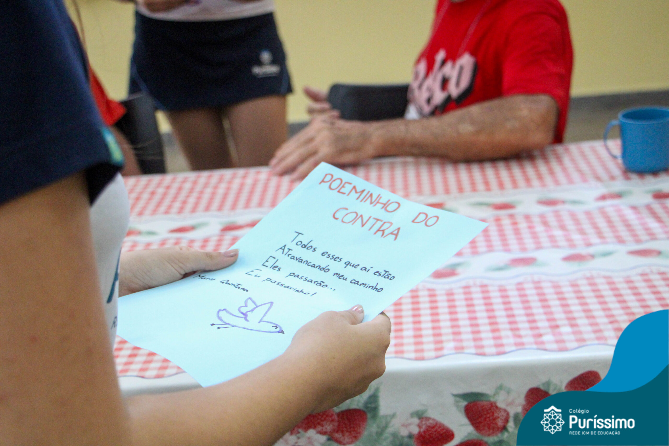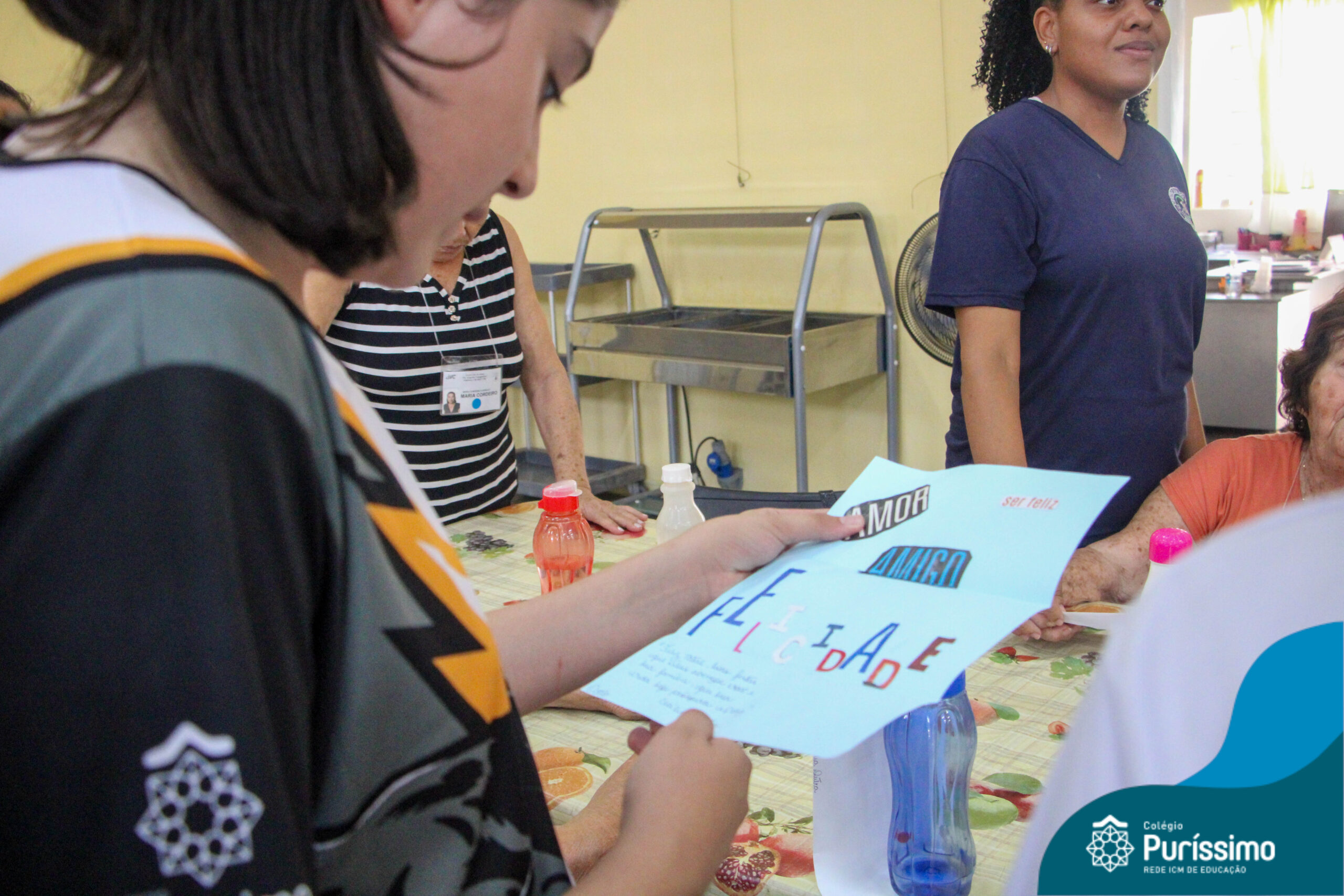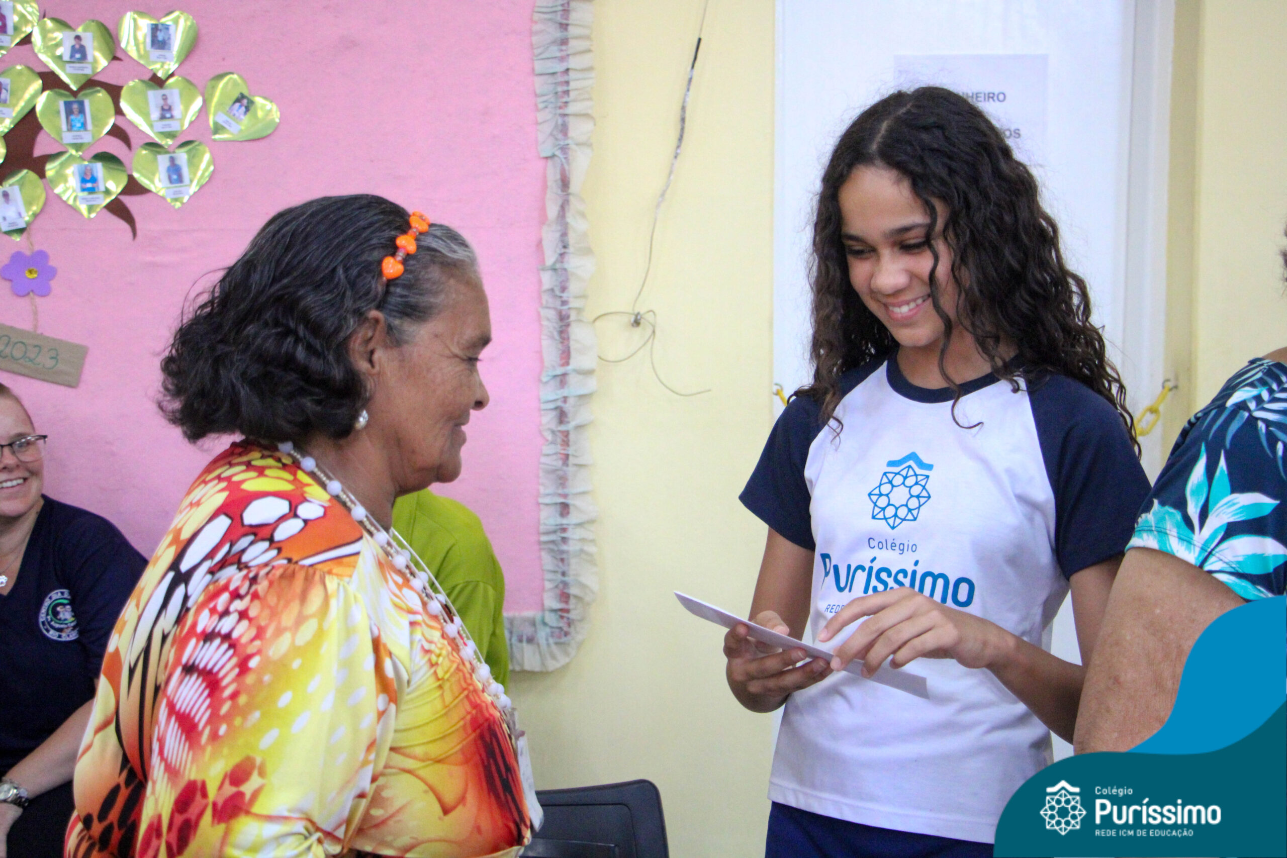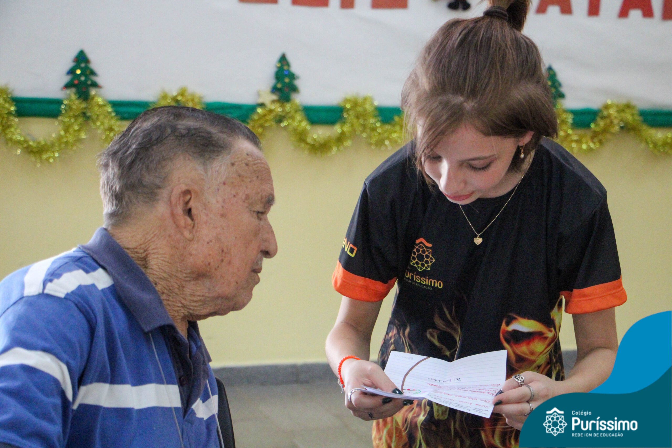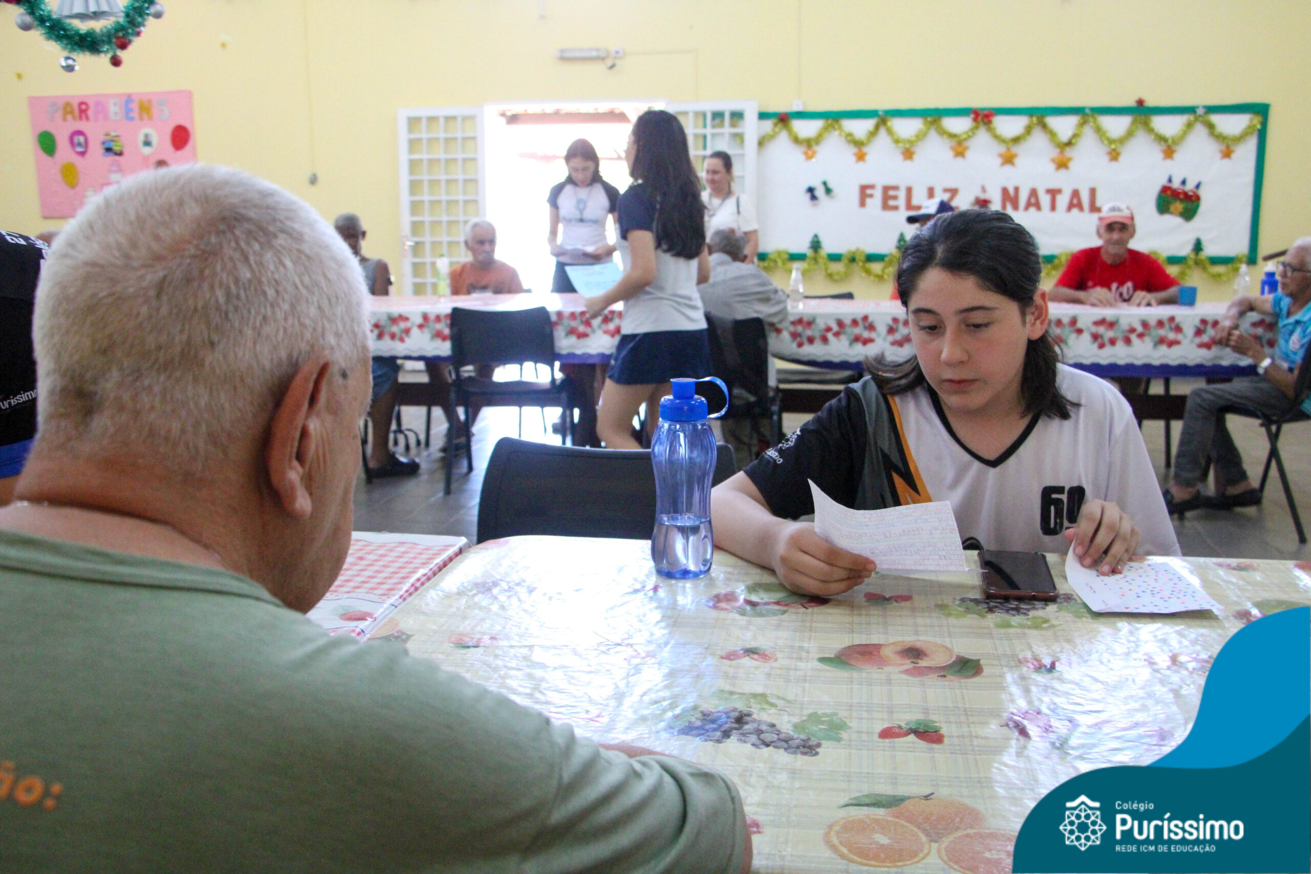 Além do presente, os estudantes que participam do Clube do Livro do Puri realizaram a leitura de poemas e trechos de livros para os idosos. E por fim, os alunos receberam uma pequena carta escrita pelas pessoas da instituição aos visitantes.