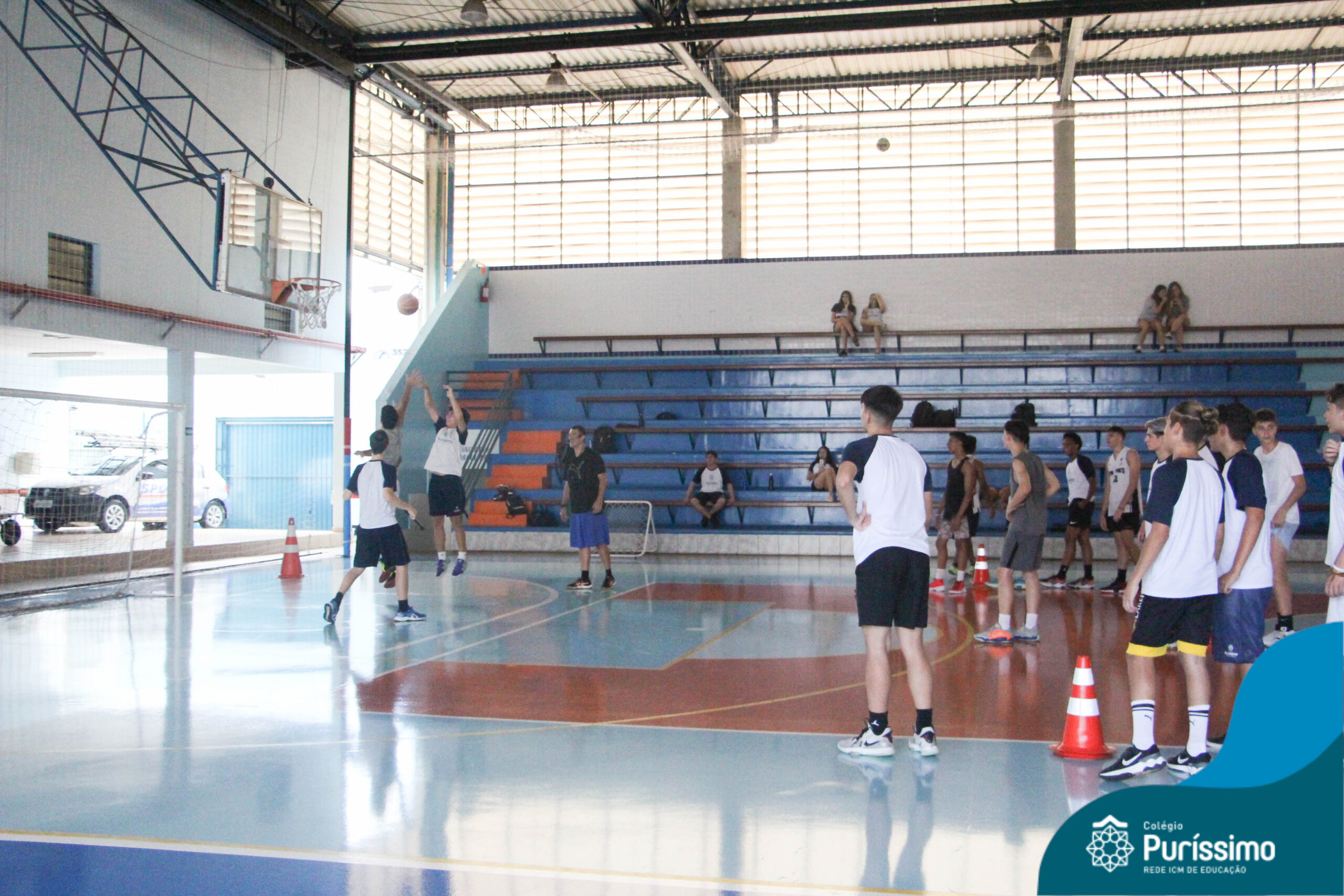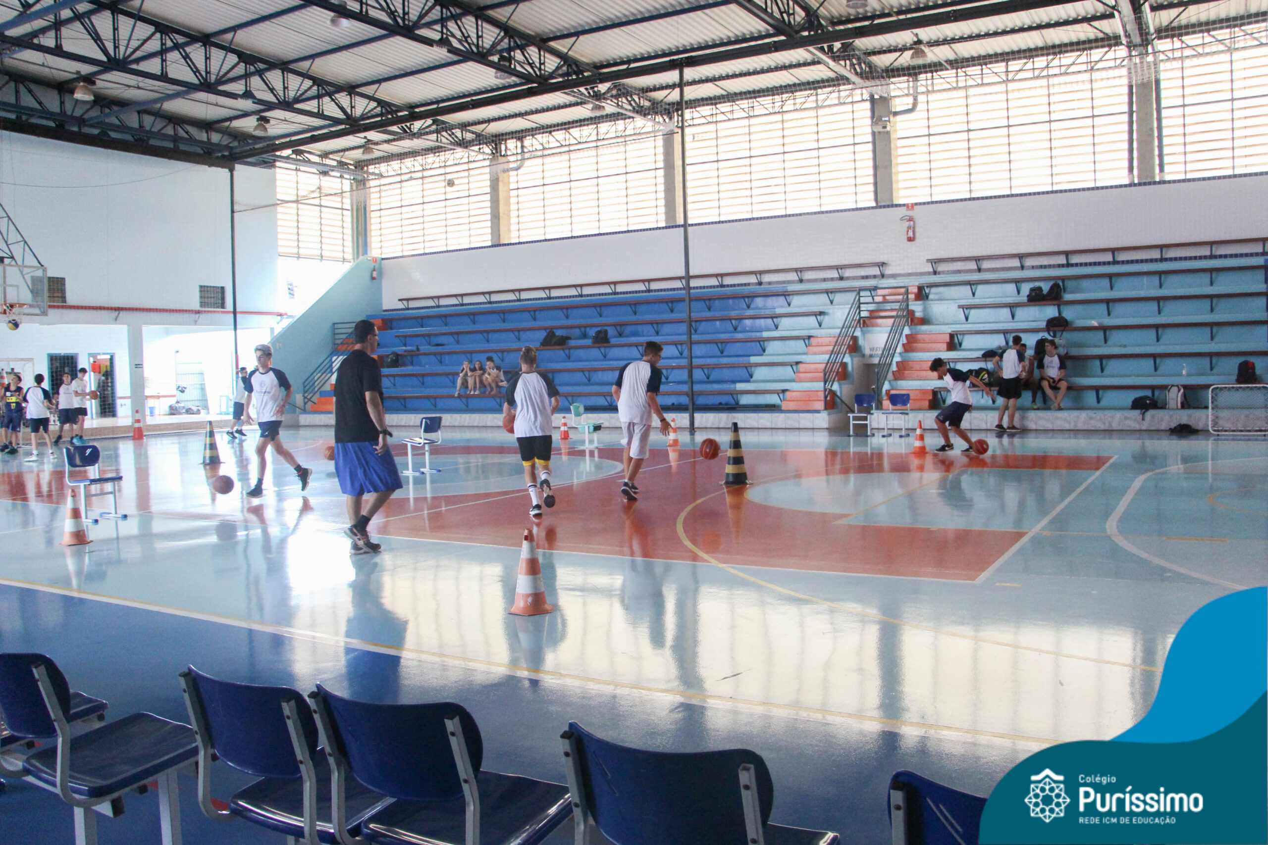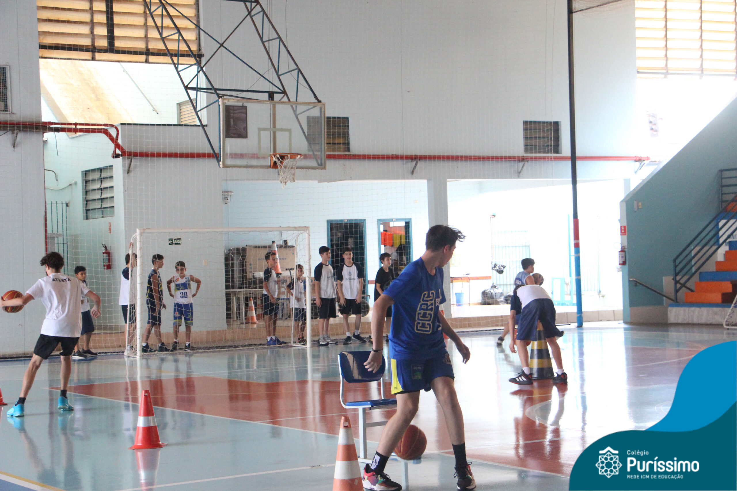 Os estudantes participaram hoje da PENEIRA DE BASQUETE para ingressar nos times Sub – 14 e Sub – 17 do Colégio!