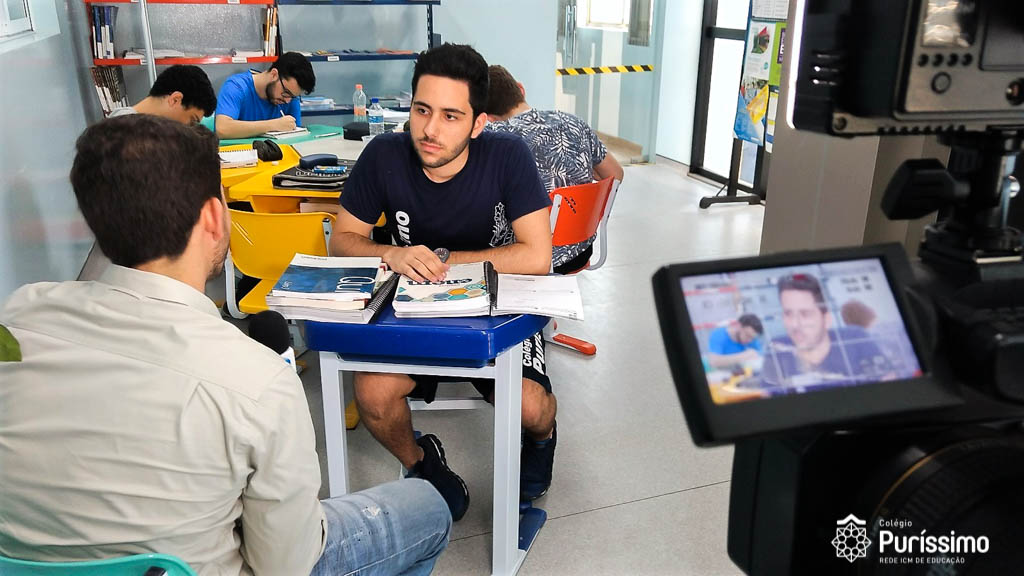 Além do Aulão do ENEM, o aluno do 3º ano do Ensino Médio, Erico Pazetto de Lima Junior, foi entrevistado pela TV Claret para uma reportagem especial sobre a preparação para os vestibulares. Érico está prestando o vestibular do ITA, um dos mais concorridos do país.