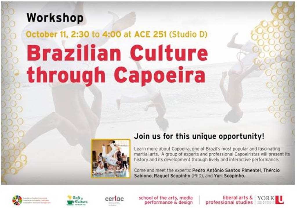 O professor explica que a capoeira está presente no mundo todo, inclusive em Toronto, com grupos grandes de capoeiristas. “Há um grupo específico que chama Axé Capoeira, é um dos maiores grupos do mundo e sua sede fica em Toronto”, comenta Thércio, que também irá como convidado em um evento do grupo. Apesar disso, ele acredita que o convite foi feito porque eles queriam uma pessoa que ministrasse as aulas em português. “Eles queriam alguém para dar aula em português, tanto na University of York, quanto na Universidade de Toronto, eles querem entender a cultura brasileira, mas também cantar em português, entender como funciona a capoeira, etc.”.