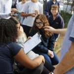Na citada etapa, os alunos acompanhados do Prof. de Ciências -Vagner T. P. de Oliveira e da coordenação coletaram informações das espécies utilizando um aplicativo de identificação de plantas (PL@net).