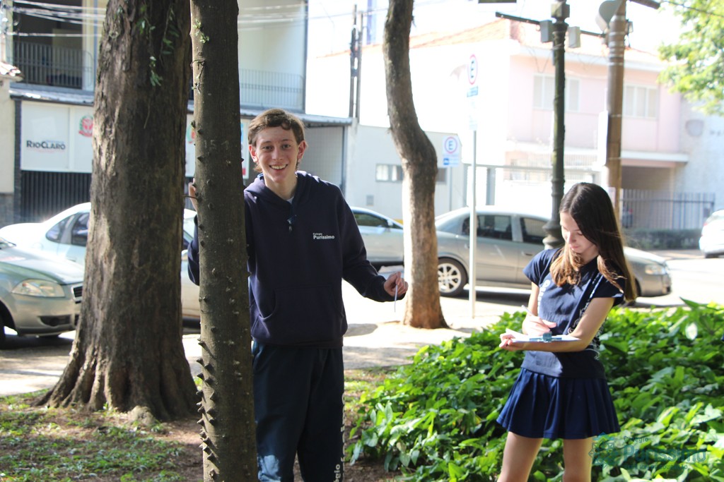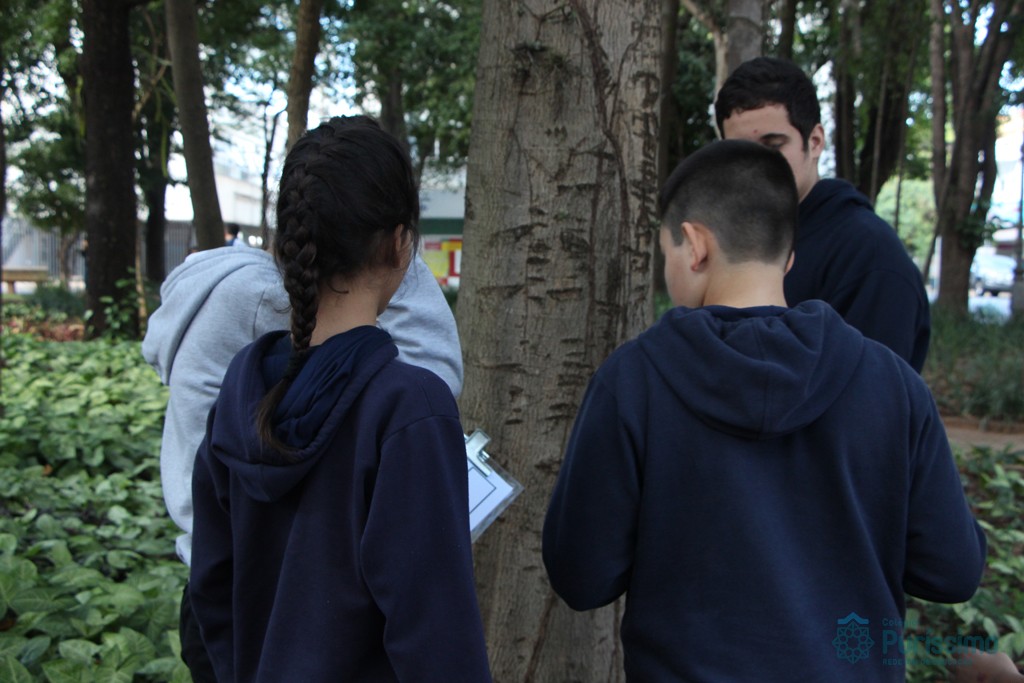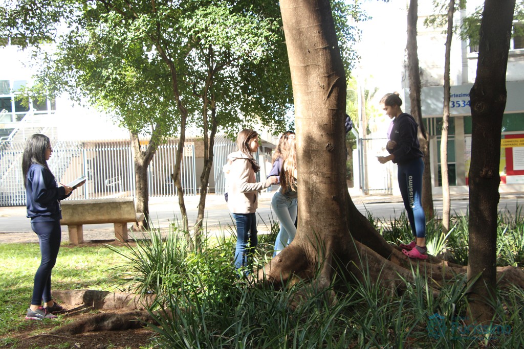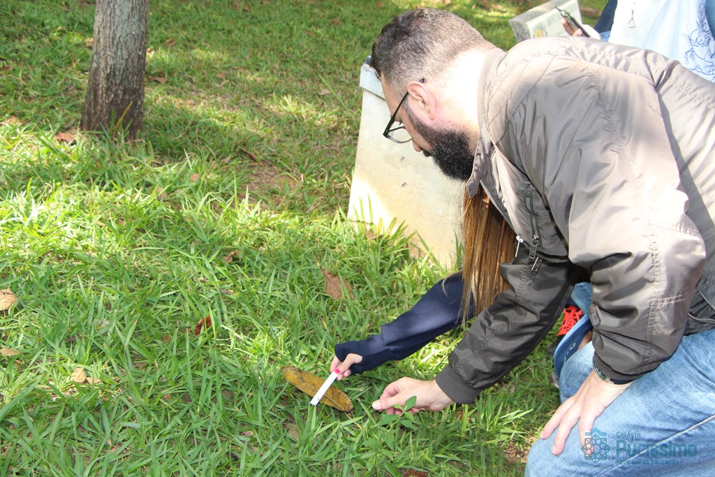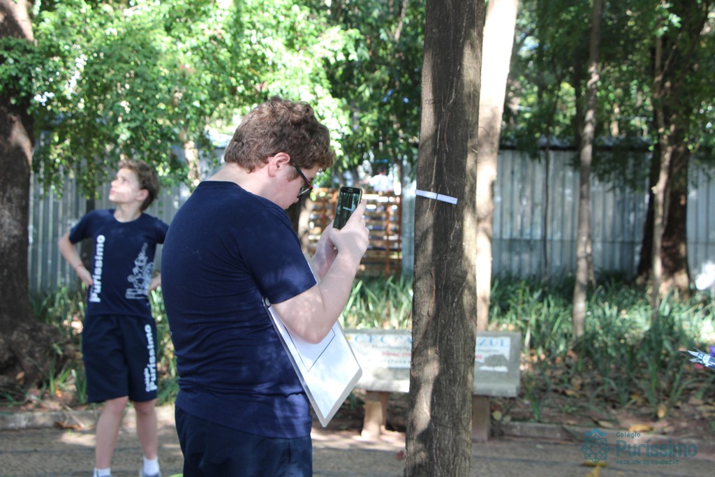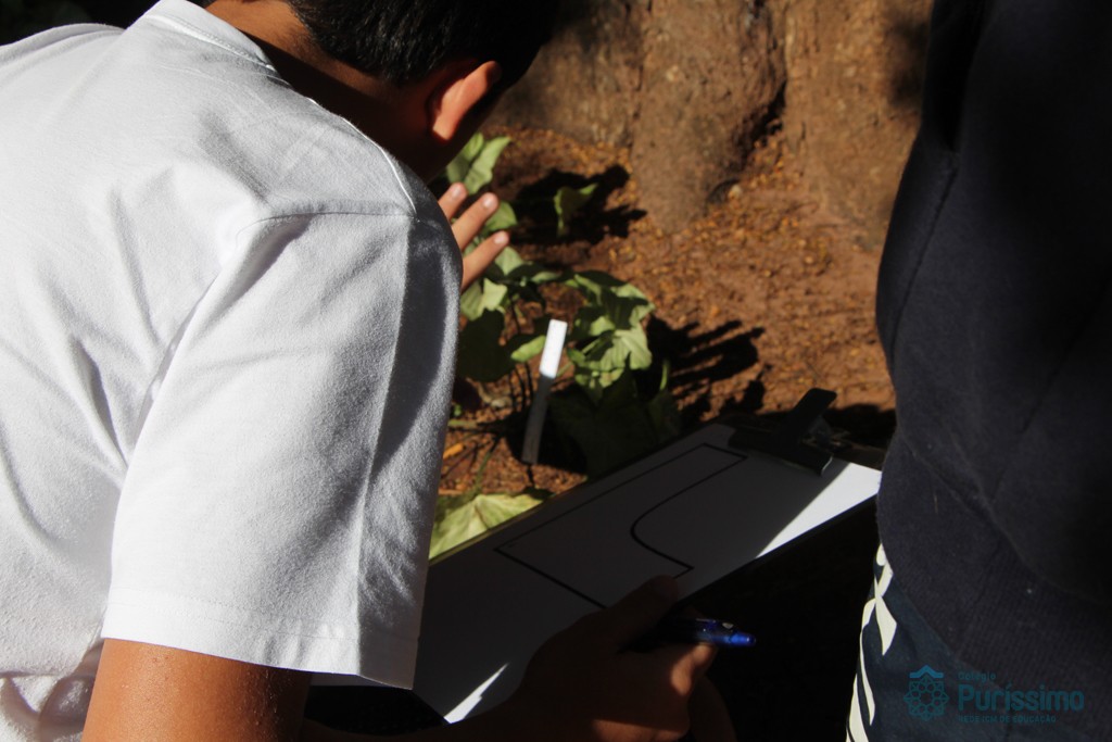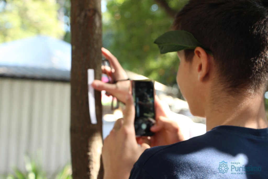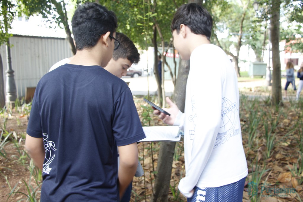 Na citada etapa, os alunos acompanhados do Prof. de Ciências -Vagner T. P. de Oliveira e da coordenação coletaram informações das espécies utilizando um aplicativo de identificação de plantas (PL@net).